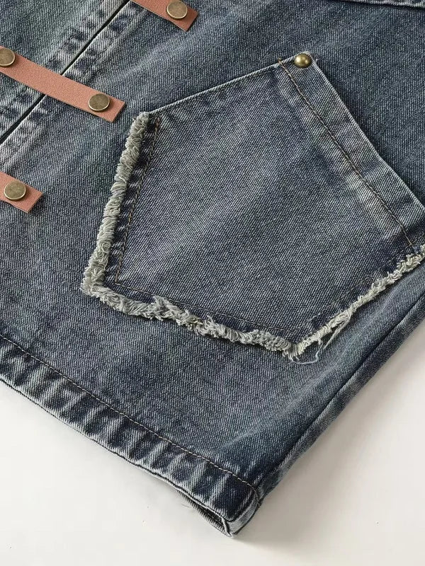 Casual Fashion Denim Slim Turndown Collar Ripped Stripe Jacket for Men