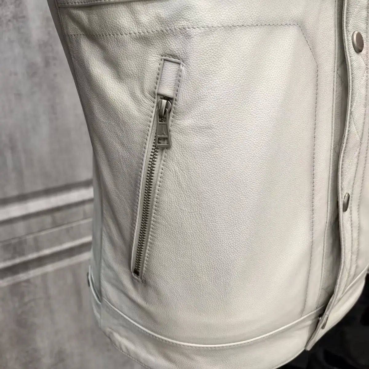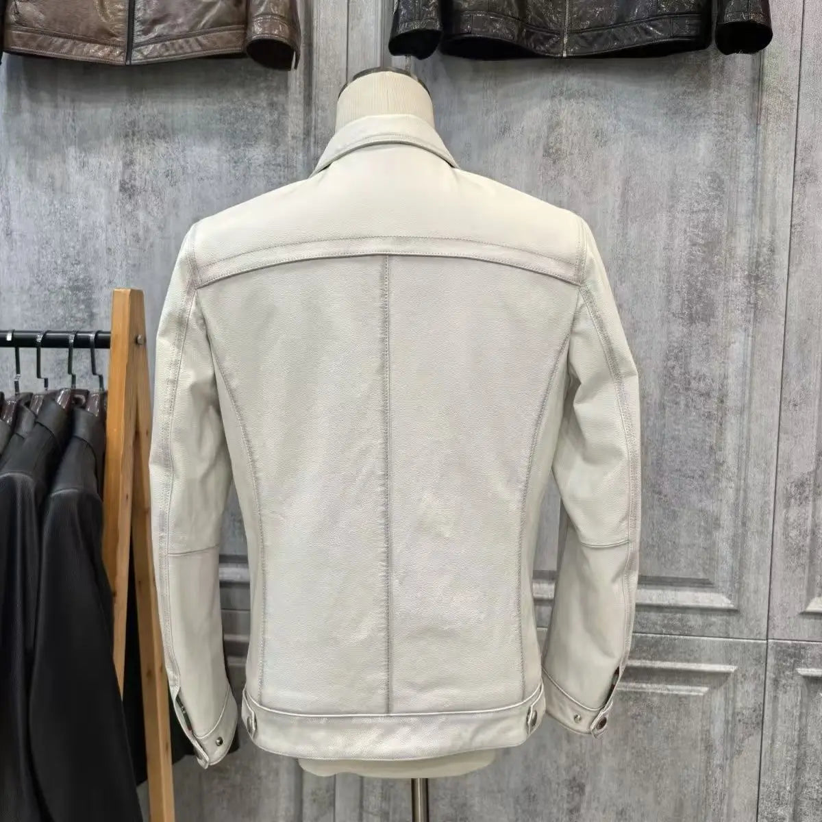 Genuine Leather Turndown Collar Chest Pocket Metal Button Jacket for Men