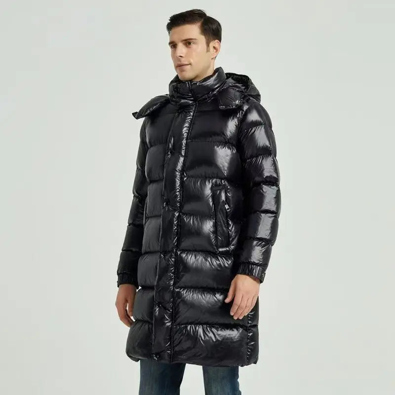 Men's Coated Nylon 90% White Duck Down Detachable Hood Puffer Jacket