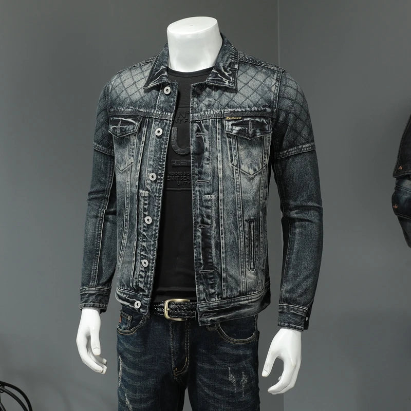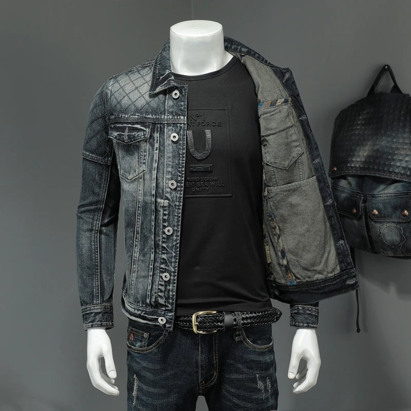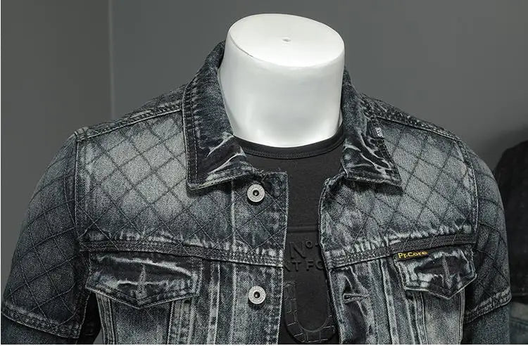 Men's Spring Autumn Cotton Denim Plaid Slim Casual Jacket