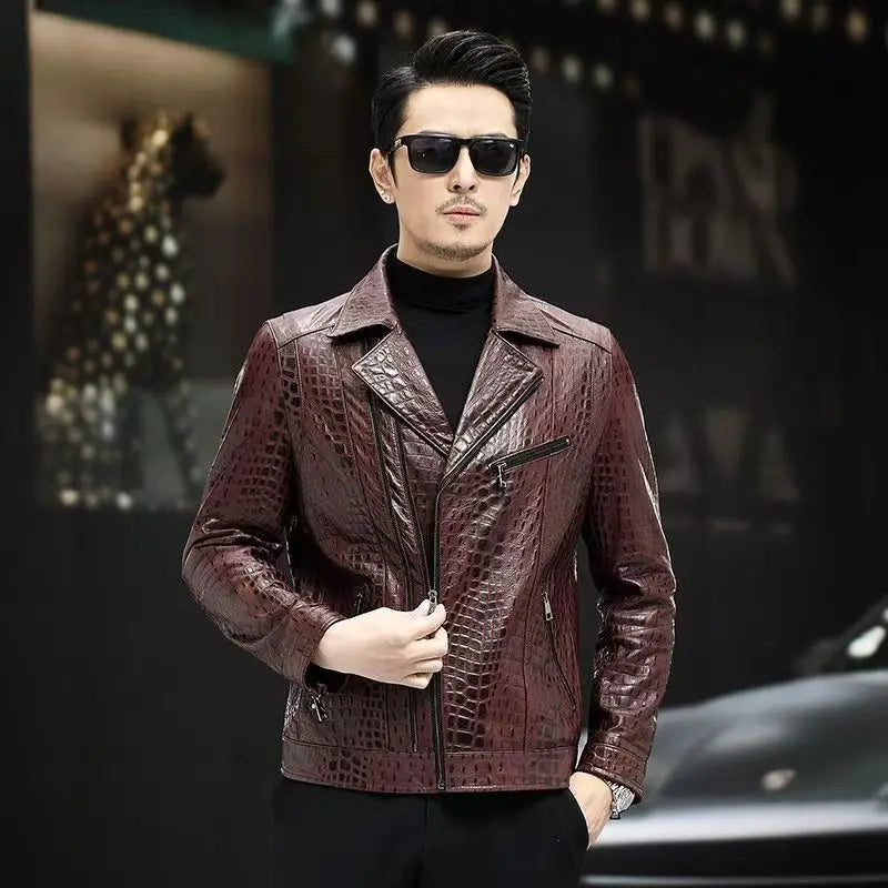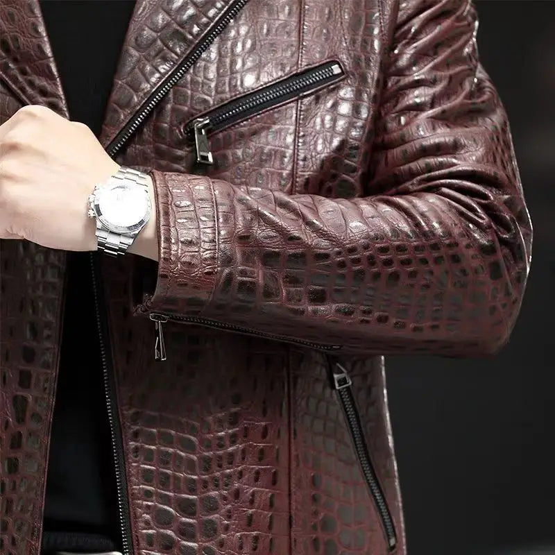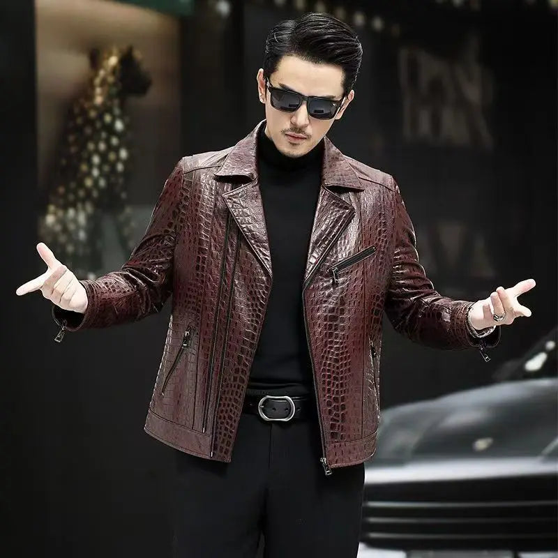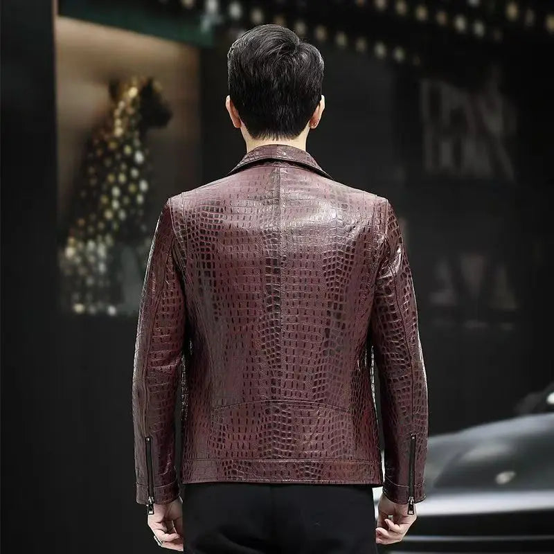 Men's Spring Autumn Genuine Sheepskin Leather Casual Blazer Jacket