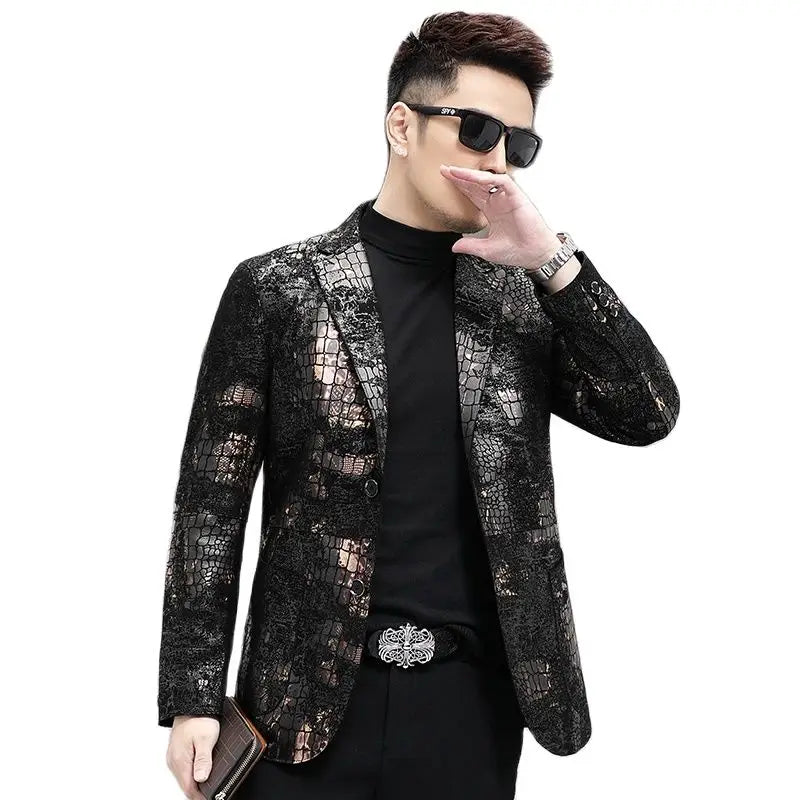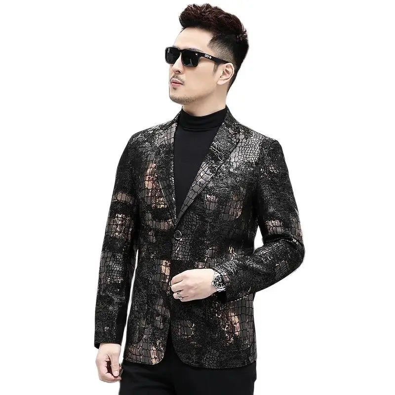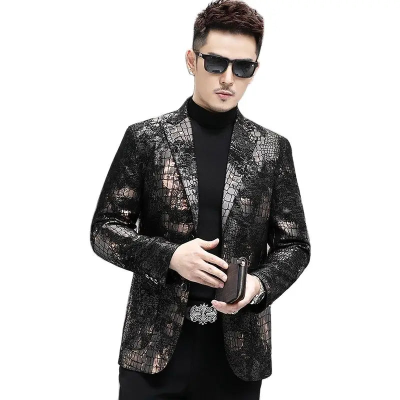 Spring Fashion Sheepskin Genuine Leather Plaid Blazer for Men