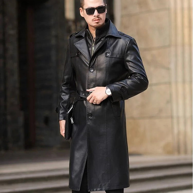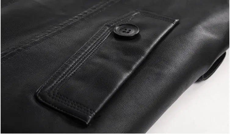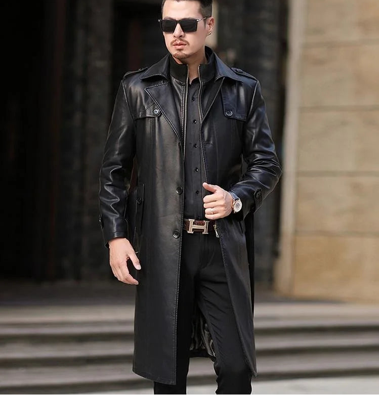 Winter Style Solid Black Synthetic Fur Thick Long Trench Coat for Men