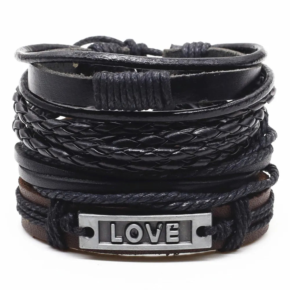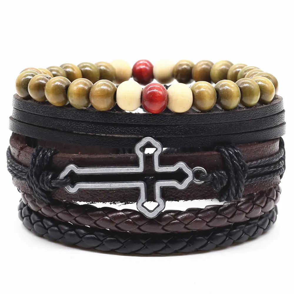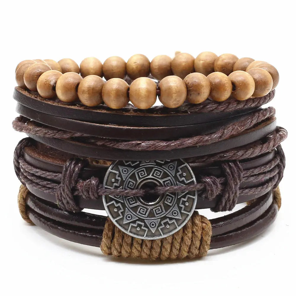 4 Pcs-per-set Beads Weave Pattern Vintage Punk Men and Women Charm Bracelet