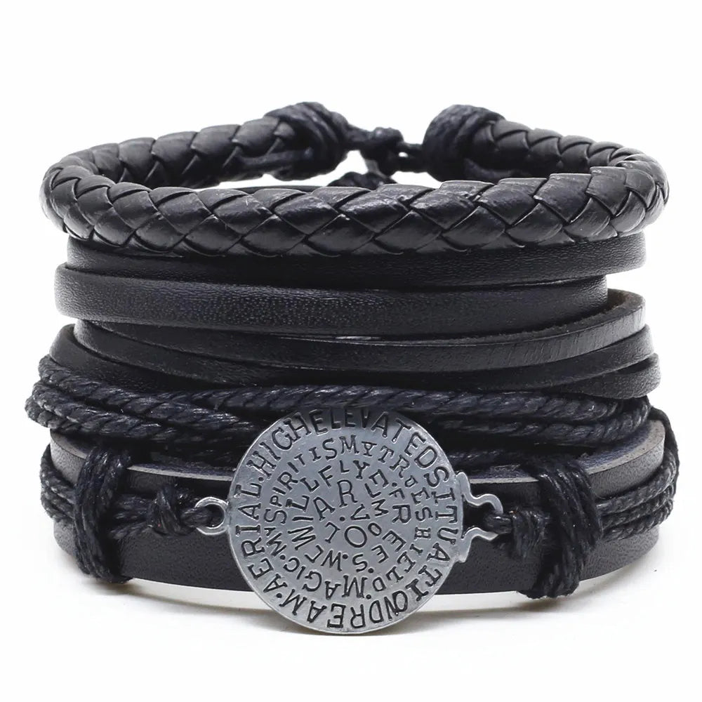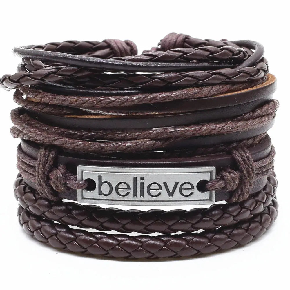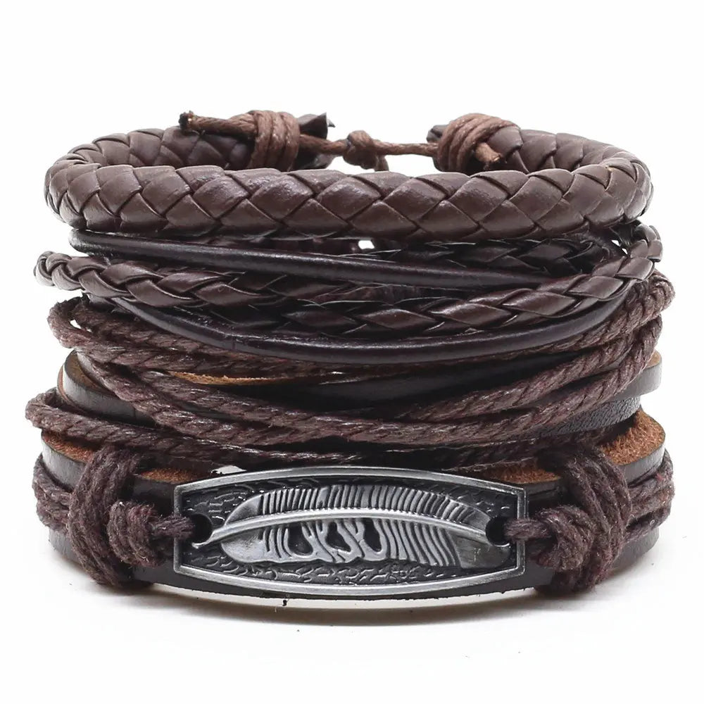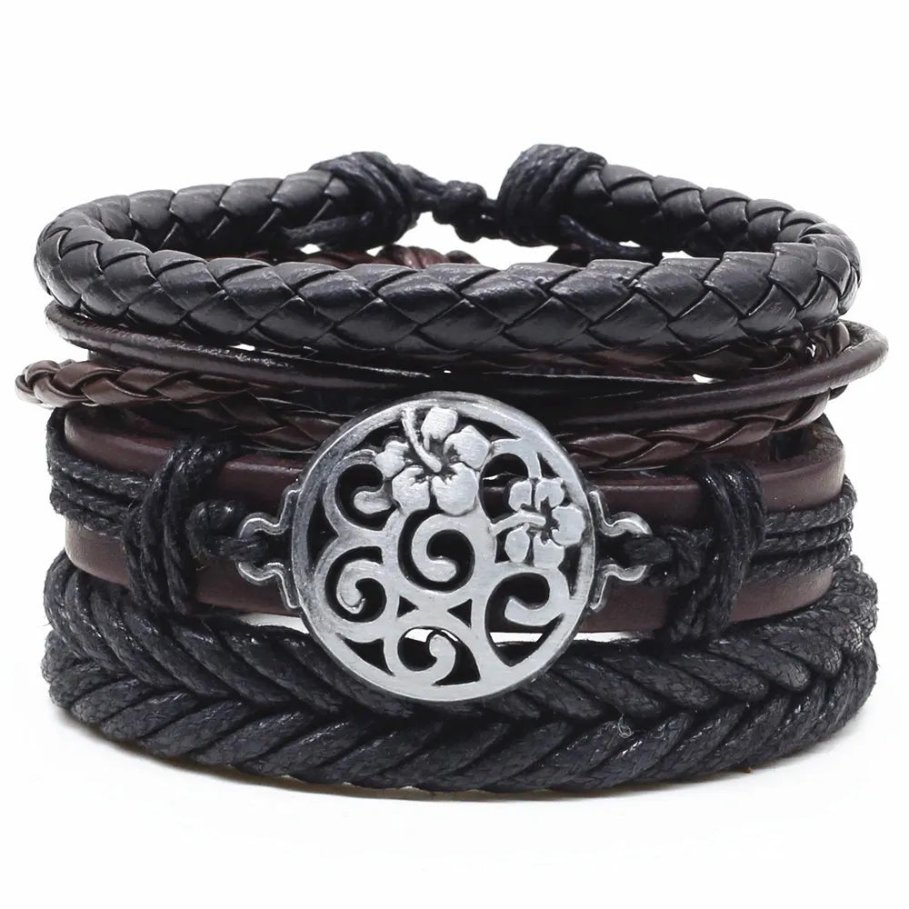4 Pcs-per-set Beads Weave Pattern Vintage Punk Men and Women Charm Bracelet