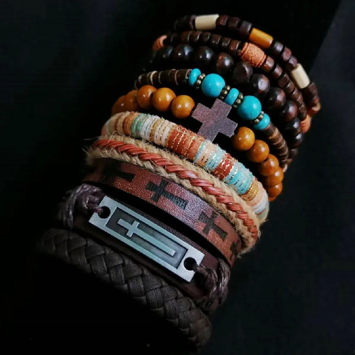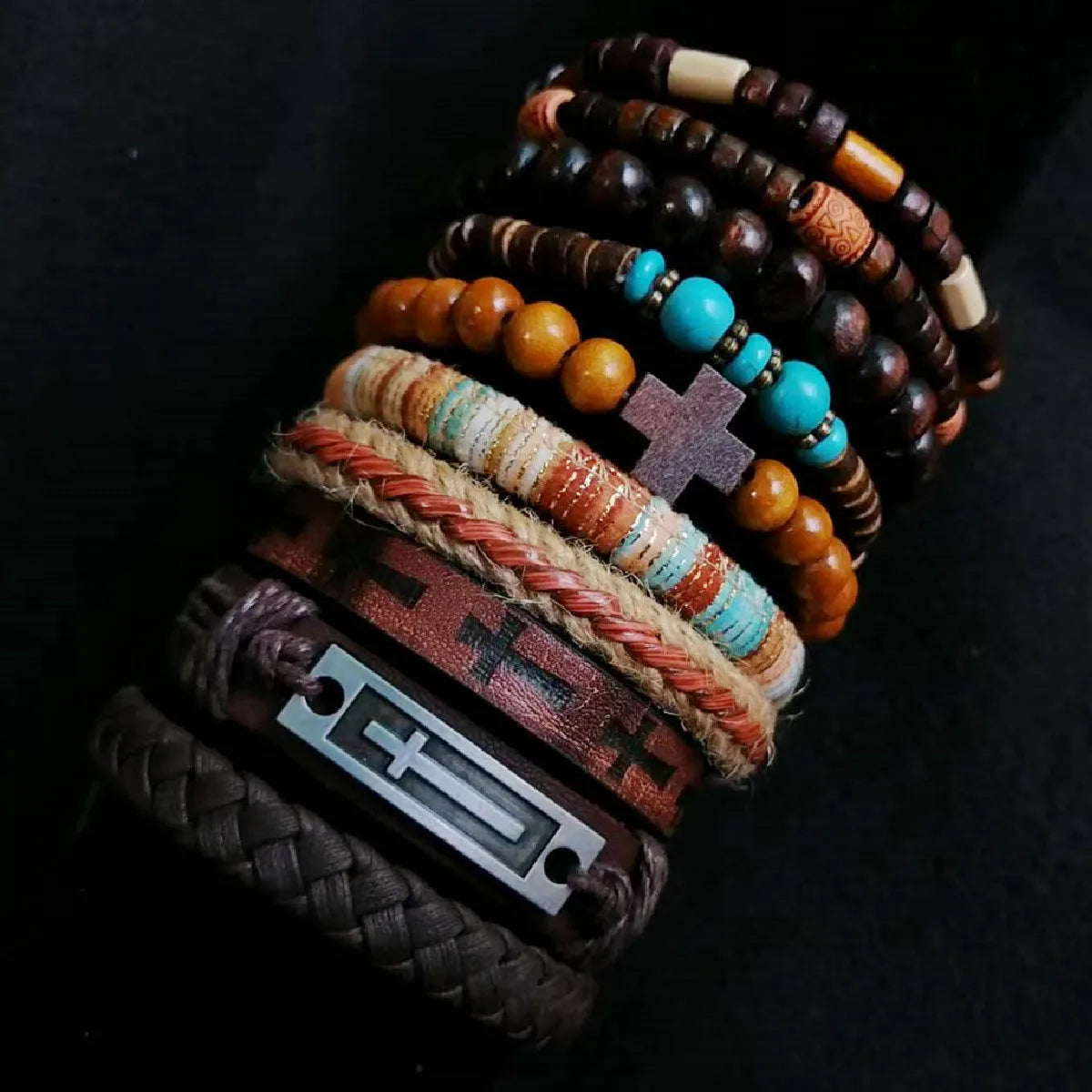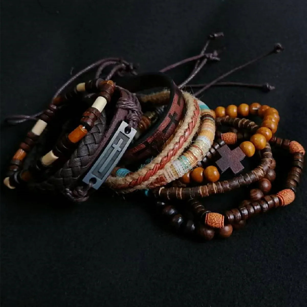 Ethnic 10pc-per-set Cross Beads Vintage Casual Handmade Unisex Bracelet