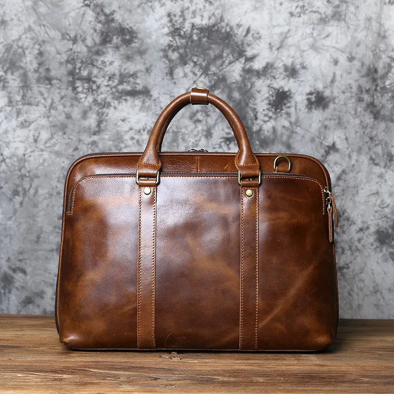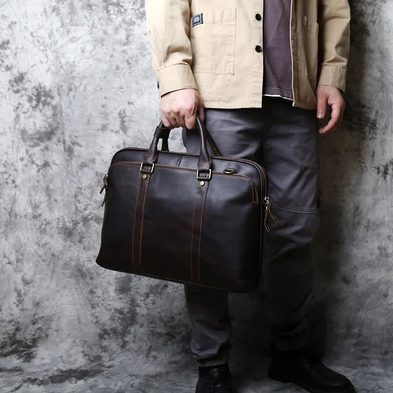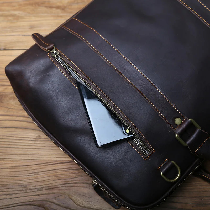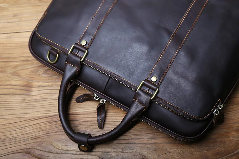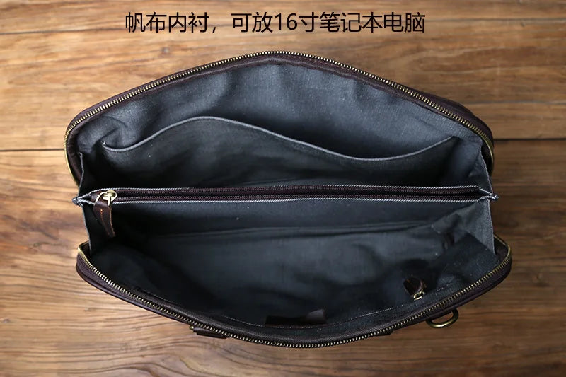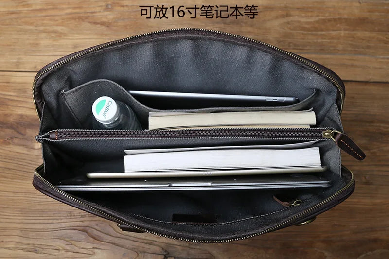 Handmade Large-capacity Vintage Business Style Leather Men's Computer Handbag