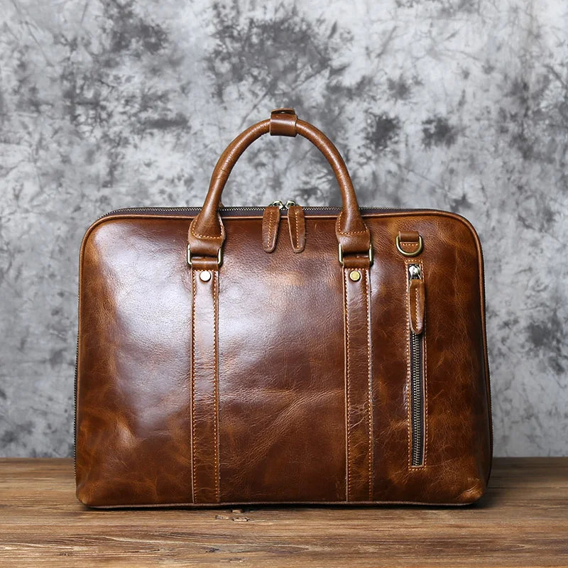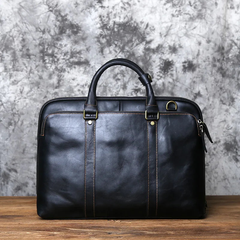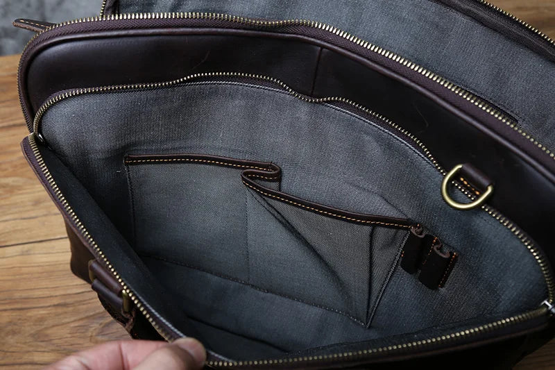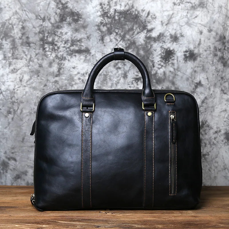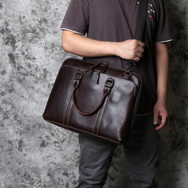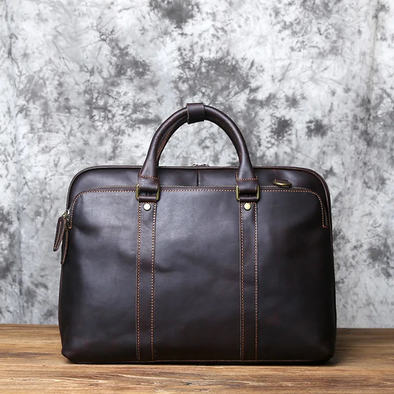 Handmade Large-capacity Vintage Business Style Leather Men's Computer Handbag