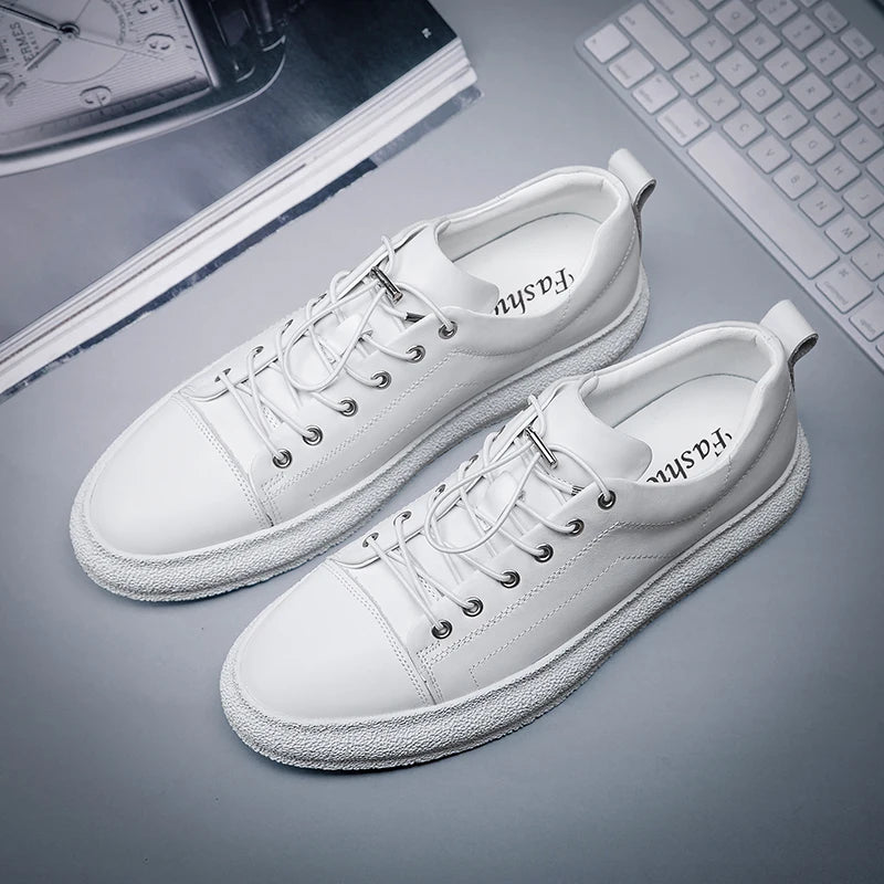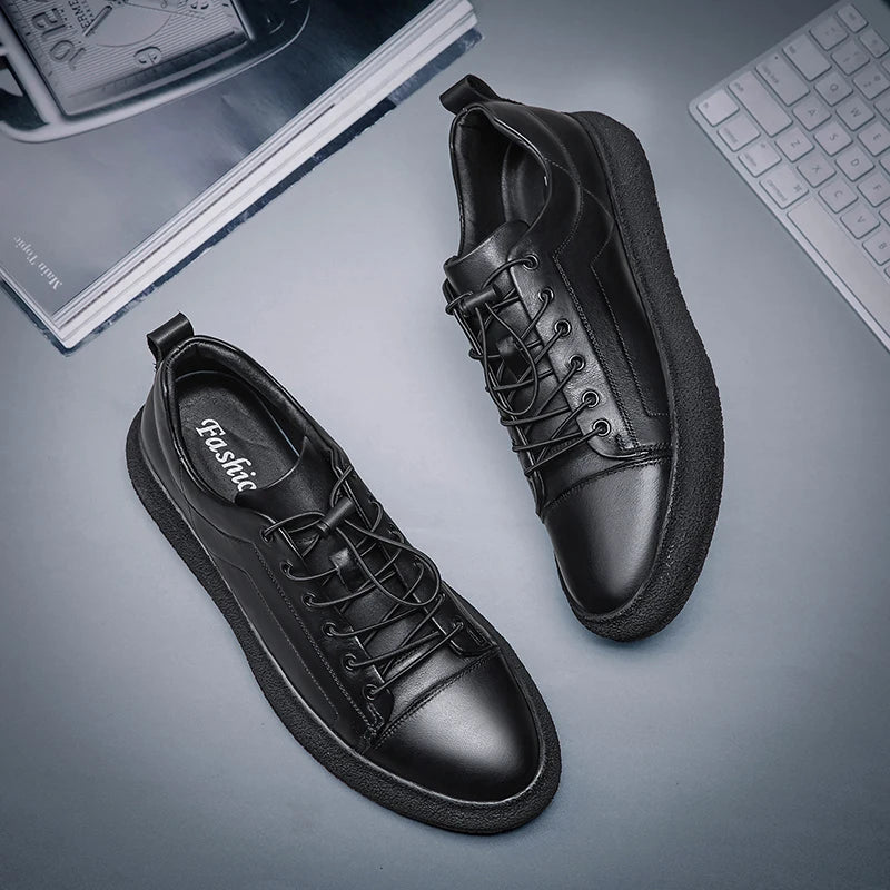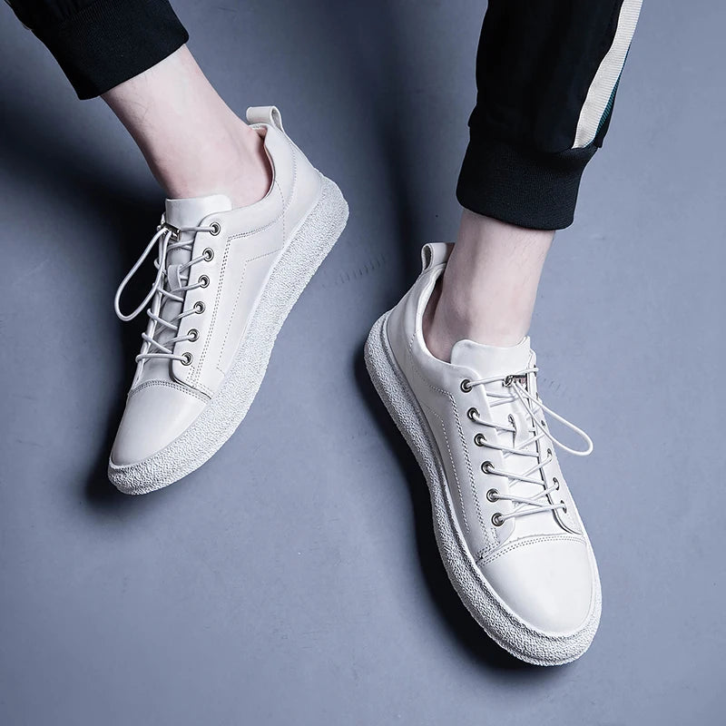 Men's Handmade Genuine Cow Leather Casual Style Lace Up Sneakers