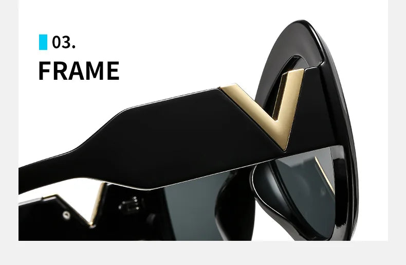 Summer Beach Vintage Fashion Letter V Square Big Frame Women's Sunglasses