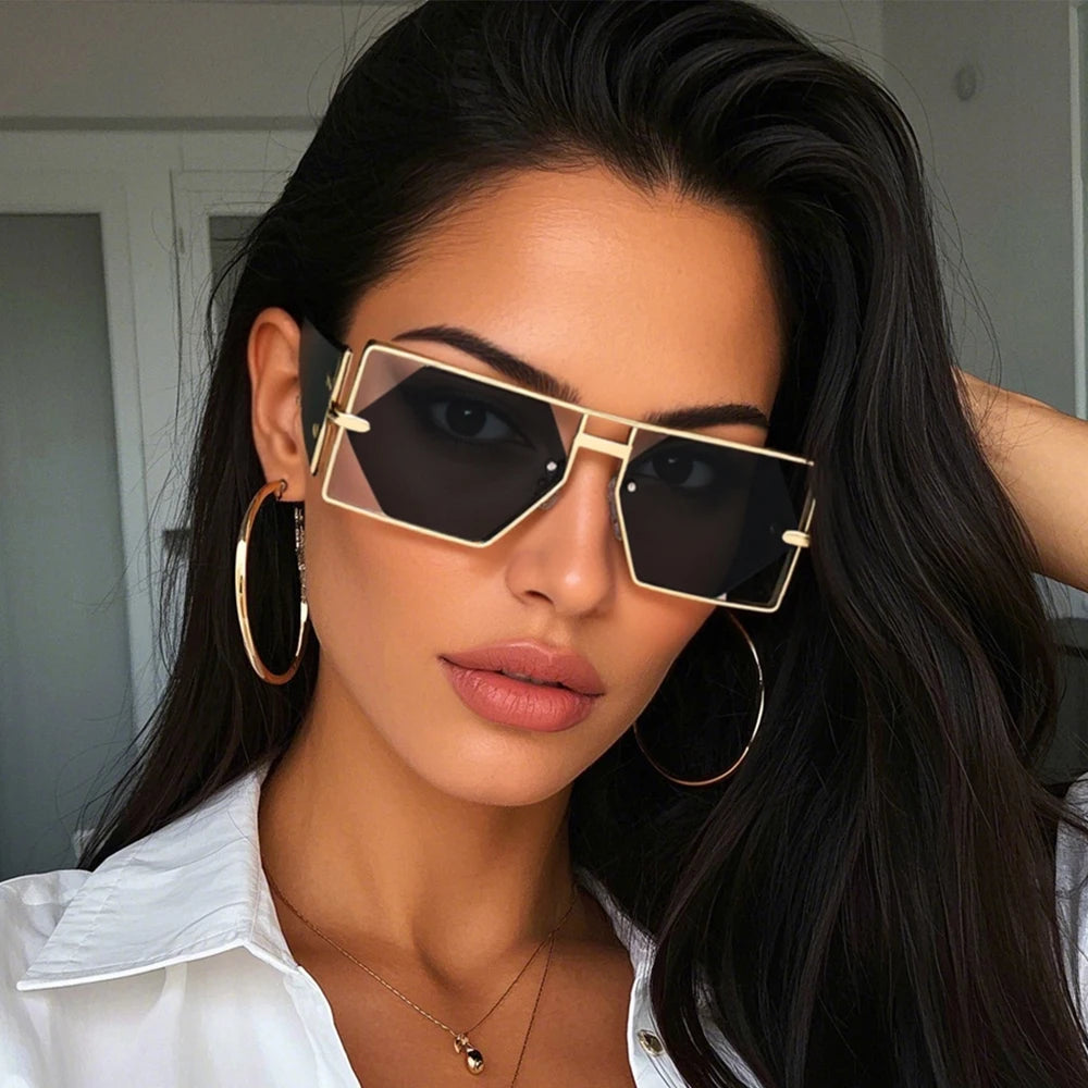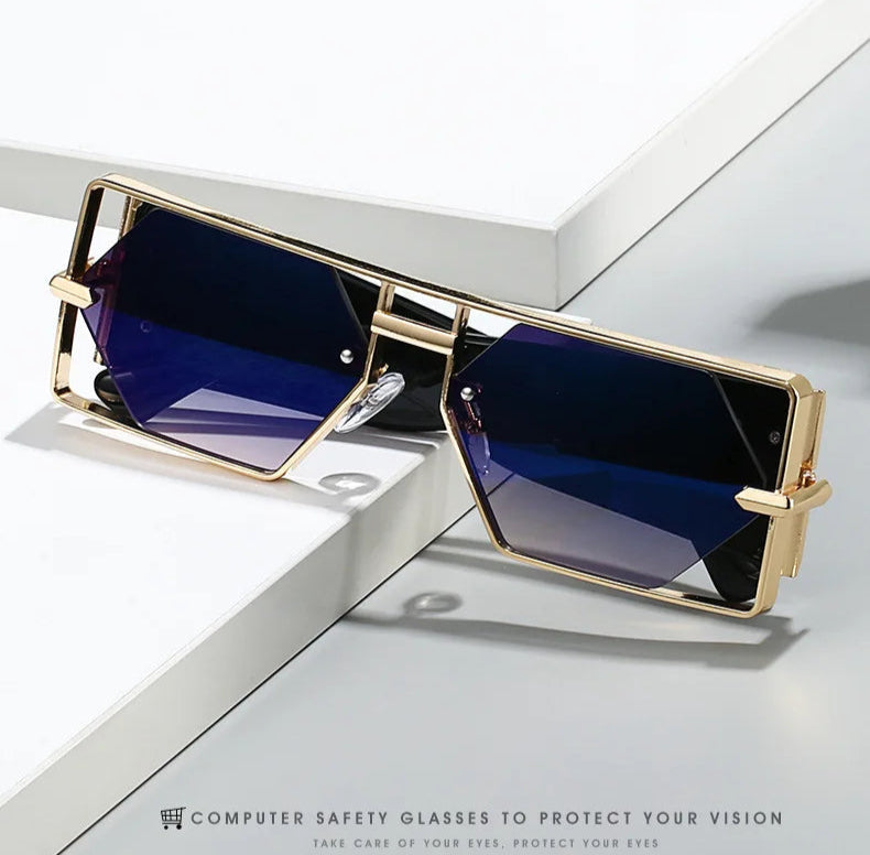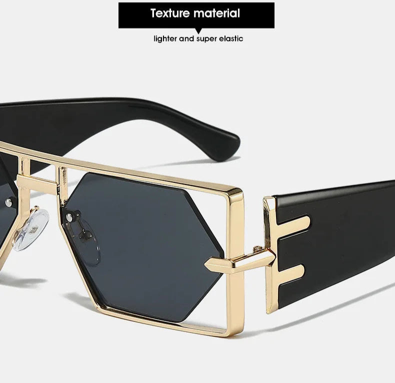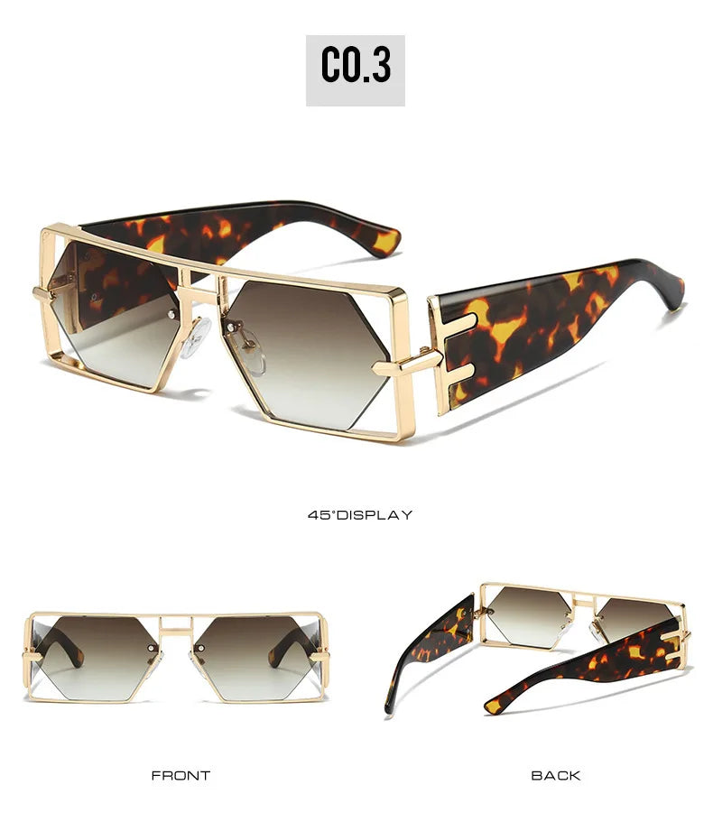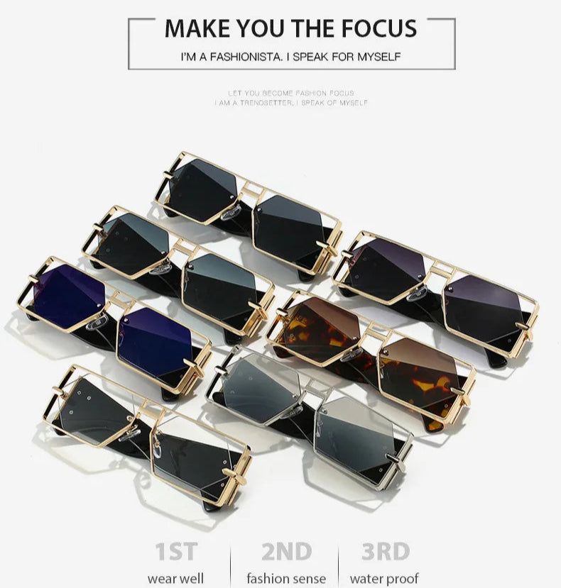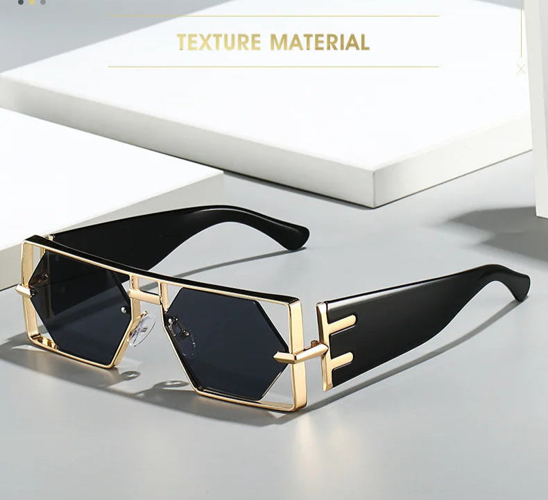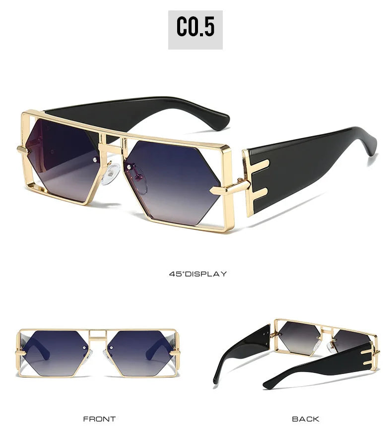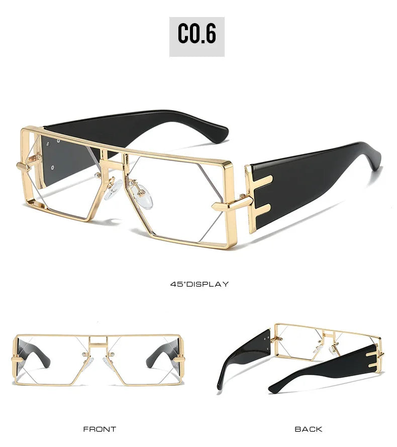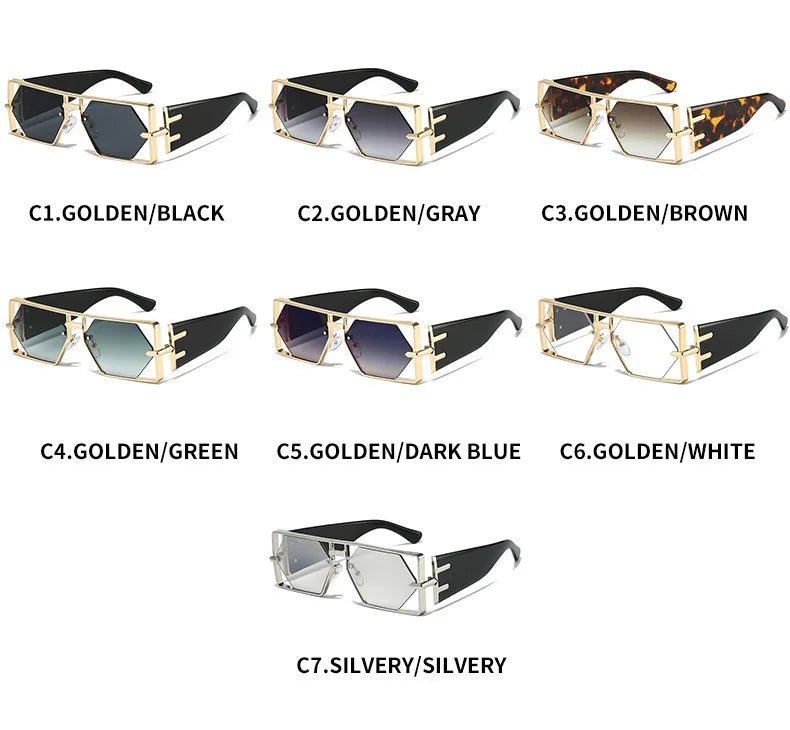 Women's Vintage Punk Hip Hop Fashion Square Metal Frame Sunglasses