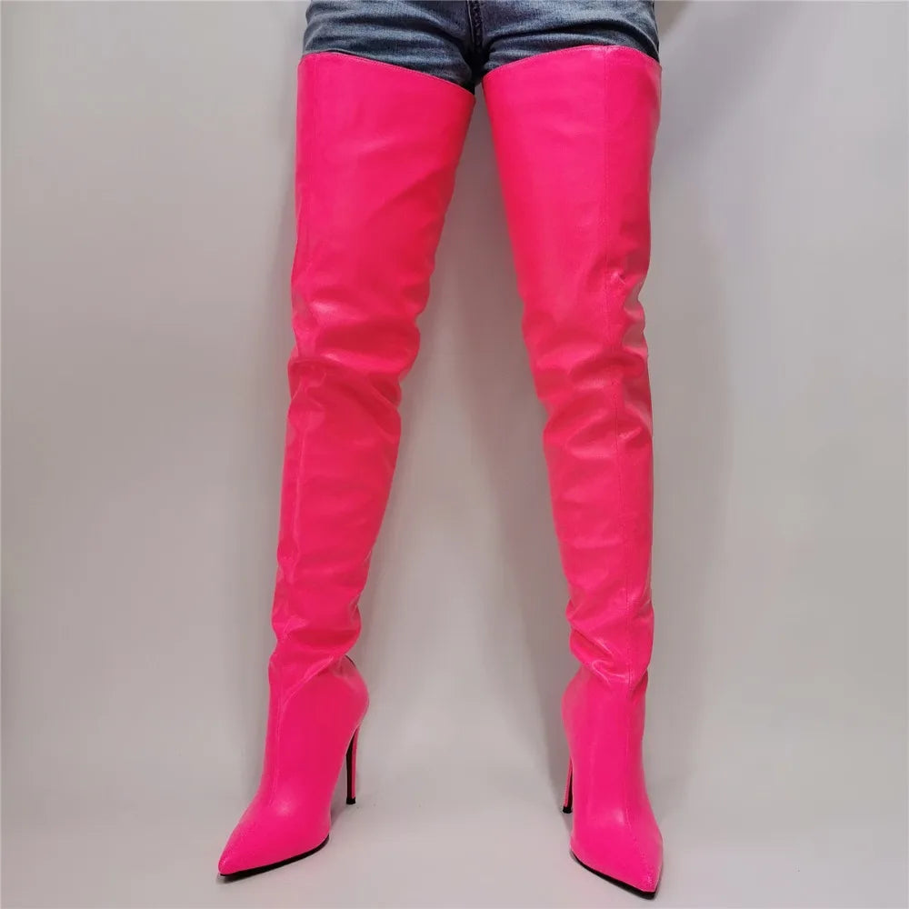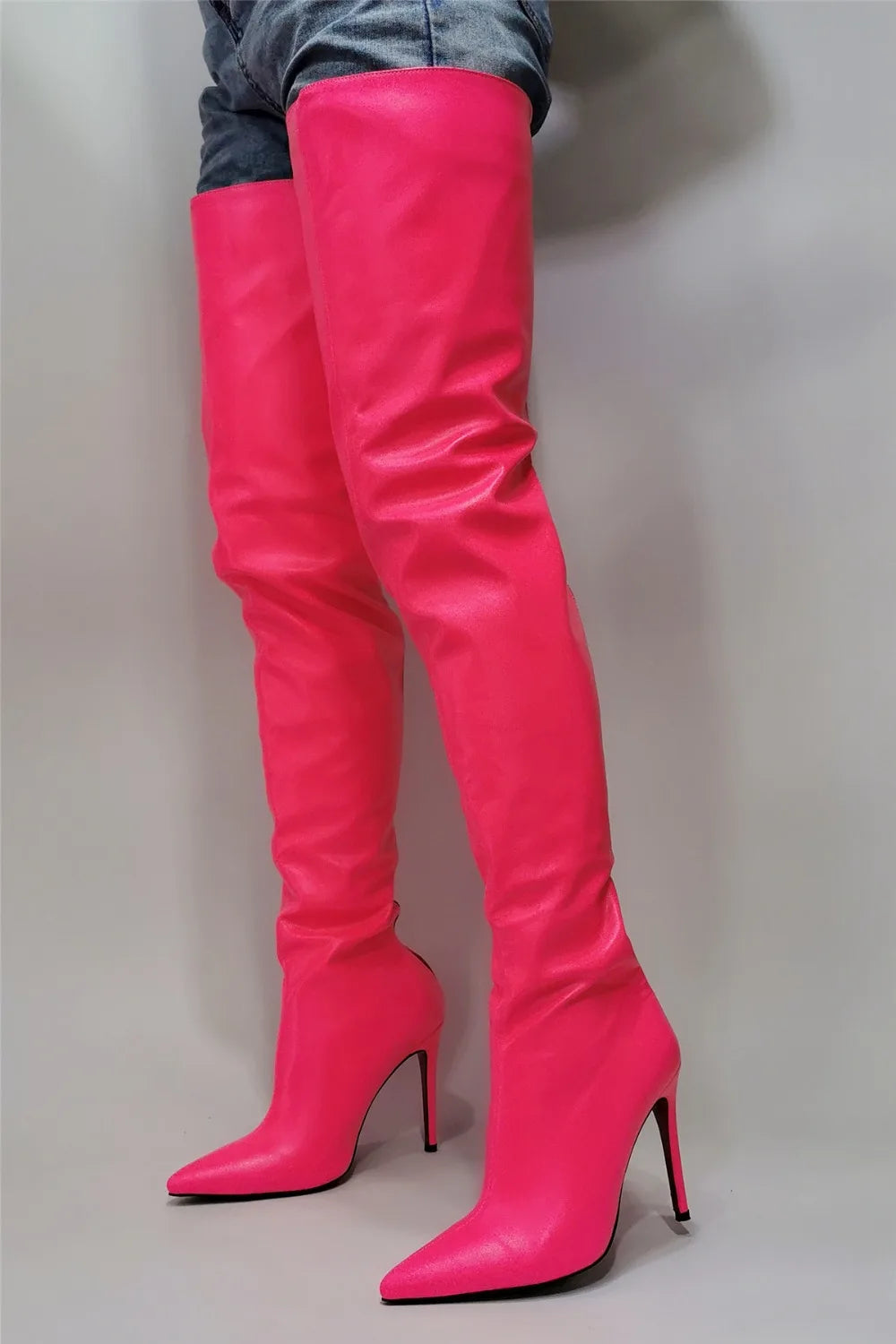 Pointed Toe Super Thin High Heels Over the Knee Boots for Women