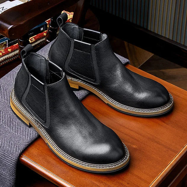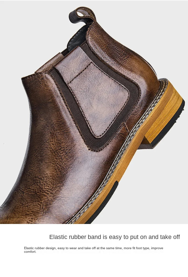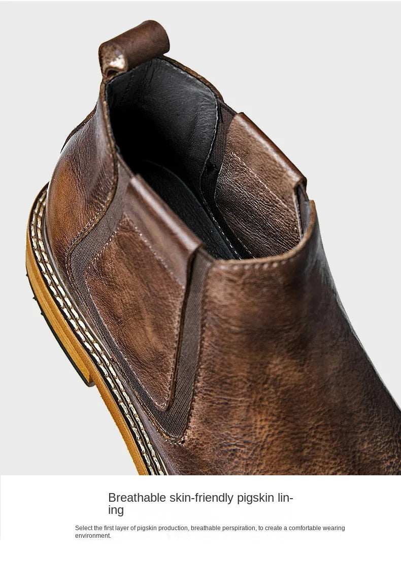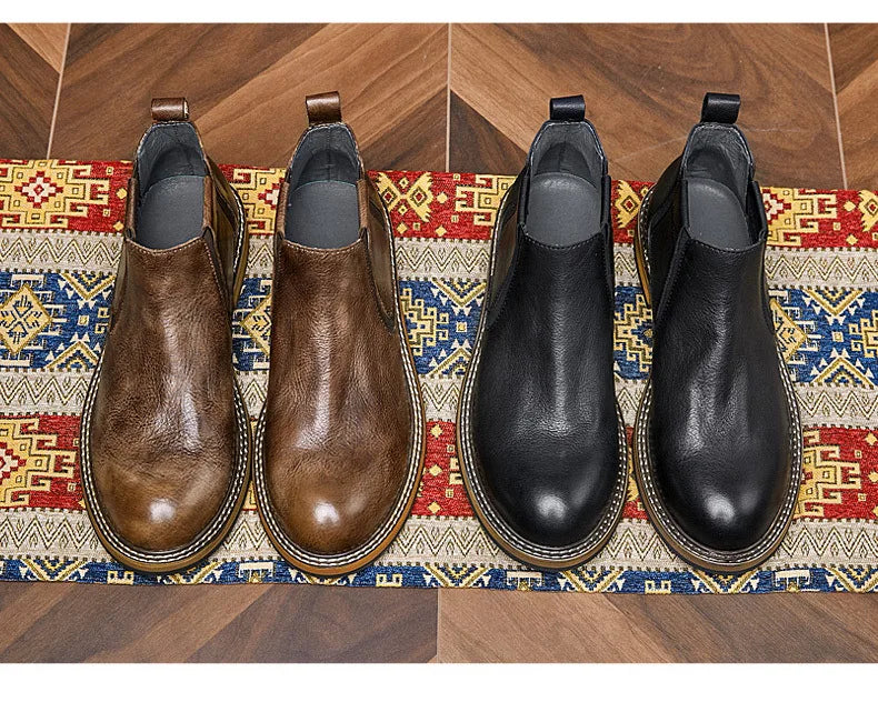 Men's Autumn British Vintage Style Genuine Leather Slip-On Chelsea Boots