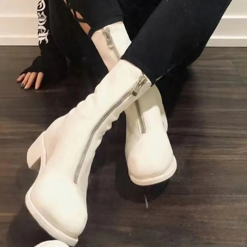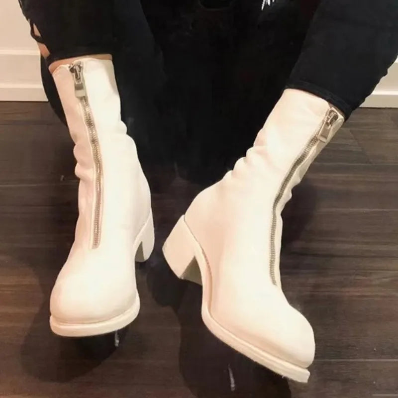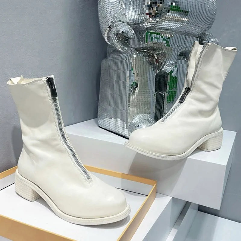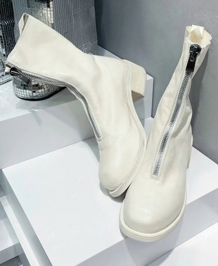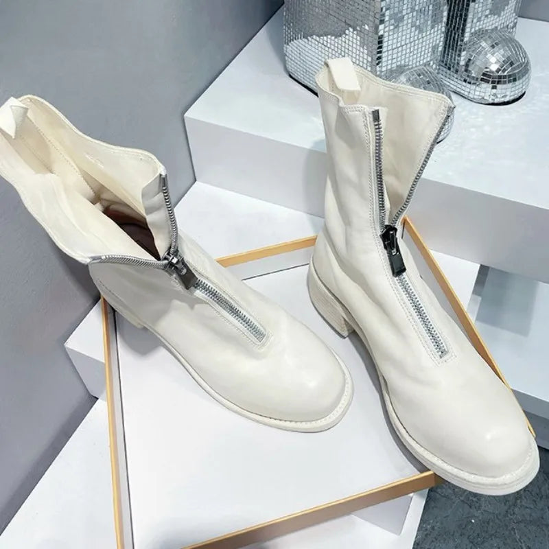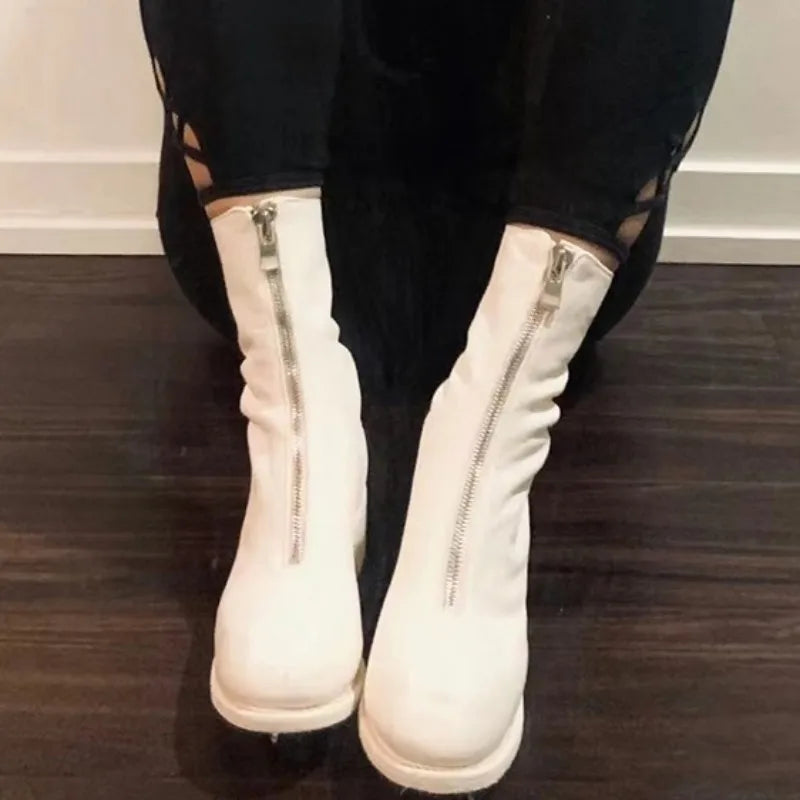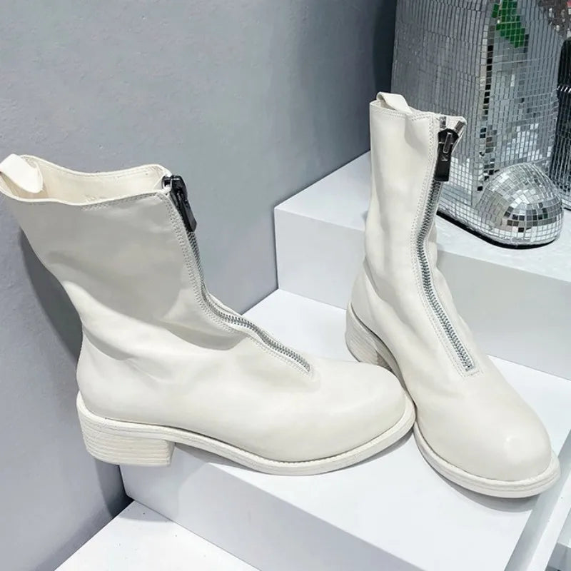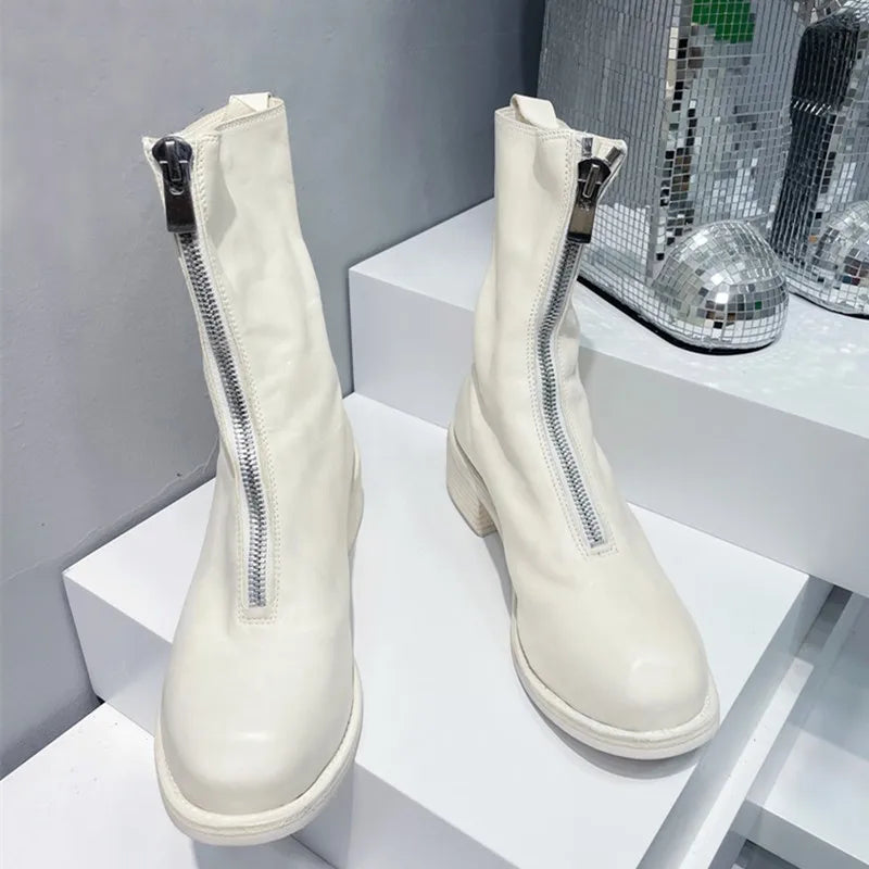 Men's Solid Color Genuine Leather Round Toe Cowhide Height Increasing Zipper Platform Boots