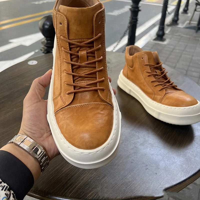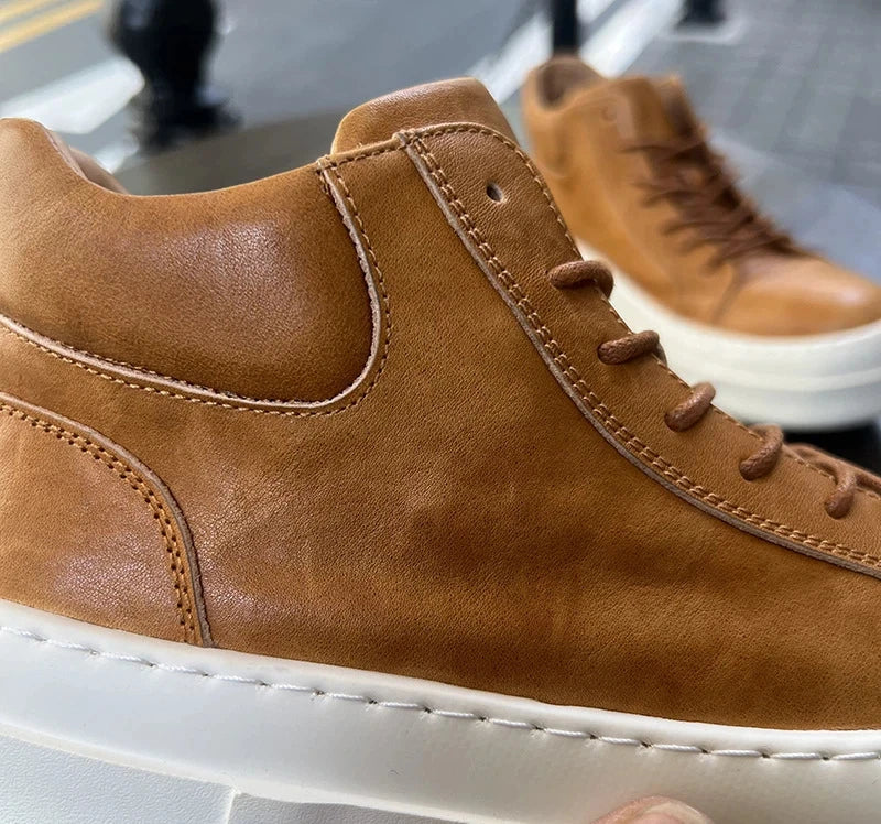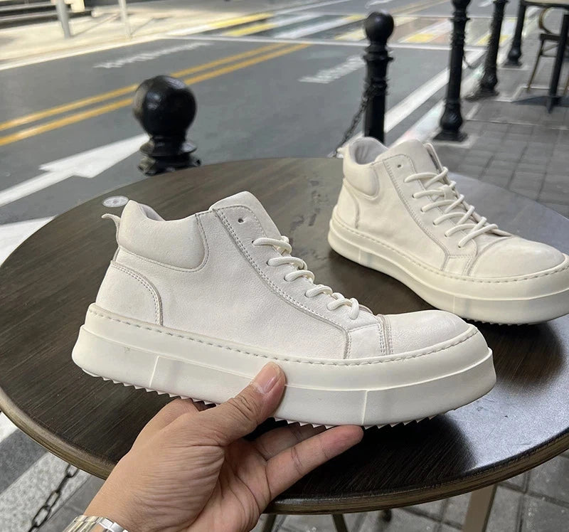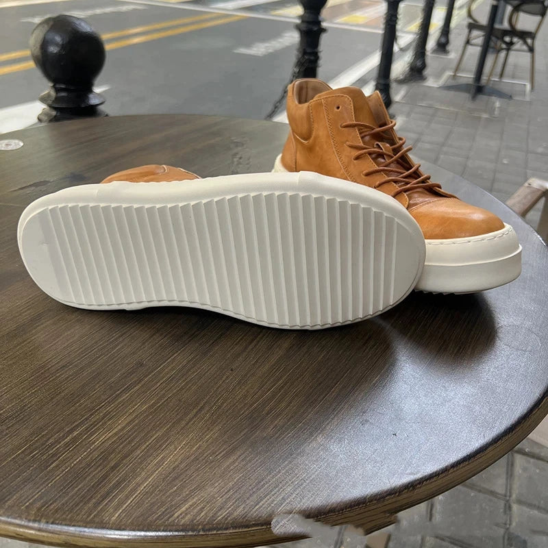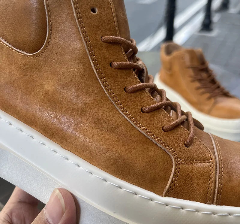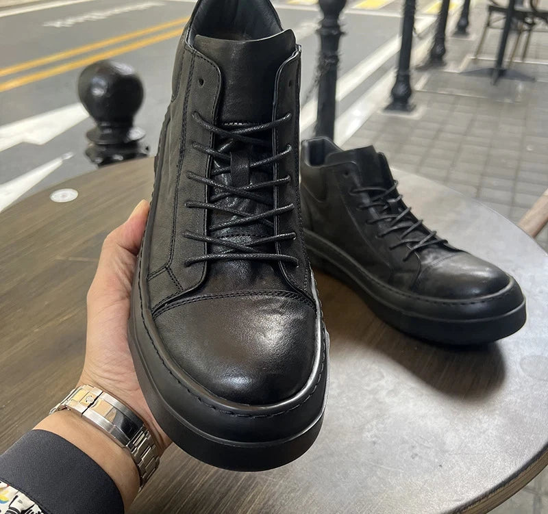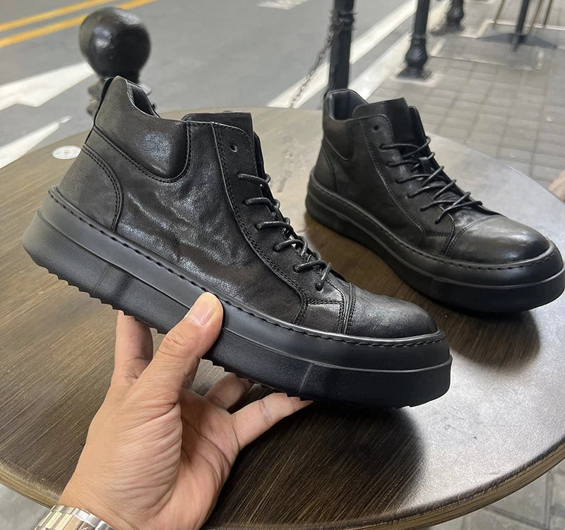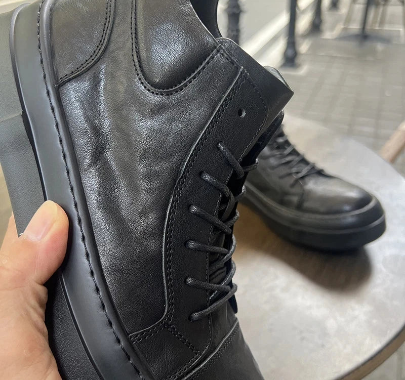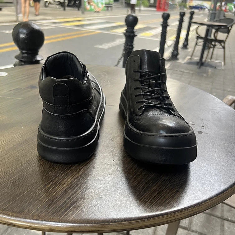 Men's Winter Warm Thickened Top Grain Leather Thermal Fleece Lined Snow Boots