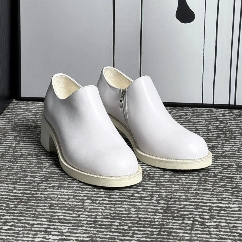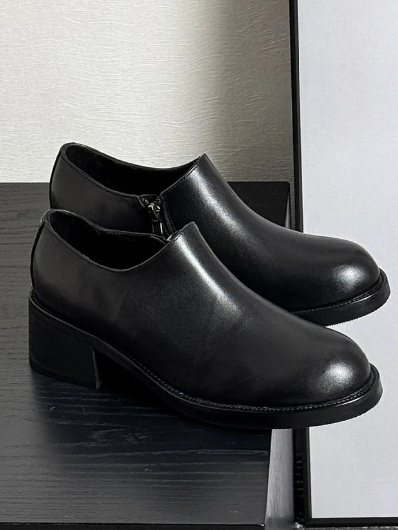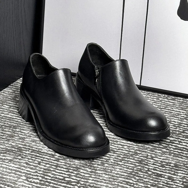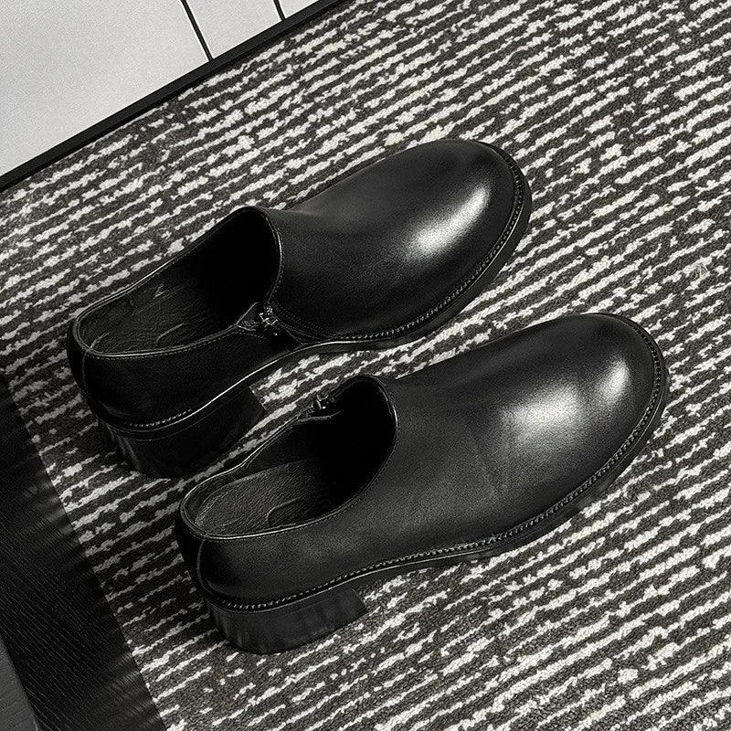 Men's Cowskin Genuine Leather Zipper Height Increasing Party Banquet Office Dress Shoes