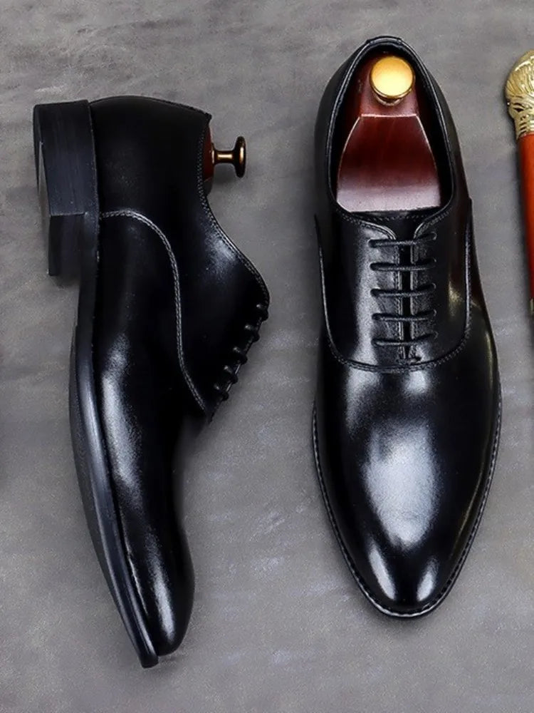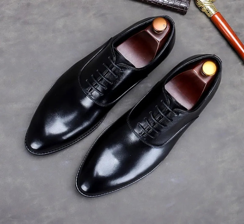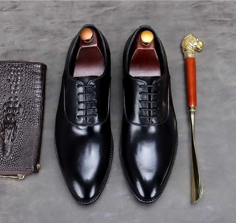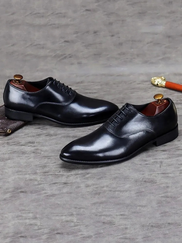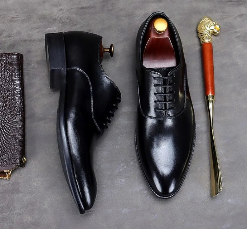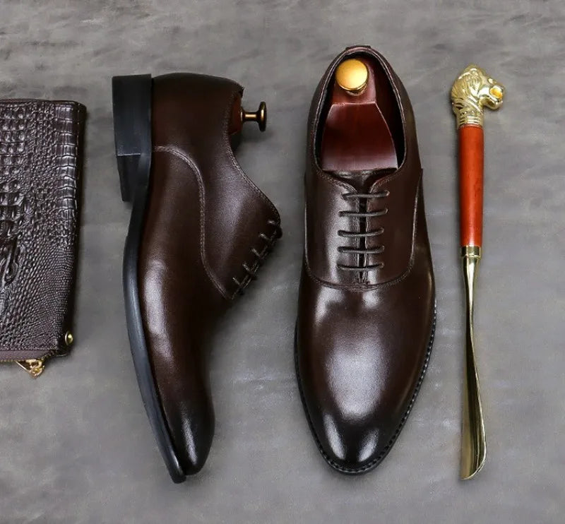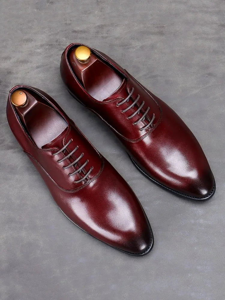 Men's Genuine Leather Business Casual Solid Color Lace Up Handmade Dress Shoes