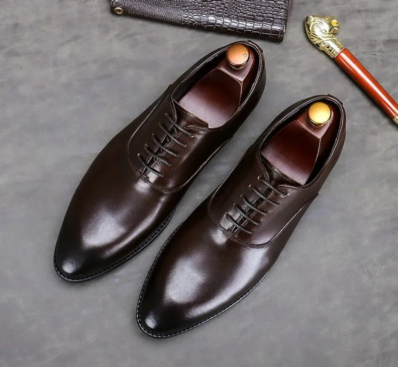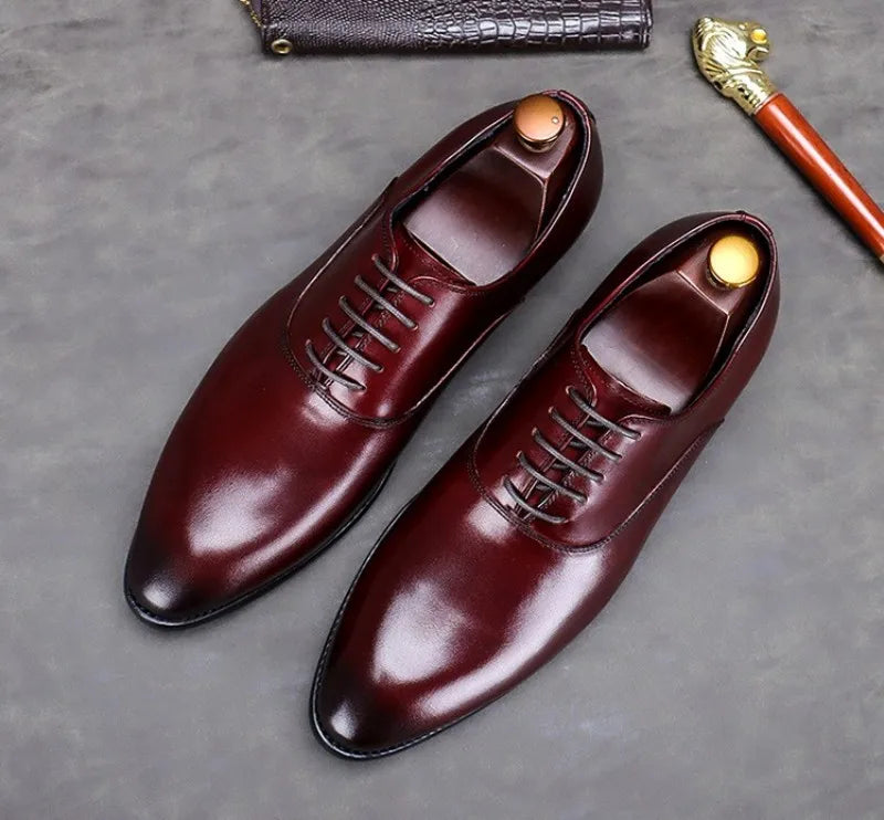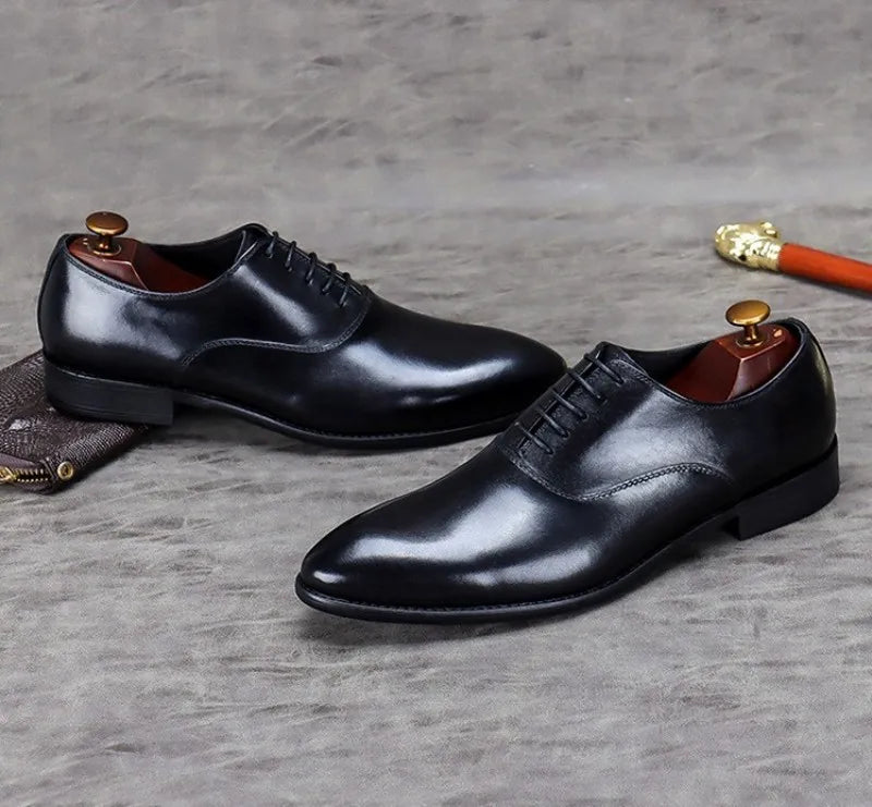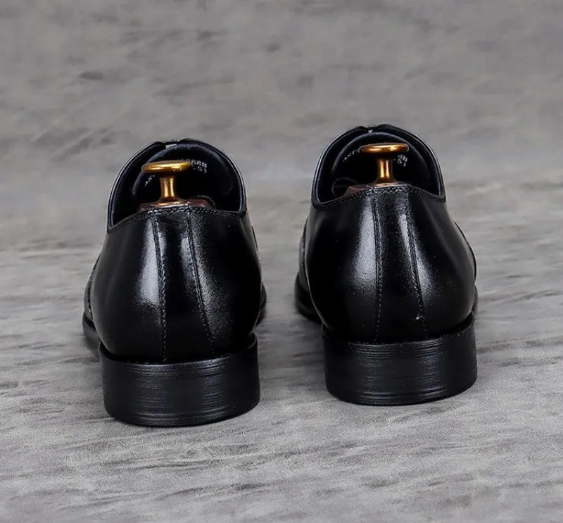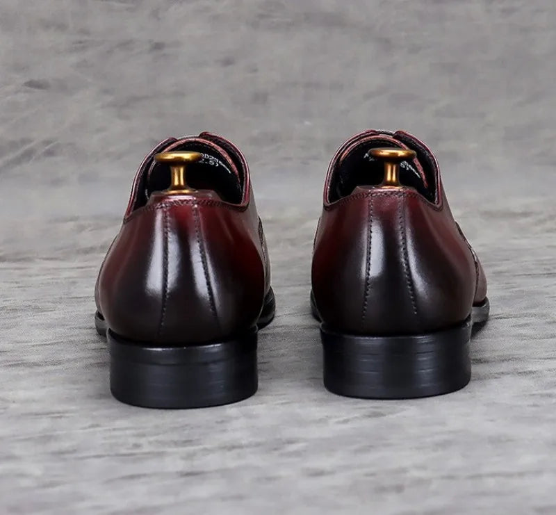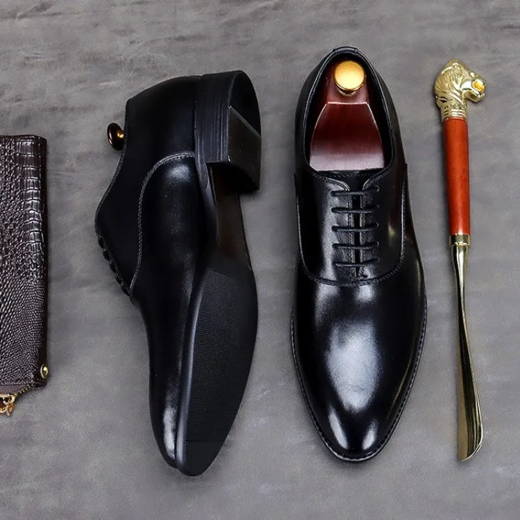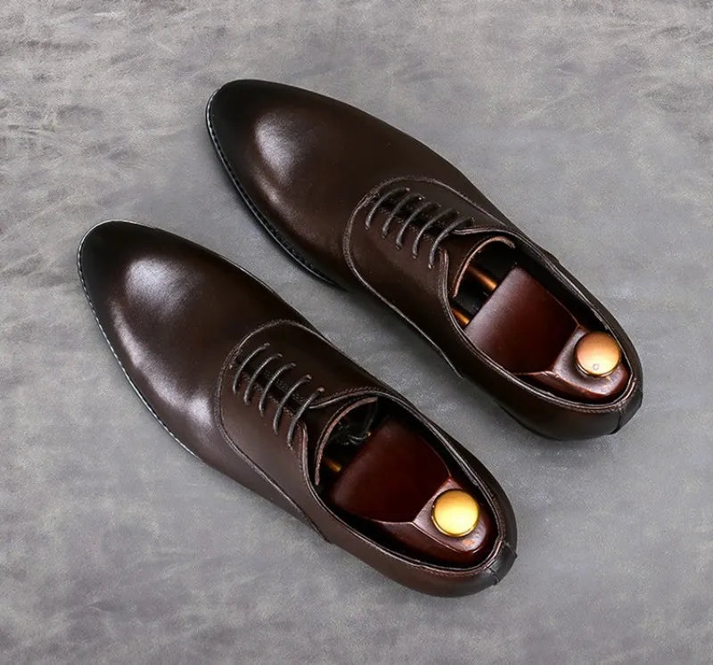 Men's Genuine Leather Business Casual Solid Color Lace Up Handmade Dress Shoes