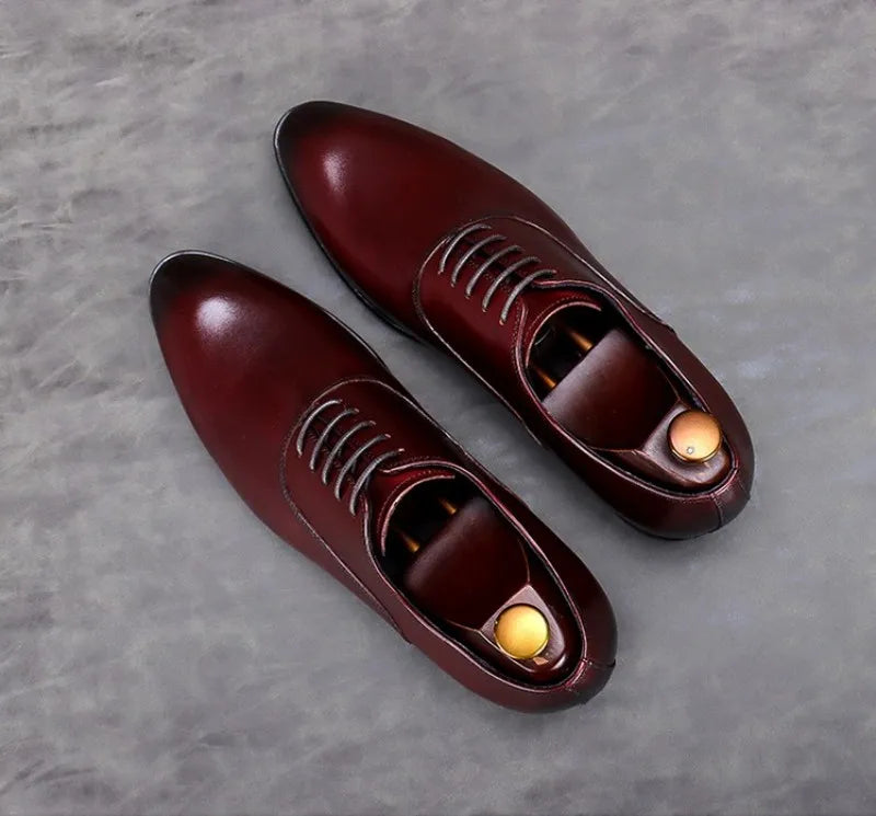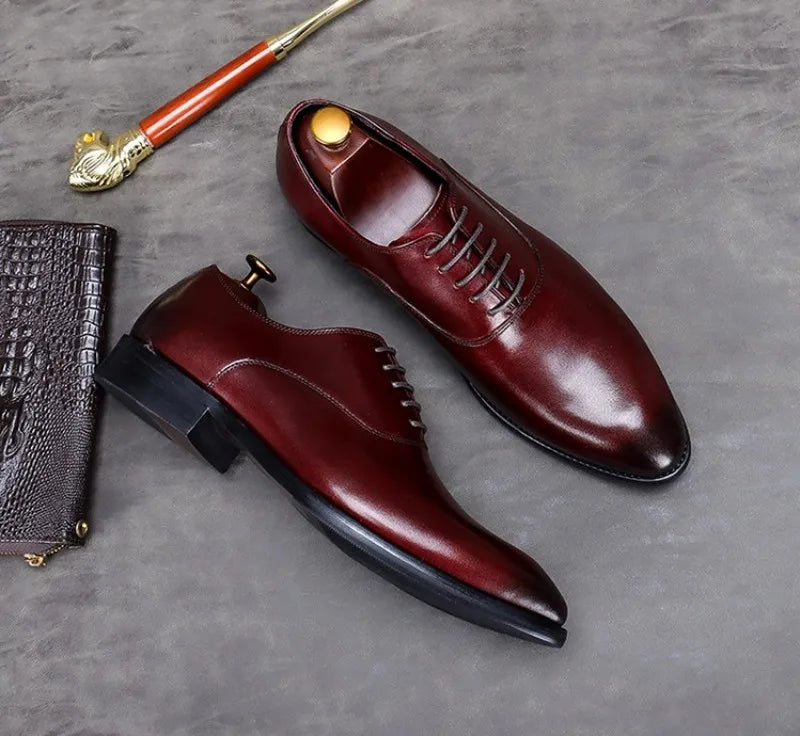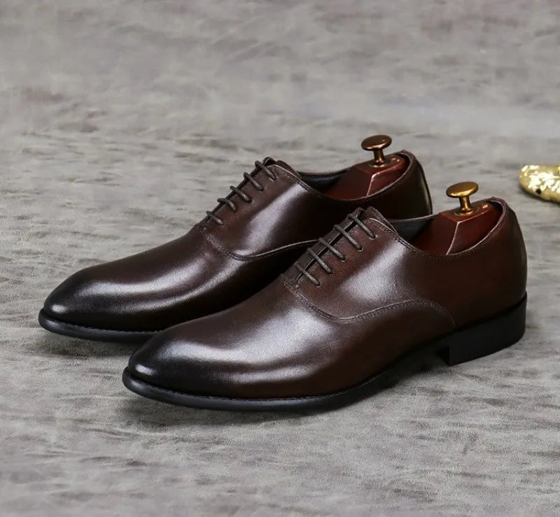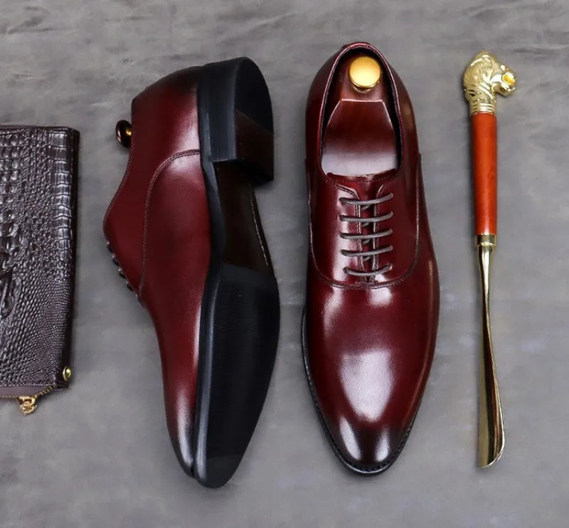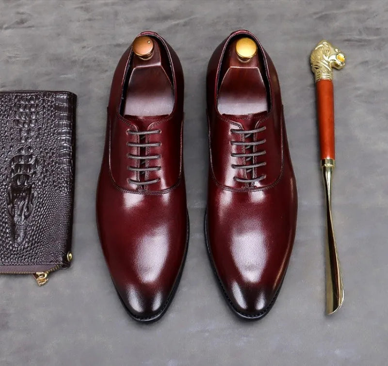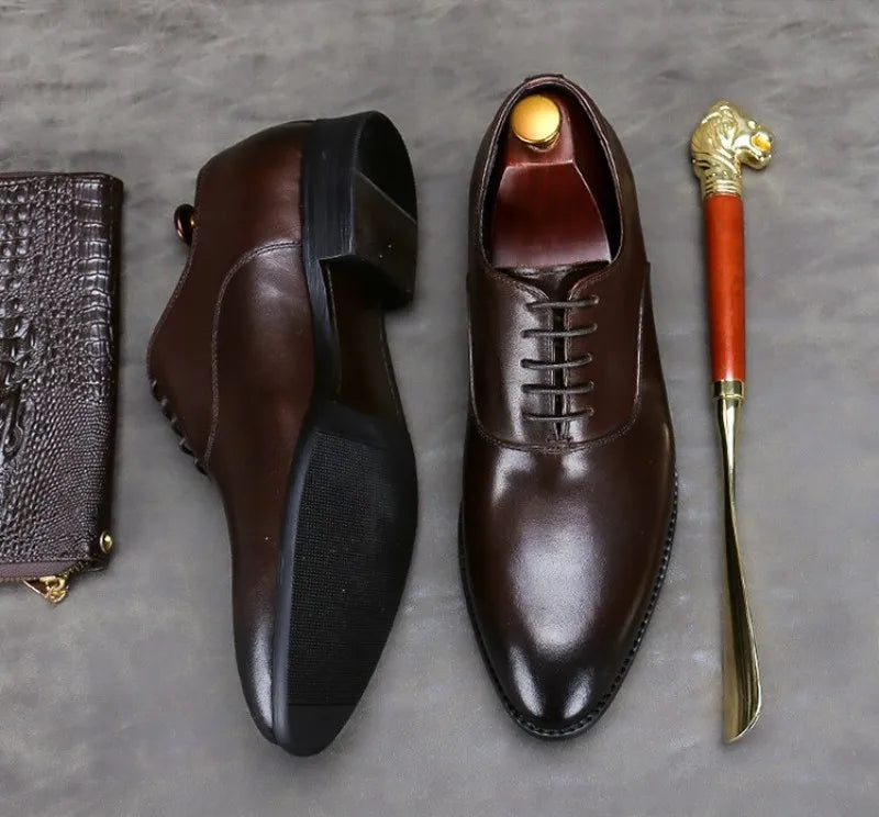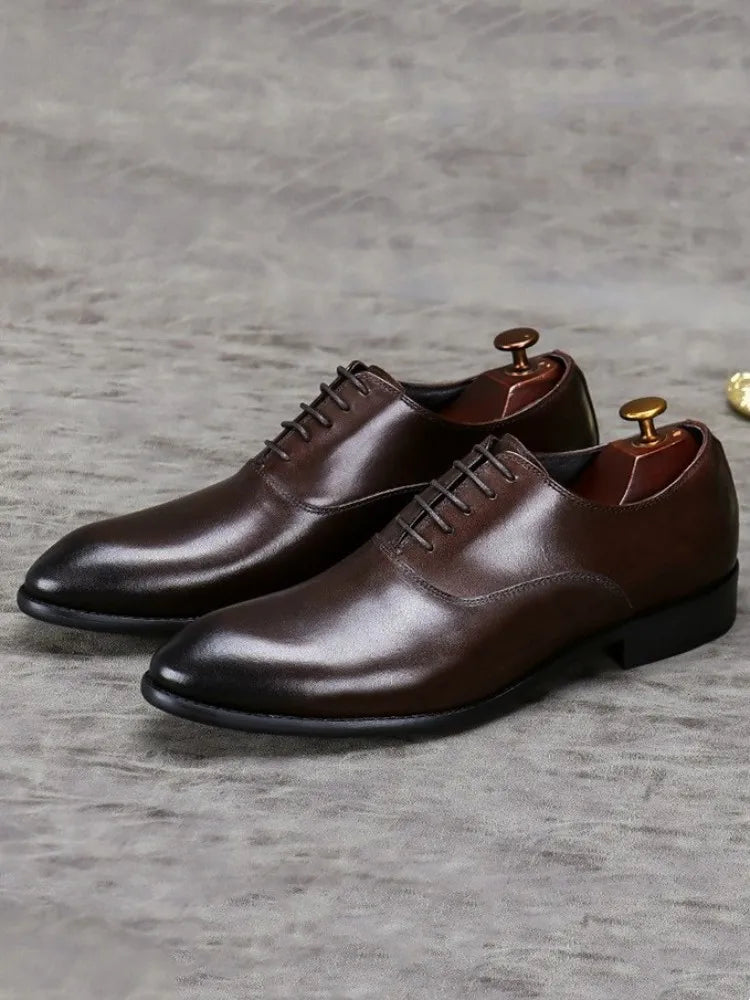 Men's Genuine Leather Business Casual Solid Color Lace Up Handmade Dress Shoes