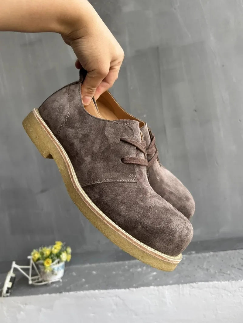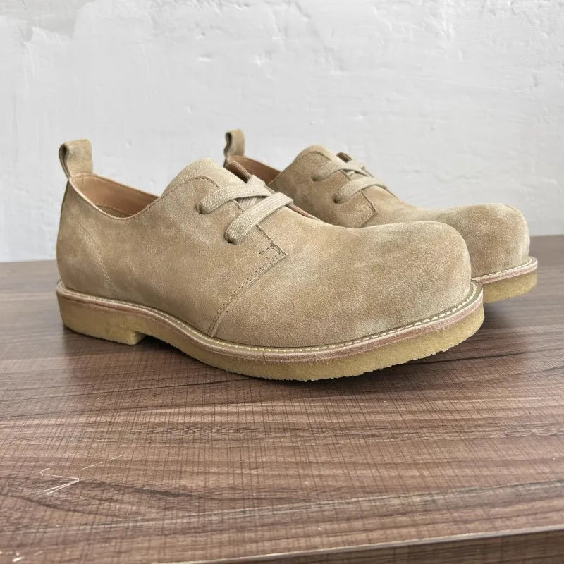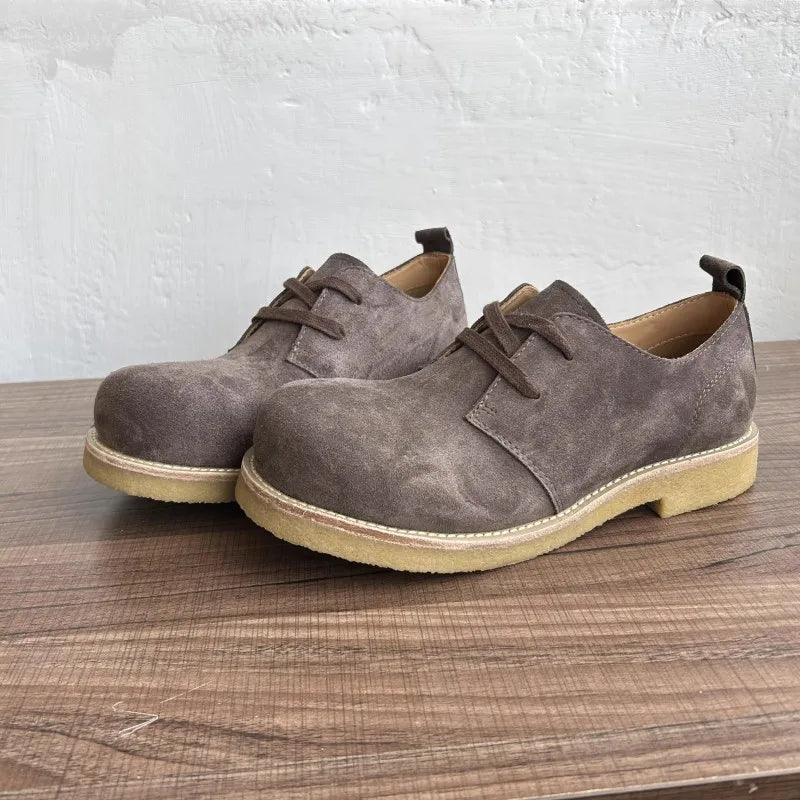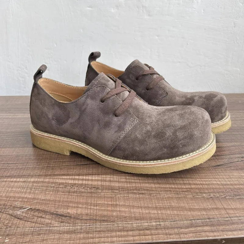 Men's Vintage Business Casual Round Toe Lace Up Genuine Leather Dress Shoes