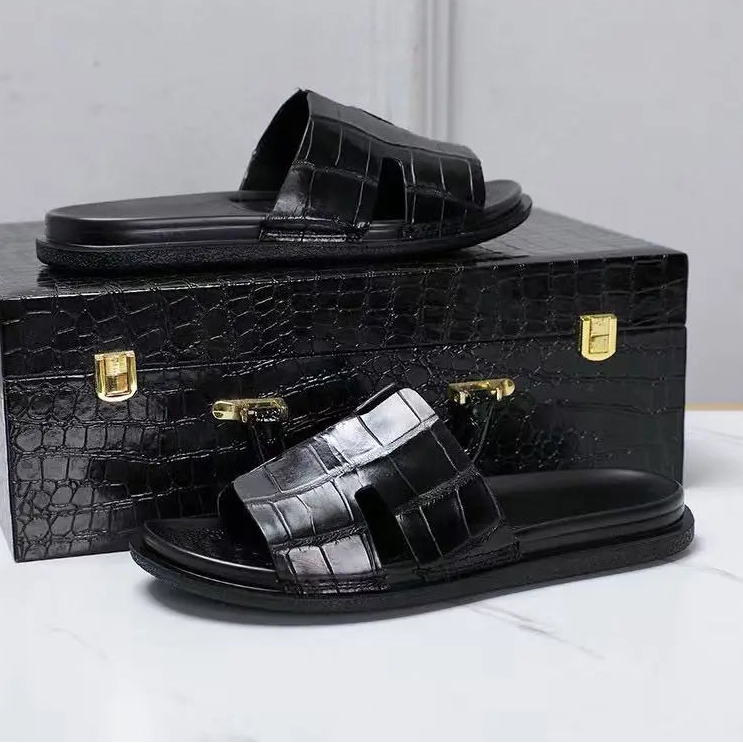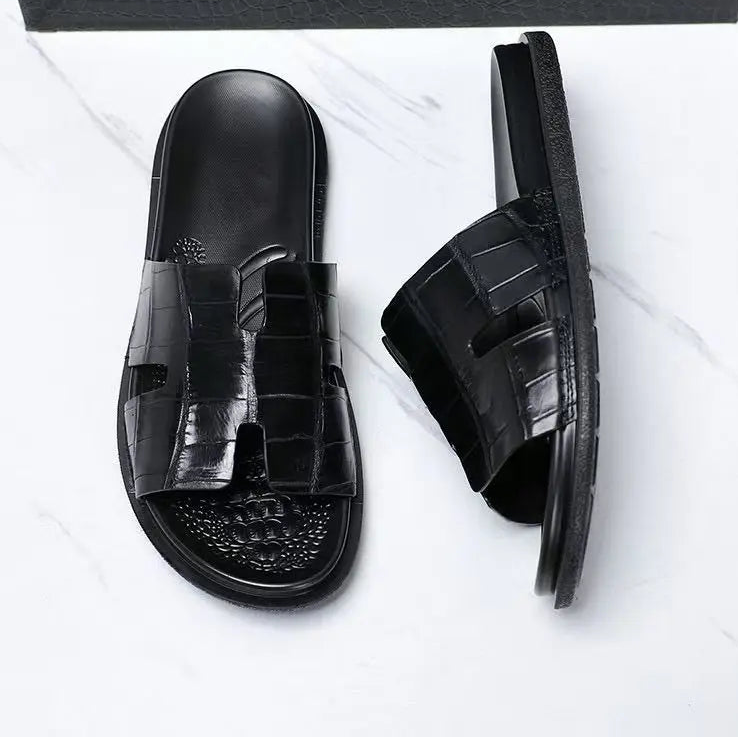 Summer Fashion Crocodile Skin Flat Casual Beach Slippers for Men