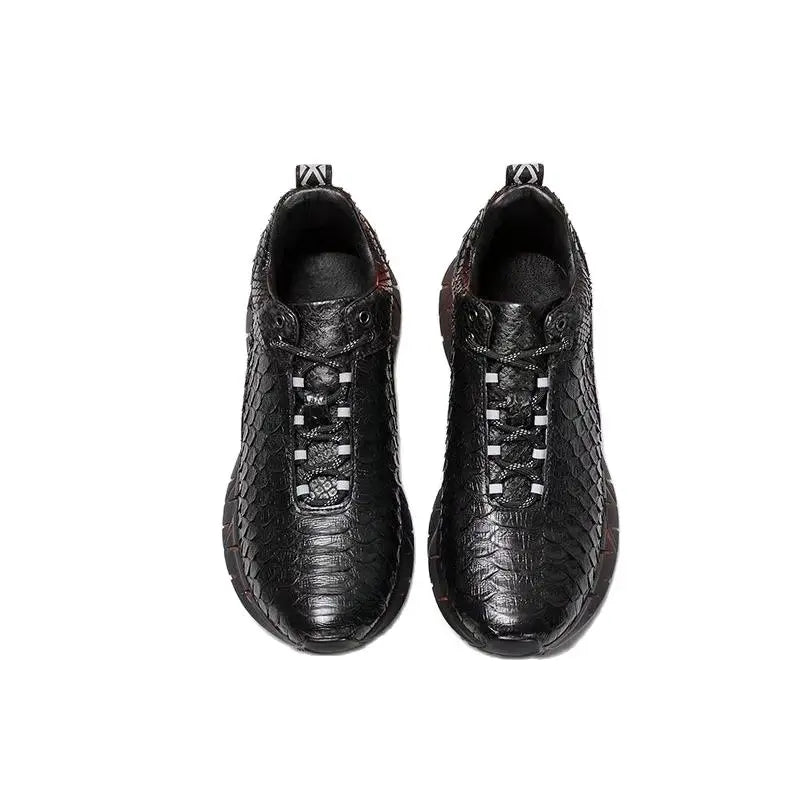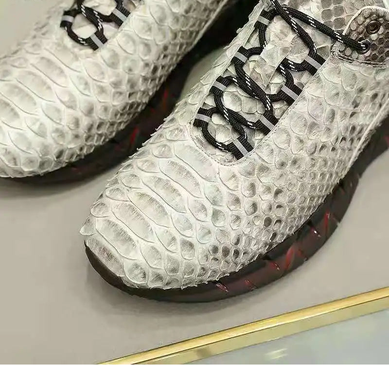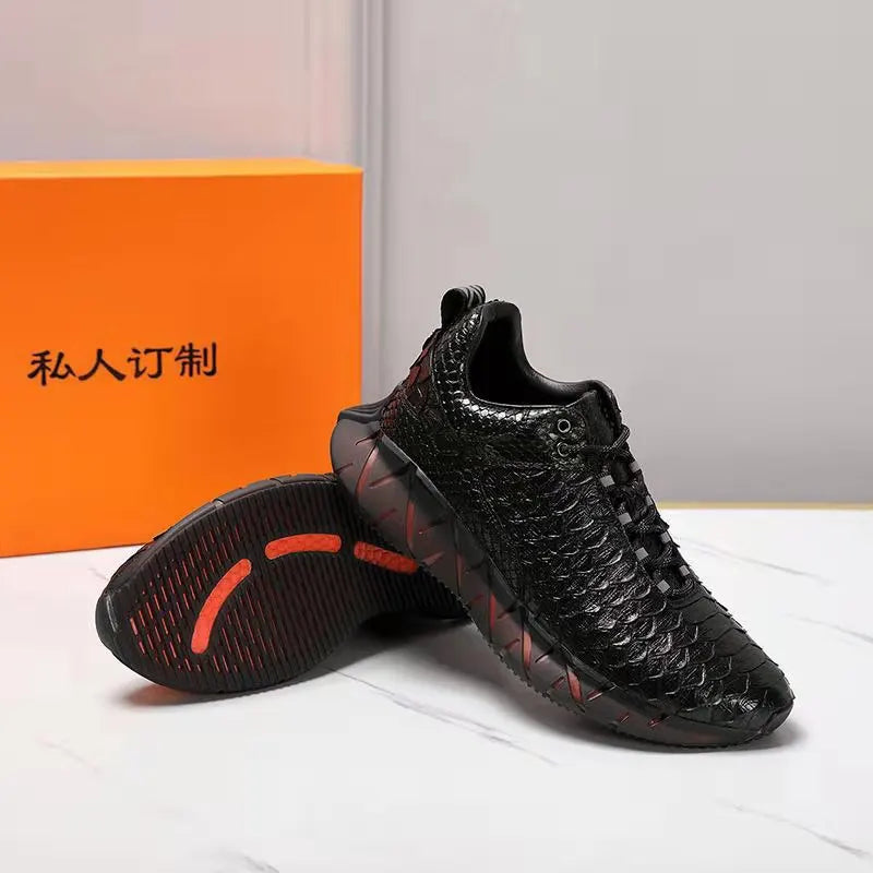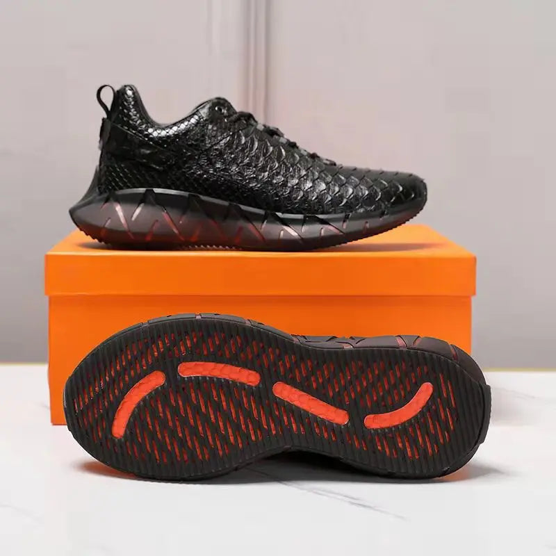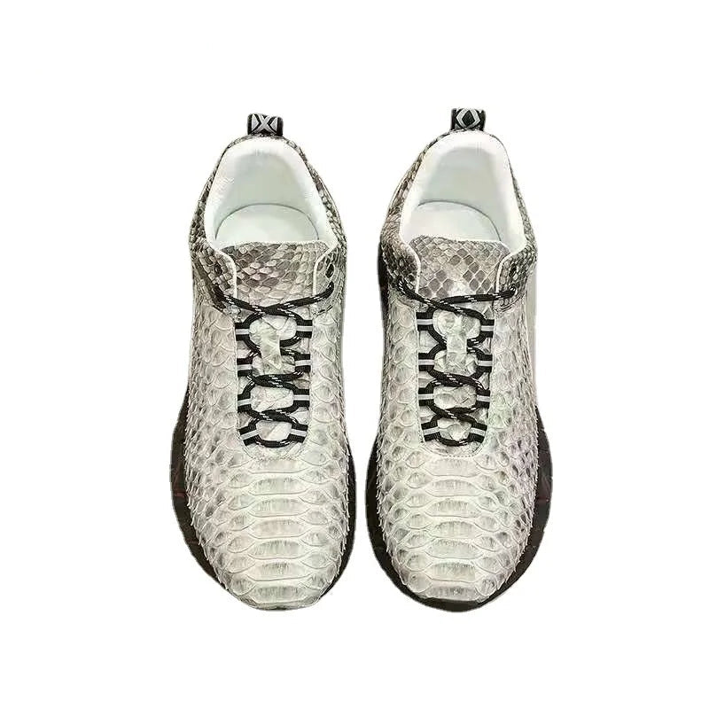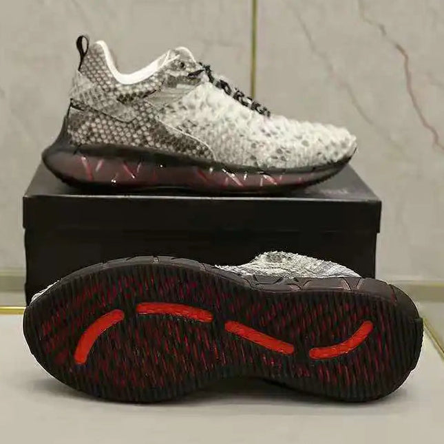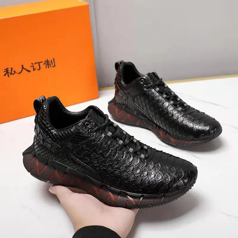 Casual Sports Fashion Snake Skin Lace Up Genuine Leather Sneakers for Men