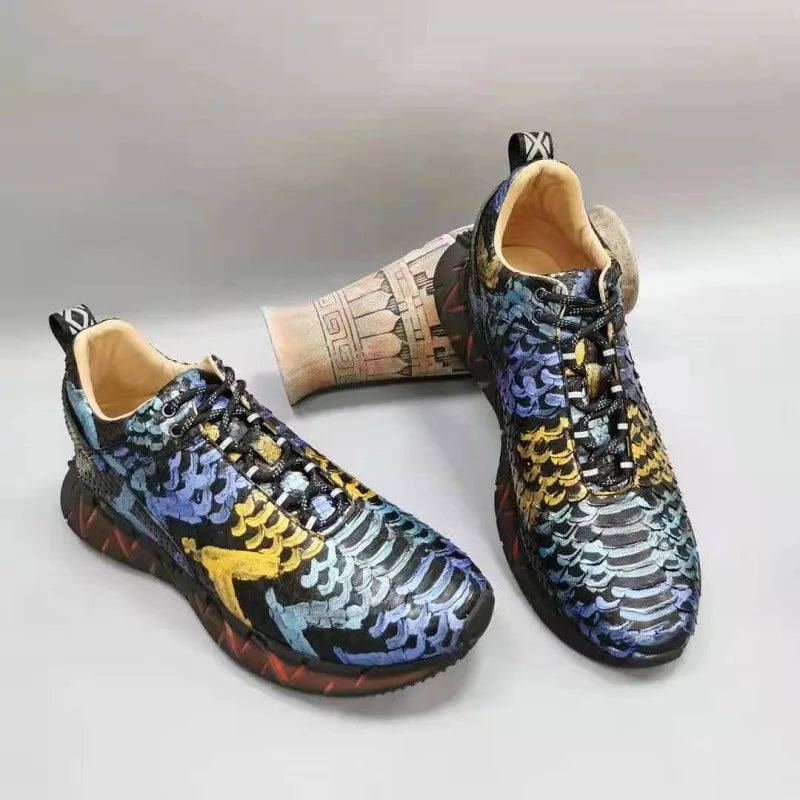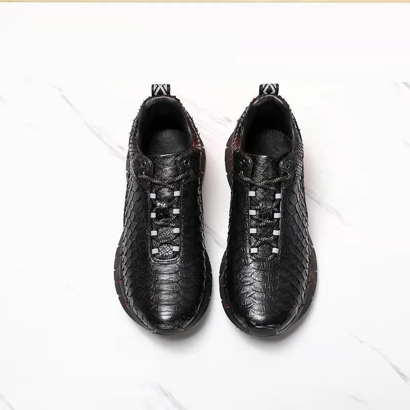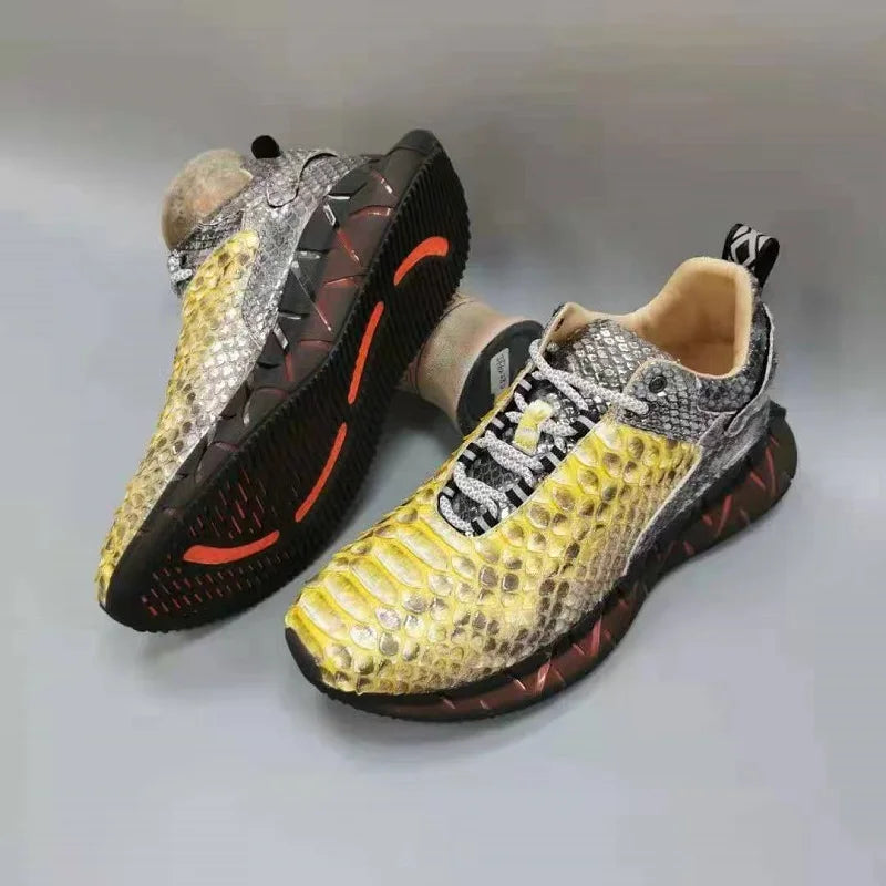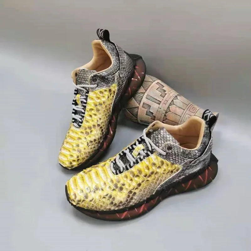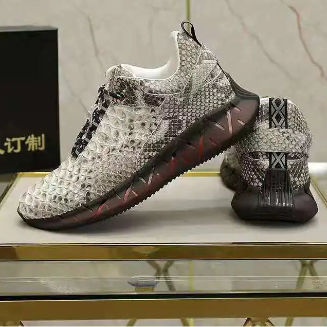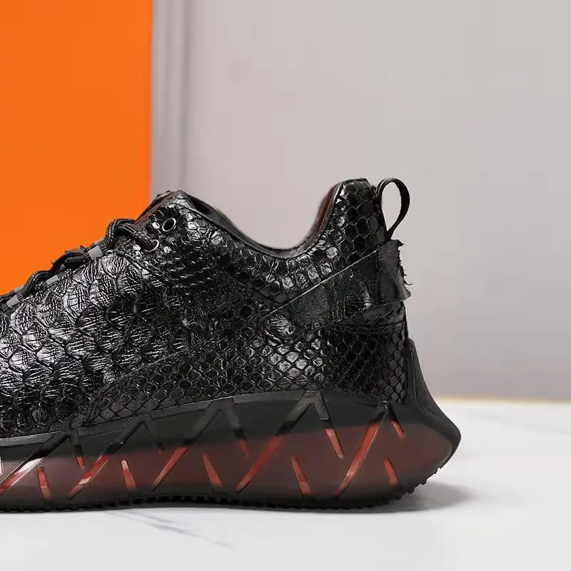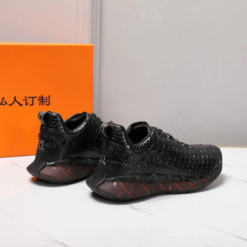 Casual Sports Fashion Snake Skin Lace Up Genuine Leather Sneakers for Men