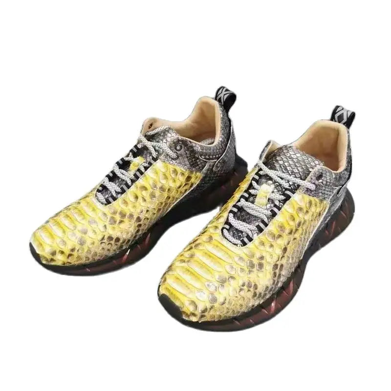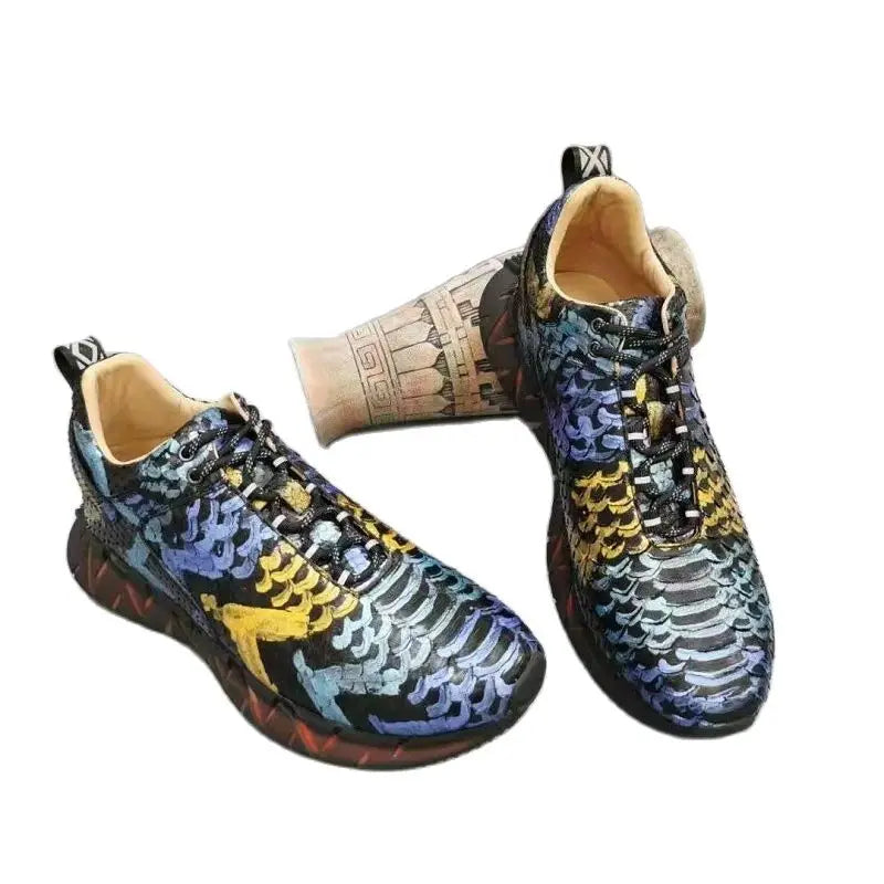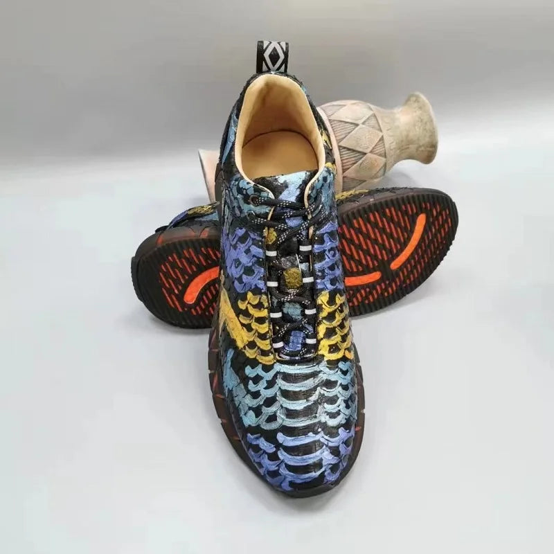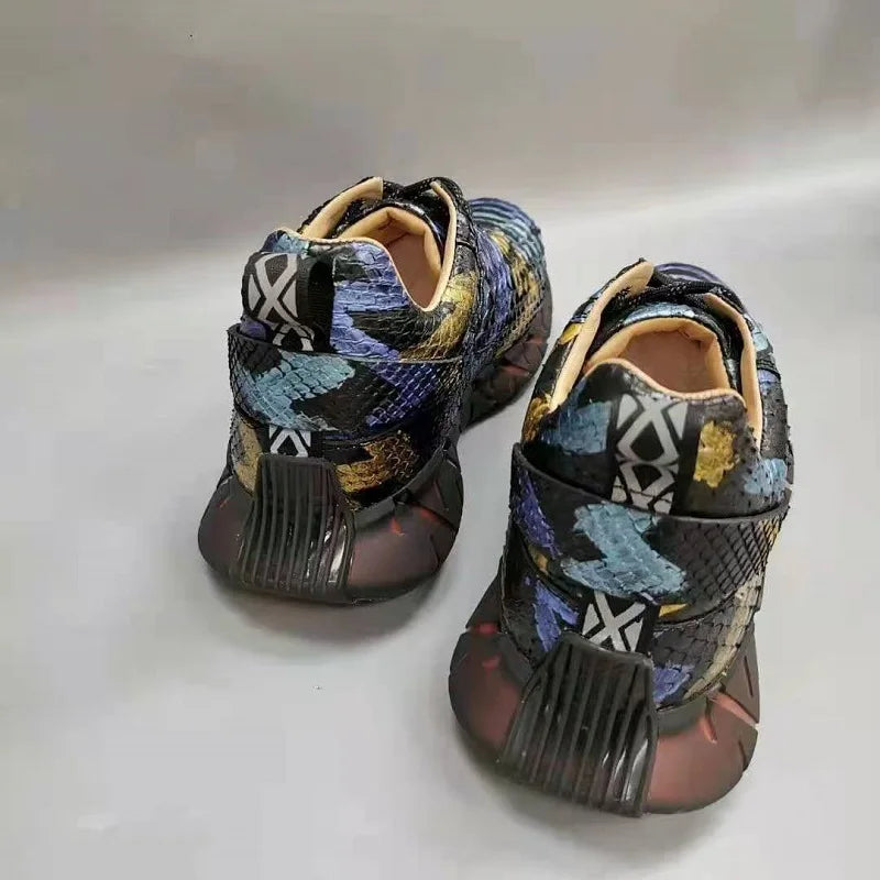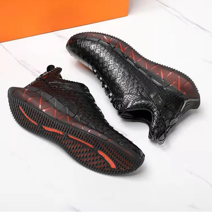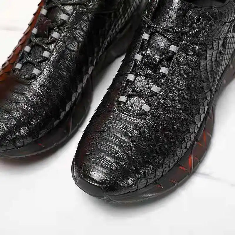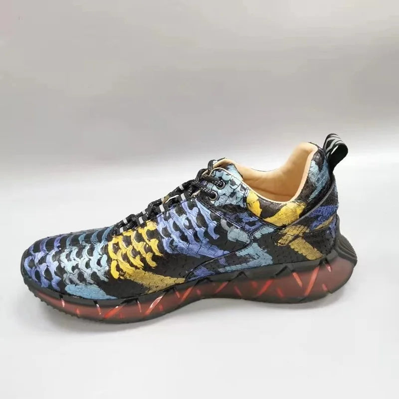 Casual Sports Fashion Snake Skin Lace Up Genuine Leather Sneakers for Men
