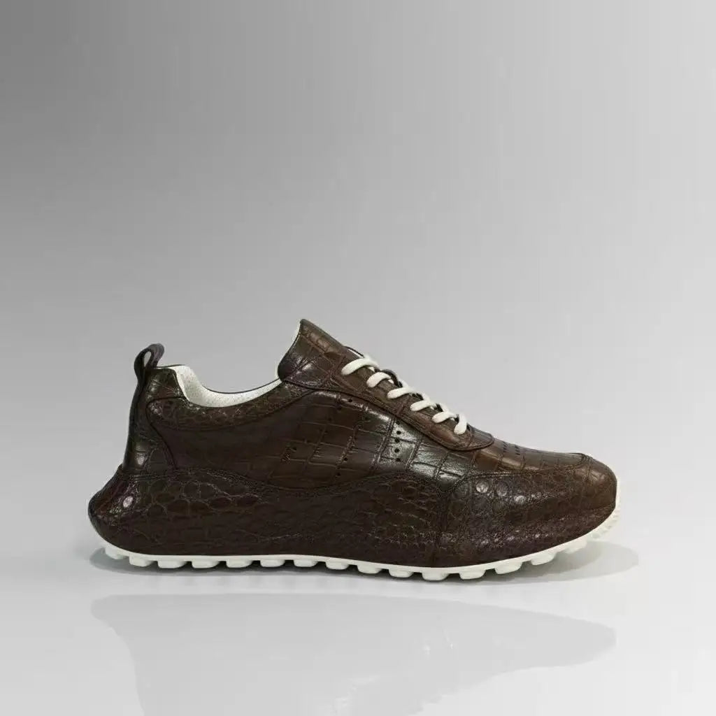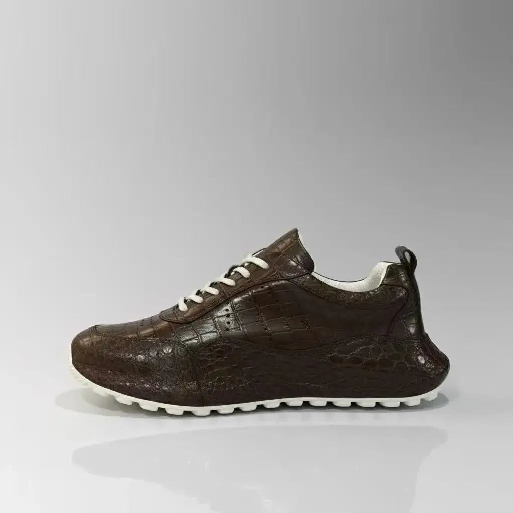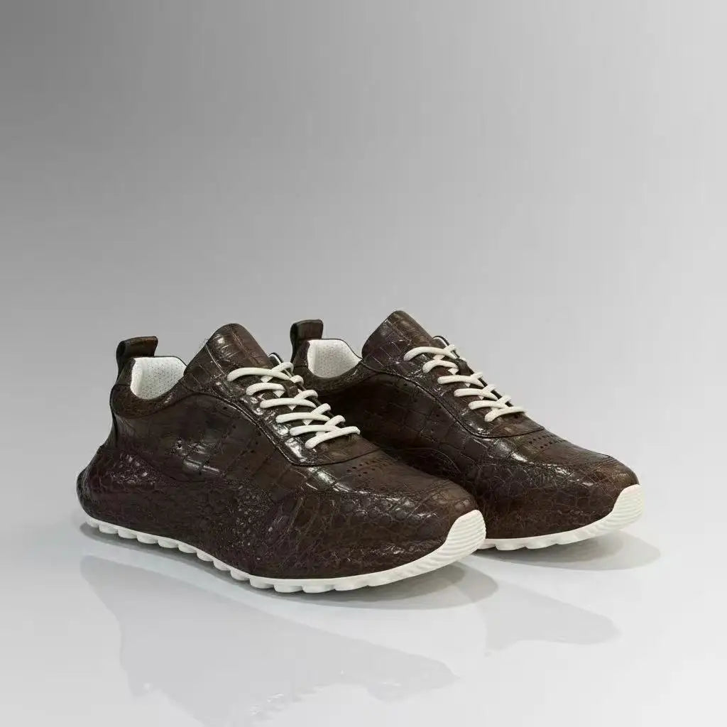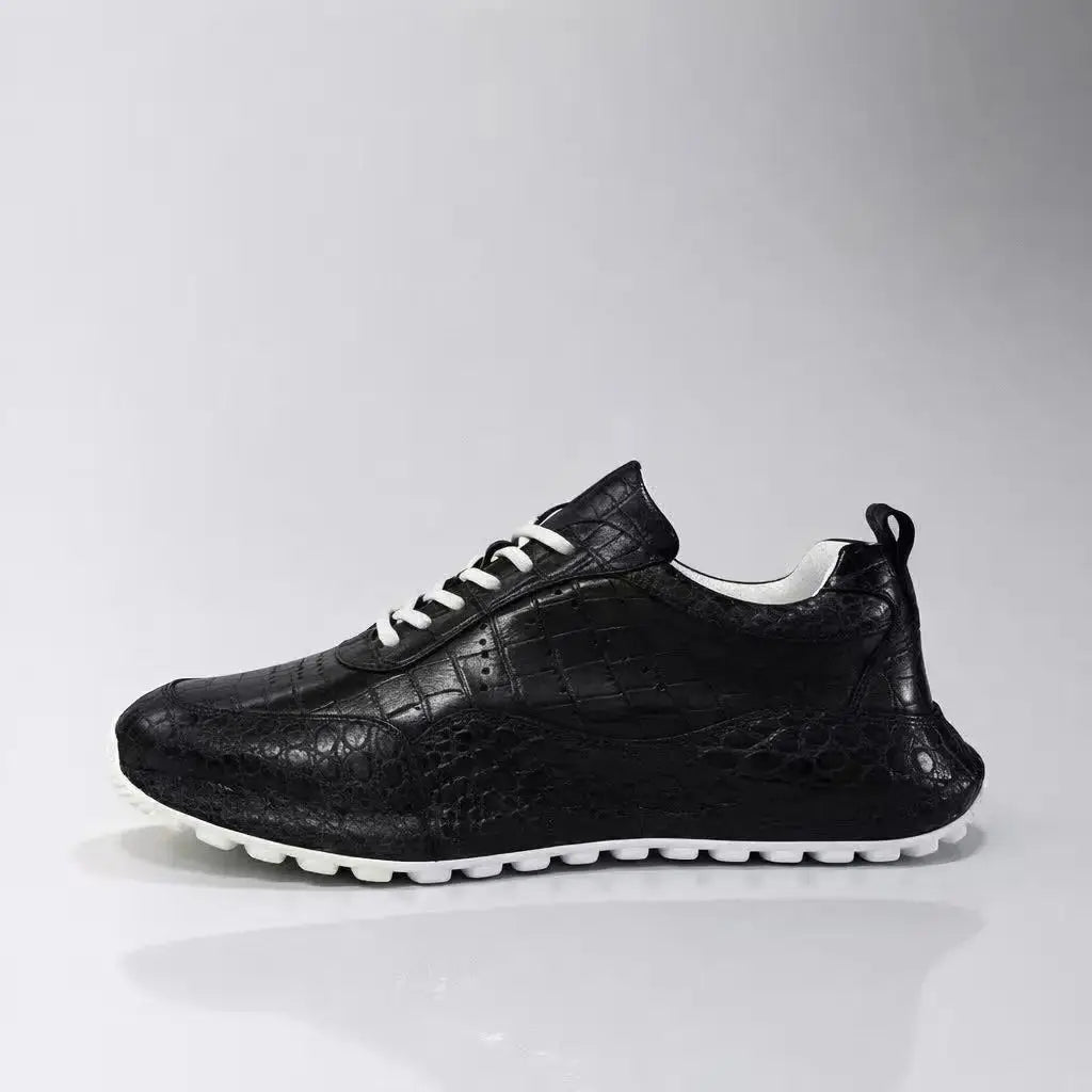 Crocodile Skin Solid Color White Lace Up Casual and Sports Sneakers