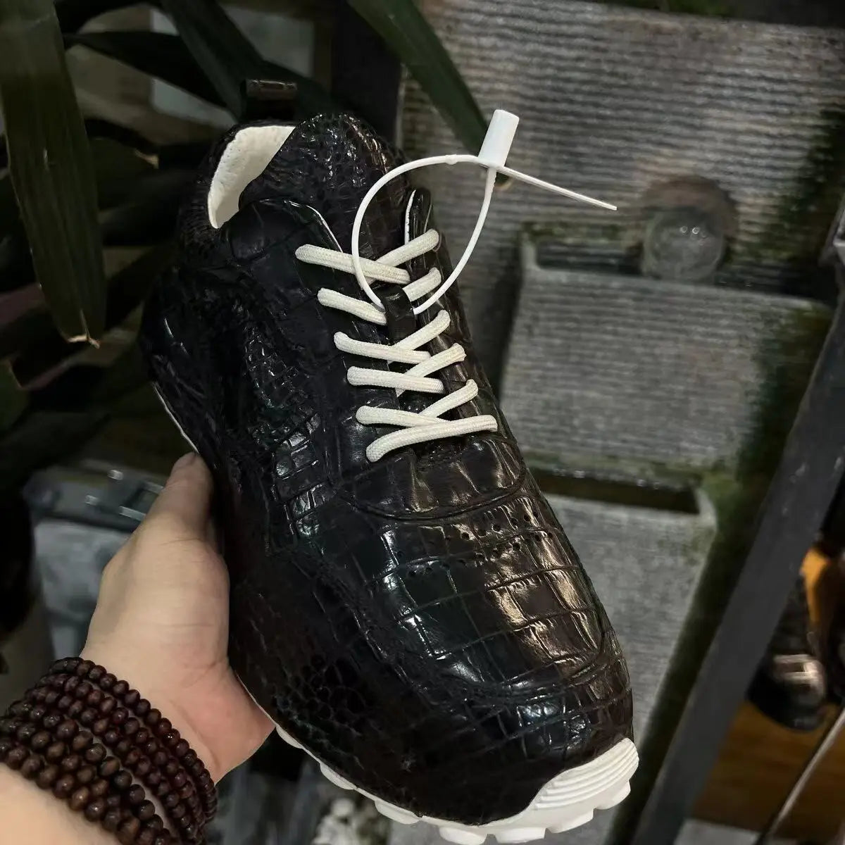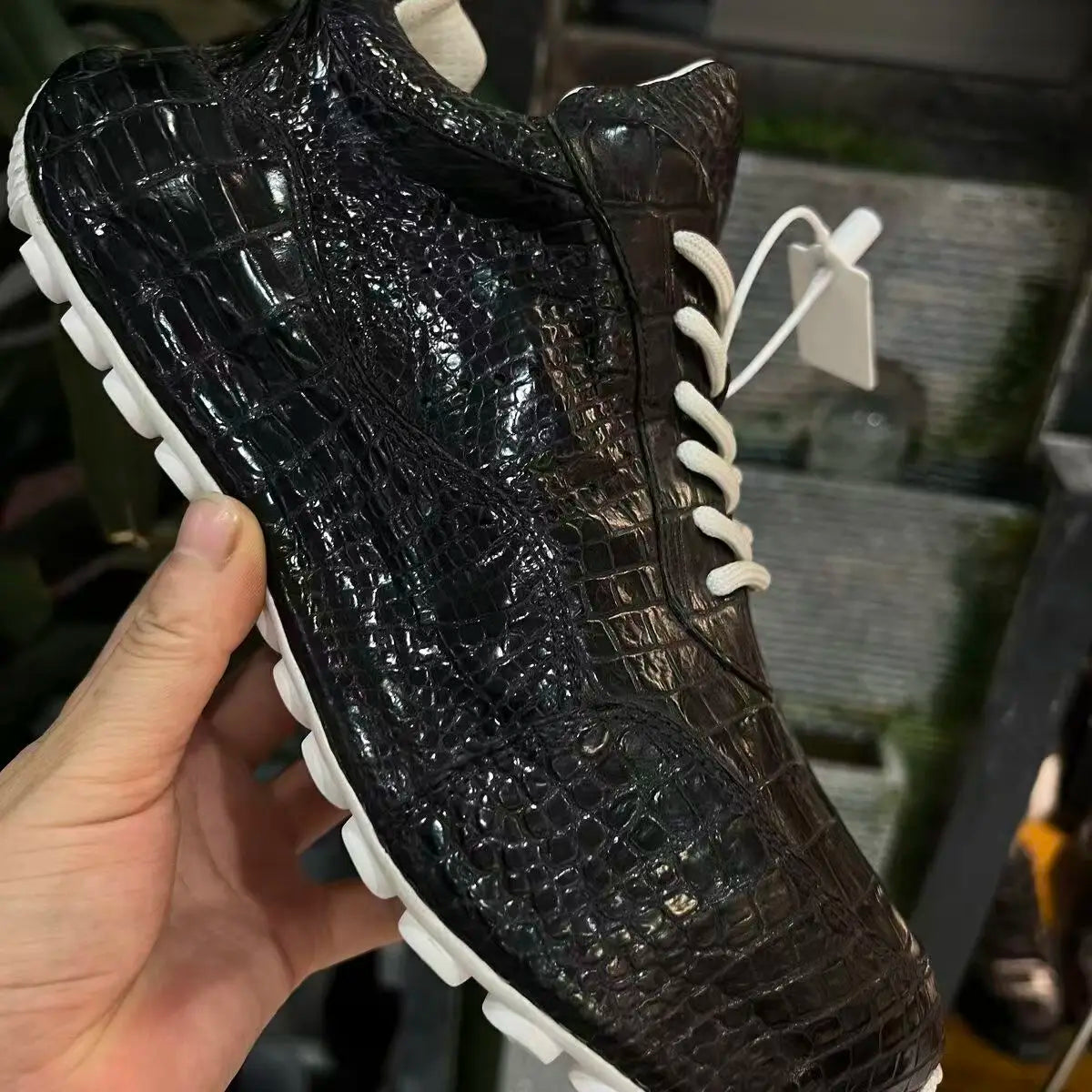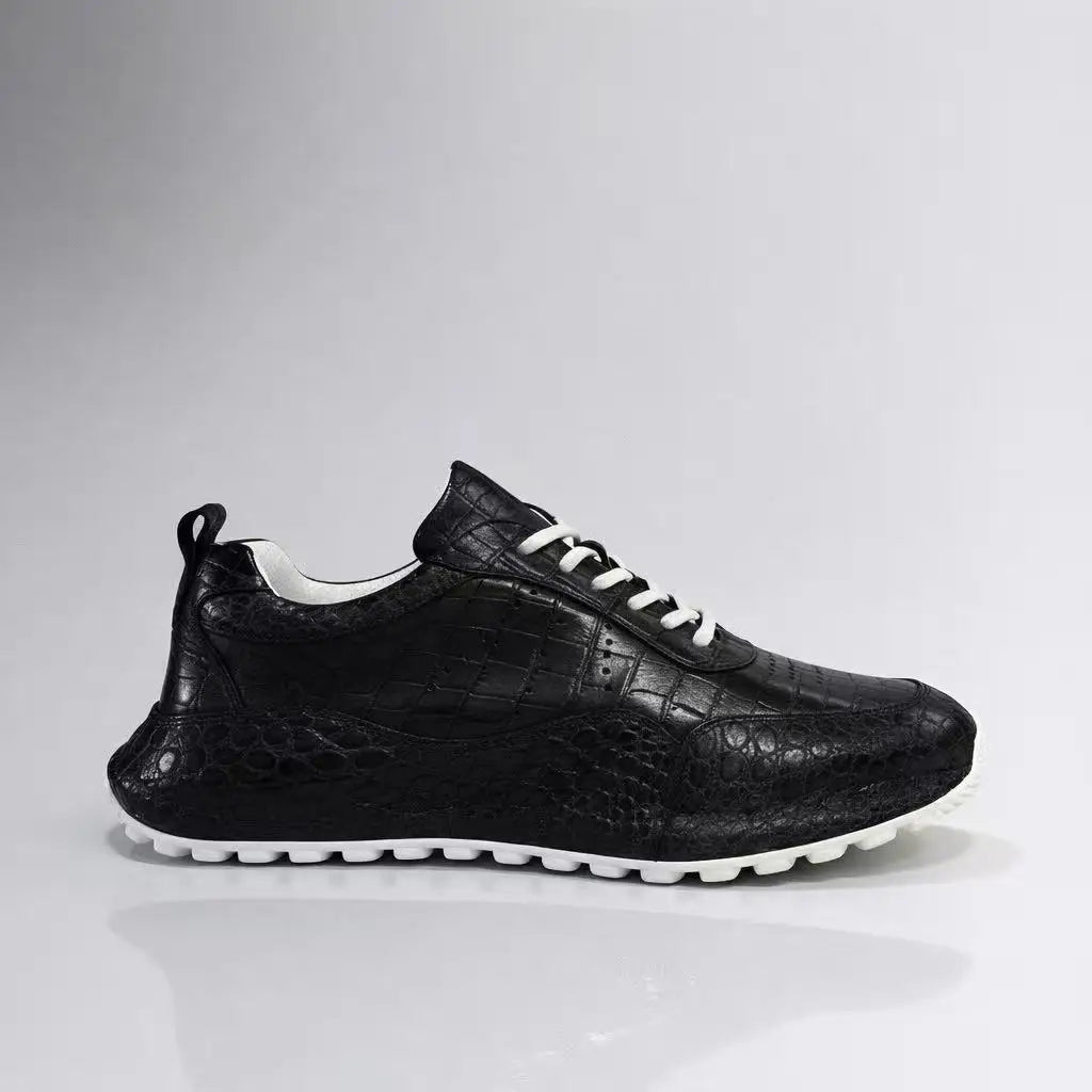 Crocodile Skin Solid Color White Lace Up Casual and Sports Sneakers