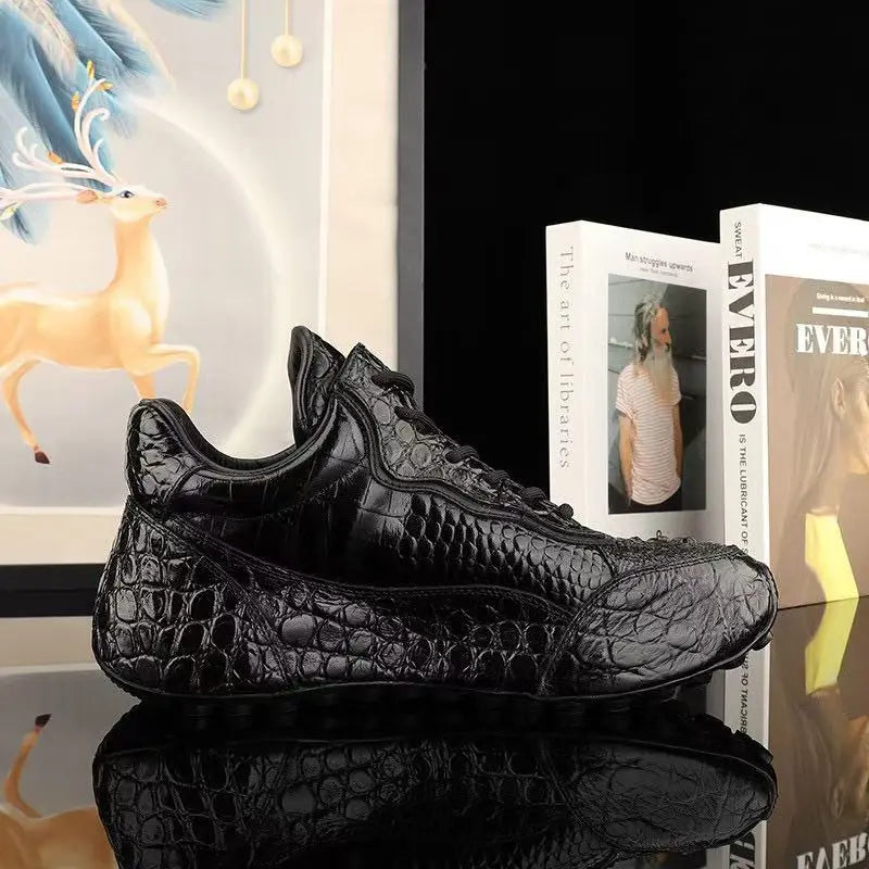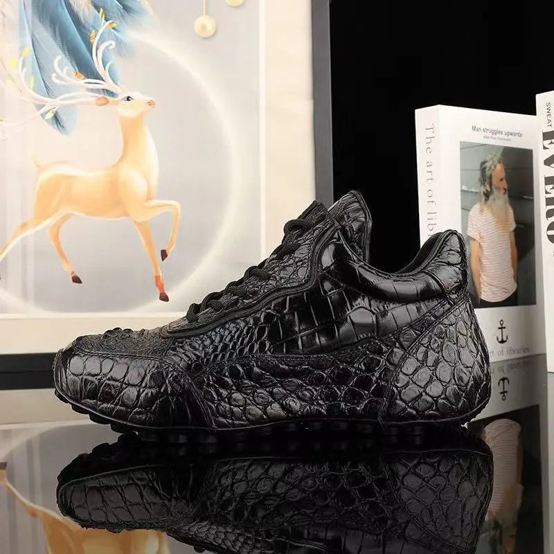 Crocodile Skin Textured Solid Color Casual Lace Up Sneakers for Men