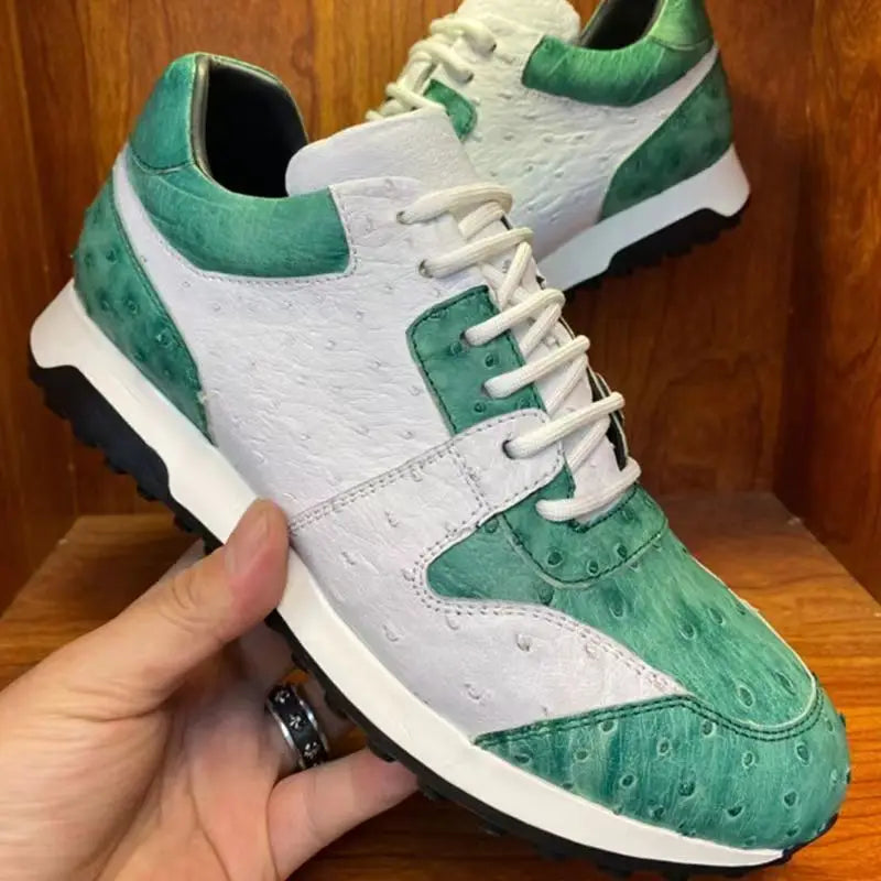 Men's Casual Fashion Ostrich Skin Leather Dual Color Patchwork Sneakers