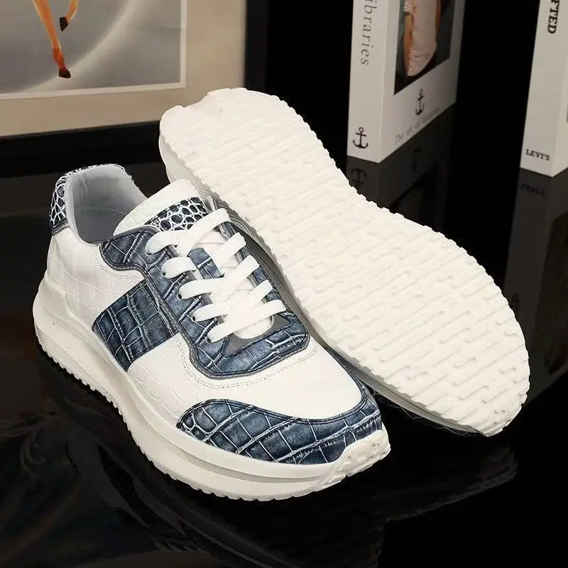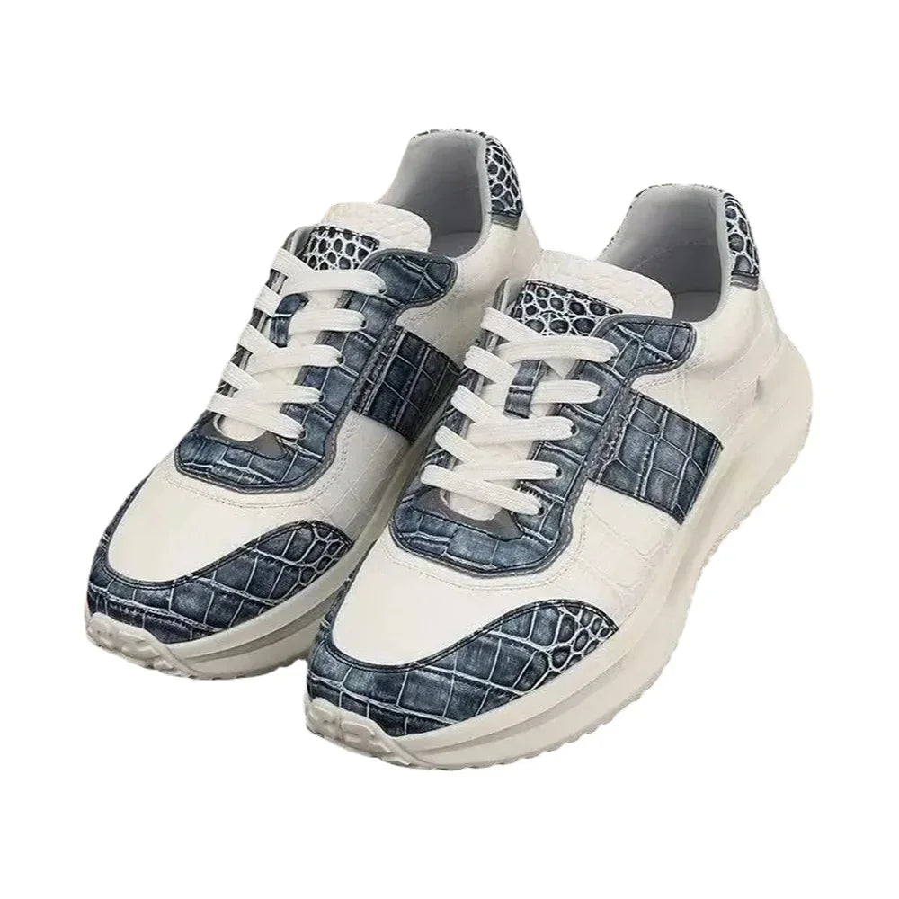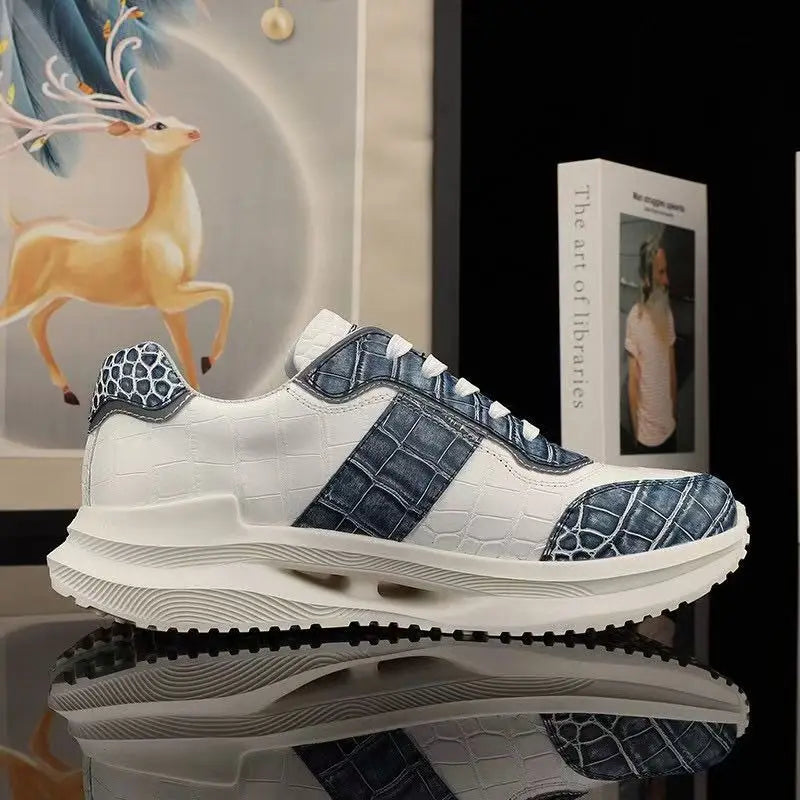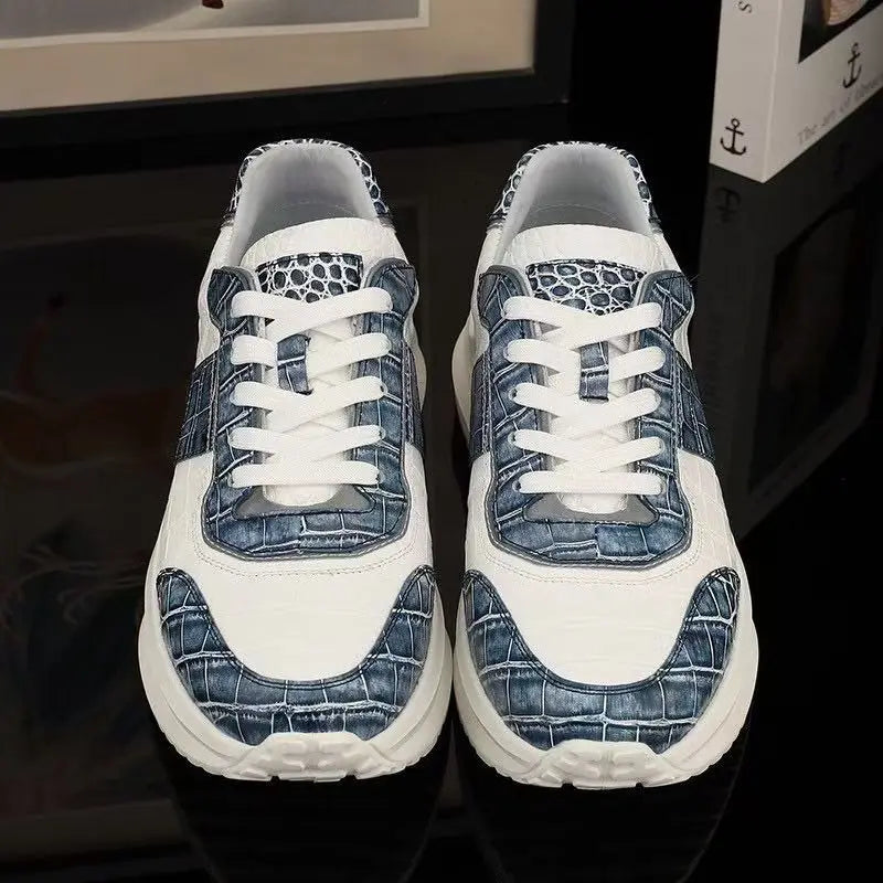 Men's Crocodile Skin and Ostrich Skin Patchwork Dual Color Casual Sneakers