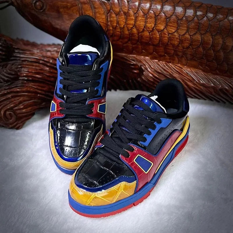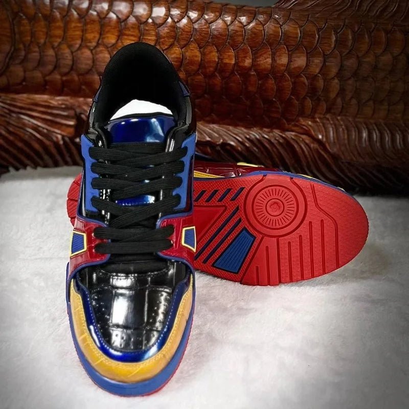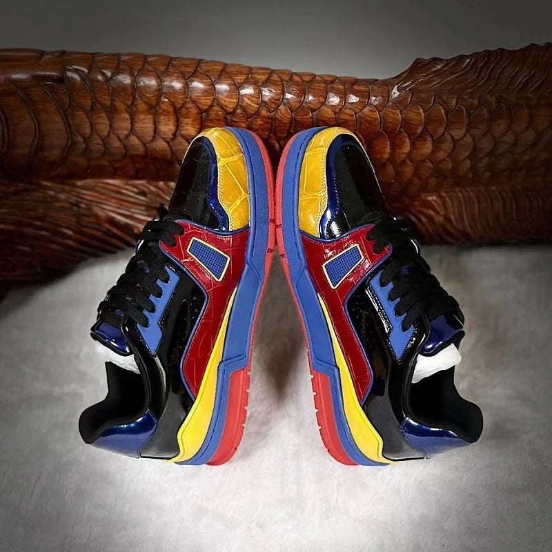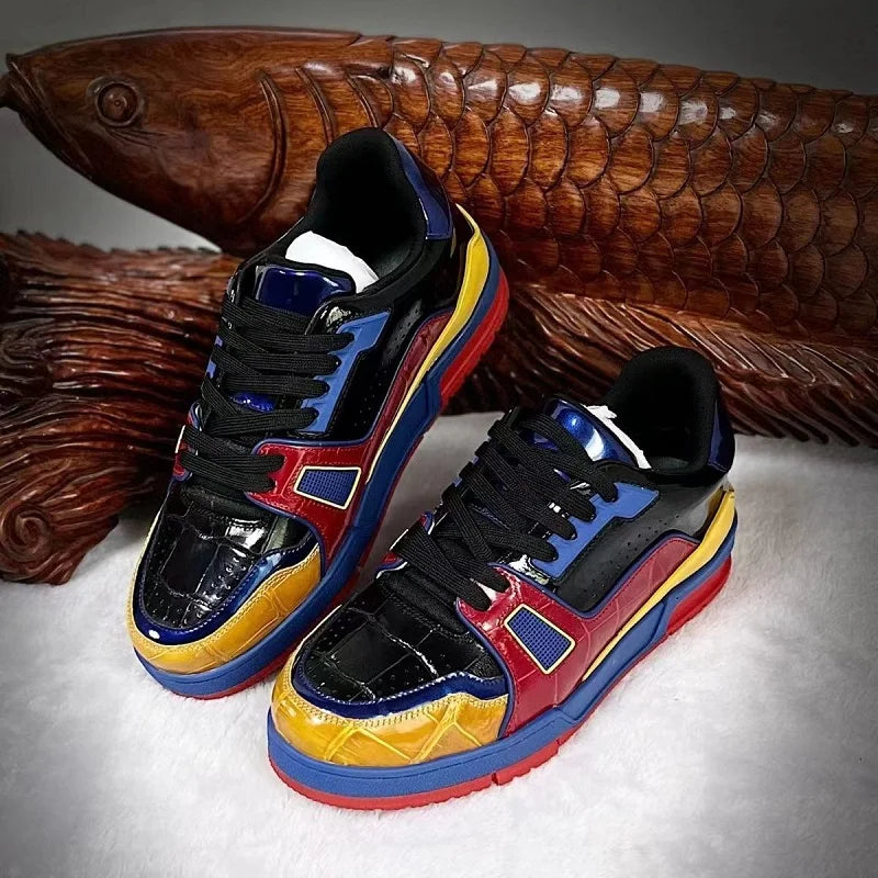 Men's Crocodile Skin Multicolor Lace Up Casual Sports Sneakers Shoes