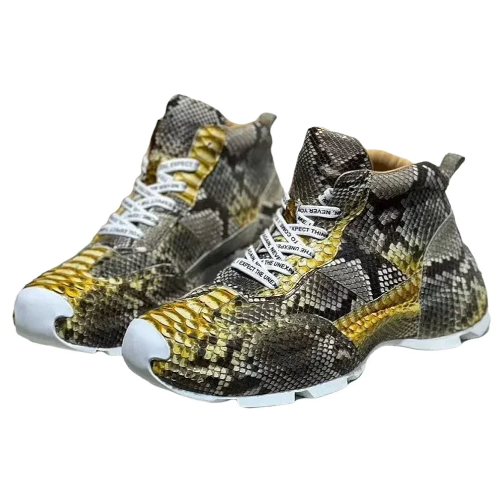 If you are looking for a stunning pair of men's sneakers, then this is for you. Designed with a genuine leather upper and rubber outsole, offering both durability and style, these sneakers have a lace-up closure that comes with letter-printed lace. The python skin pattern is notable and perfect to unleash your personal style. Your new wardrobe essential!