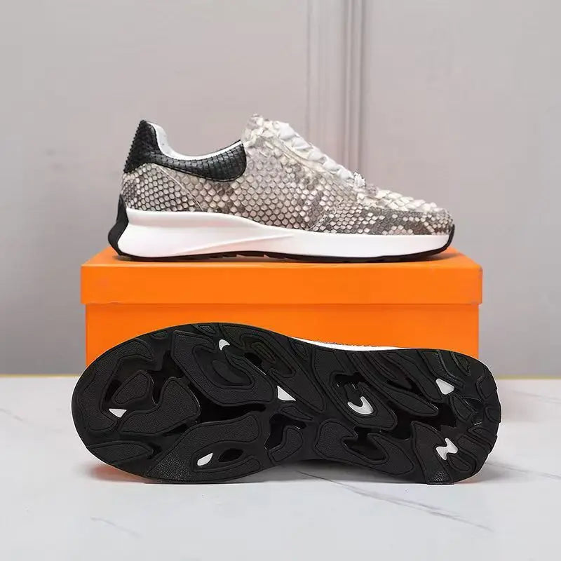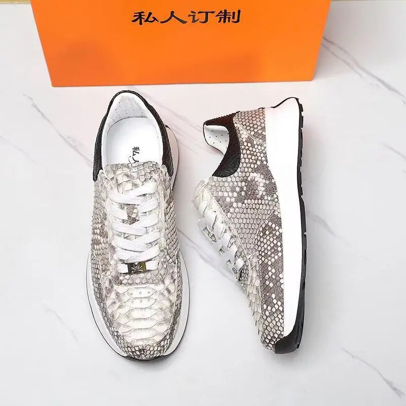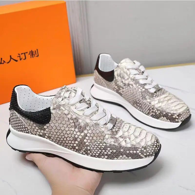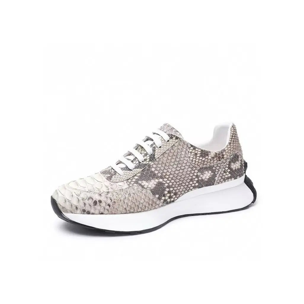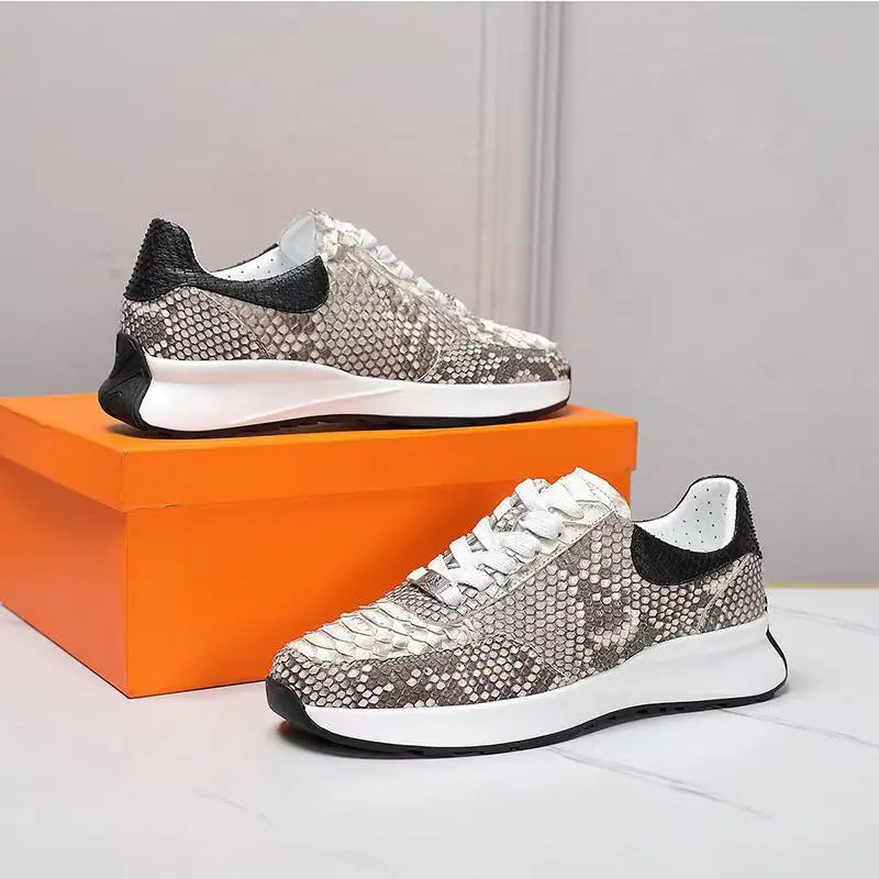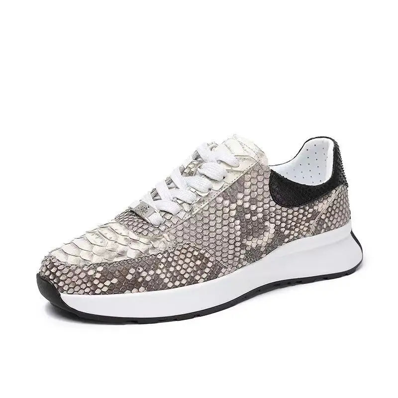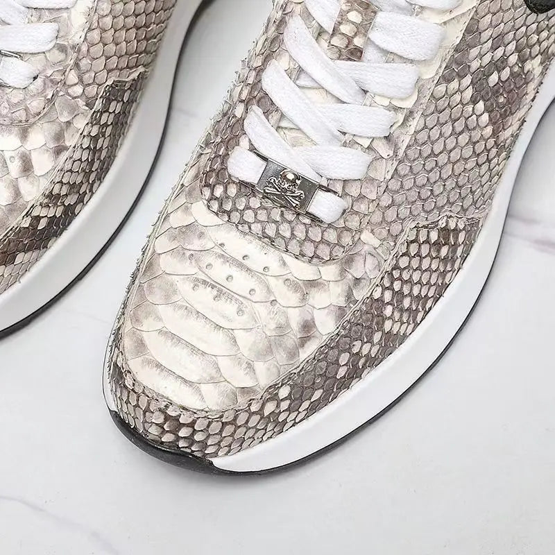 Men's Gray White Snake Skin Casual Sports Genuine Leather Sneakers