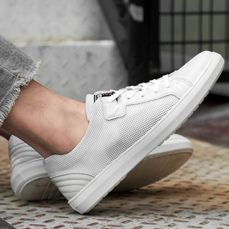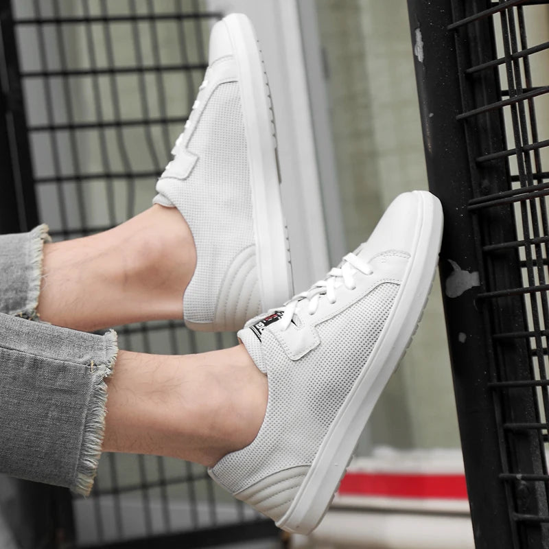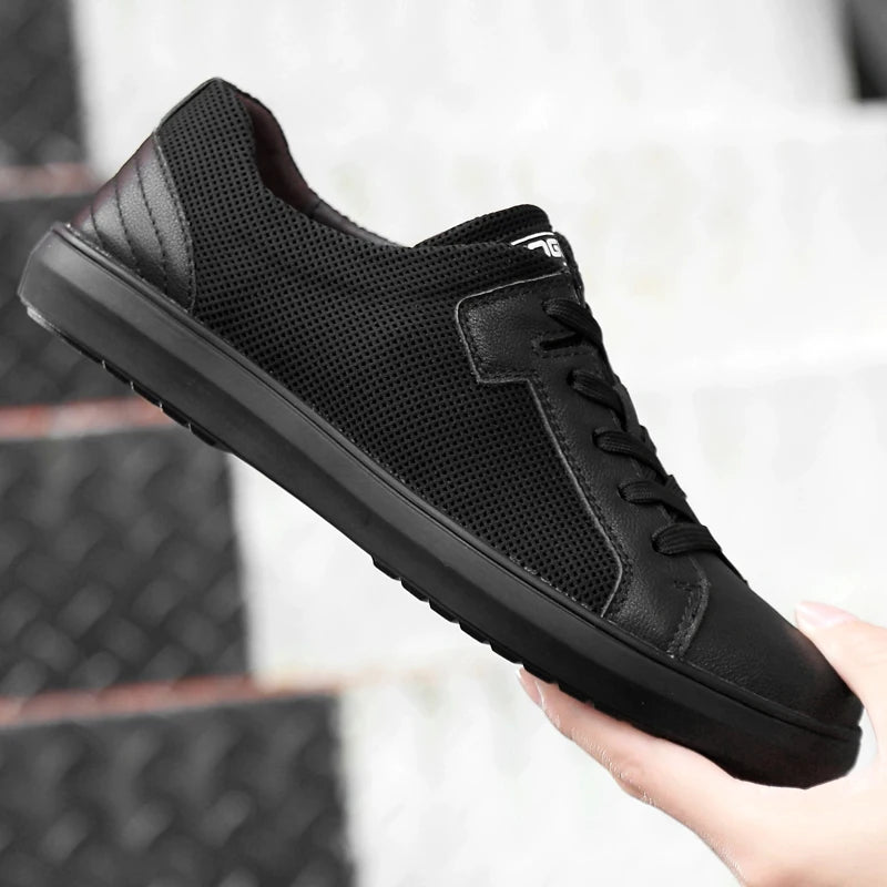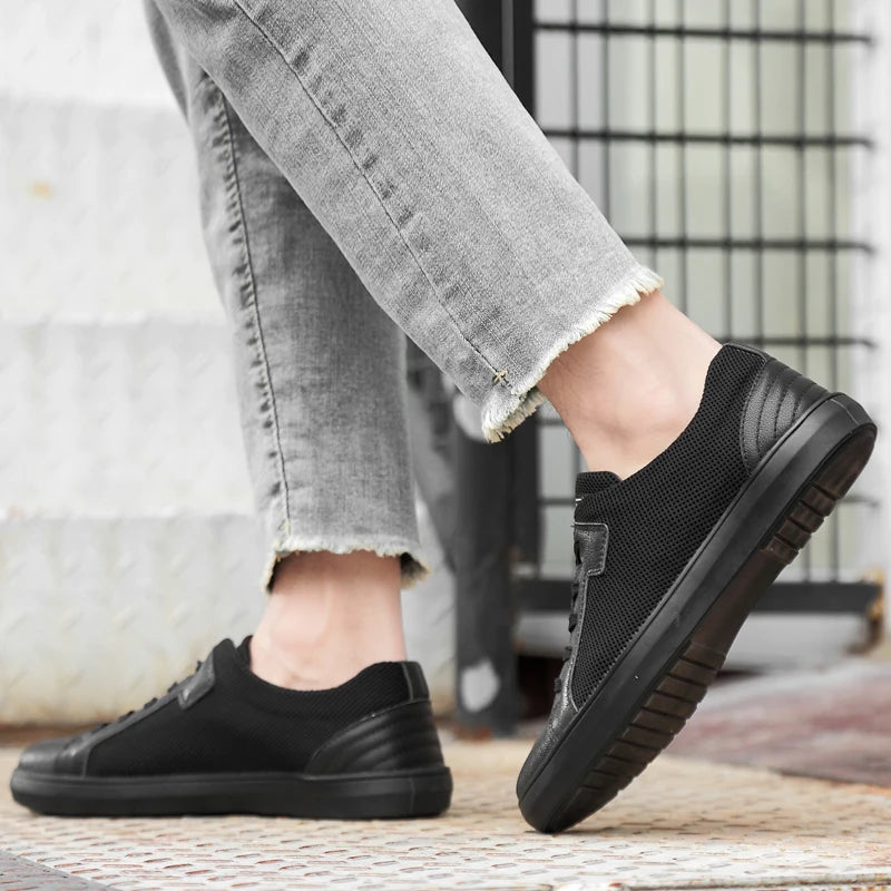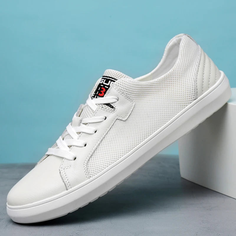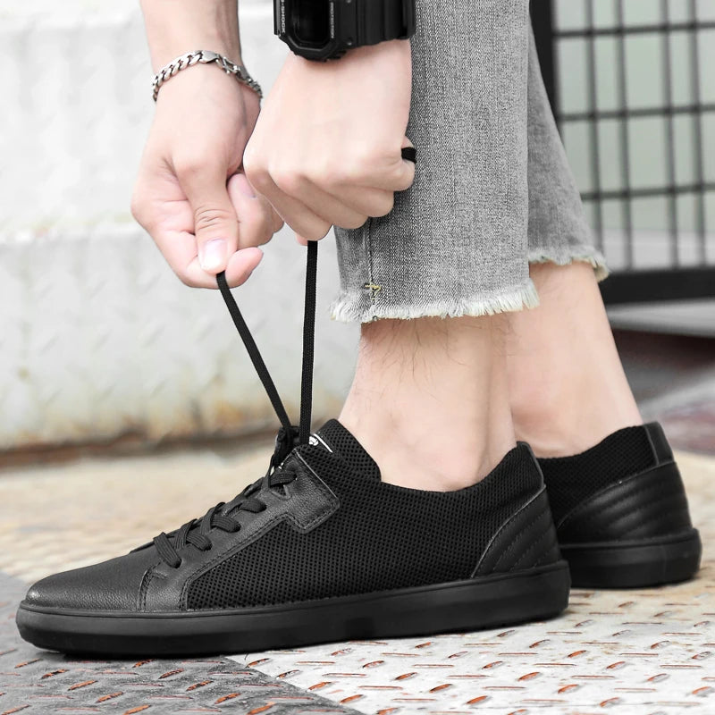 Men's Handmade Genuine Leather Mesh Breathable Lace-up Antiskid Casual Sneakers