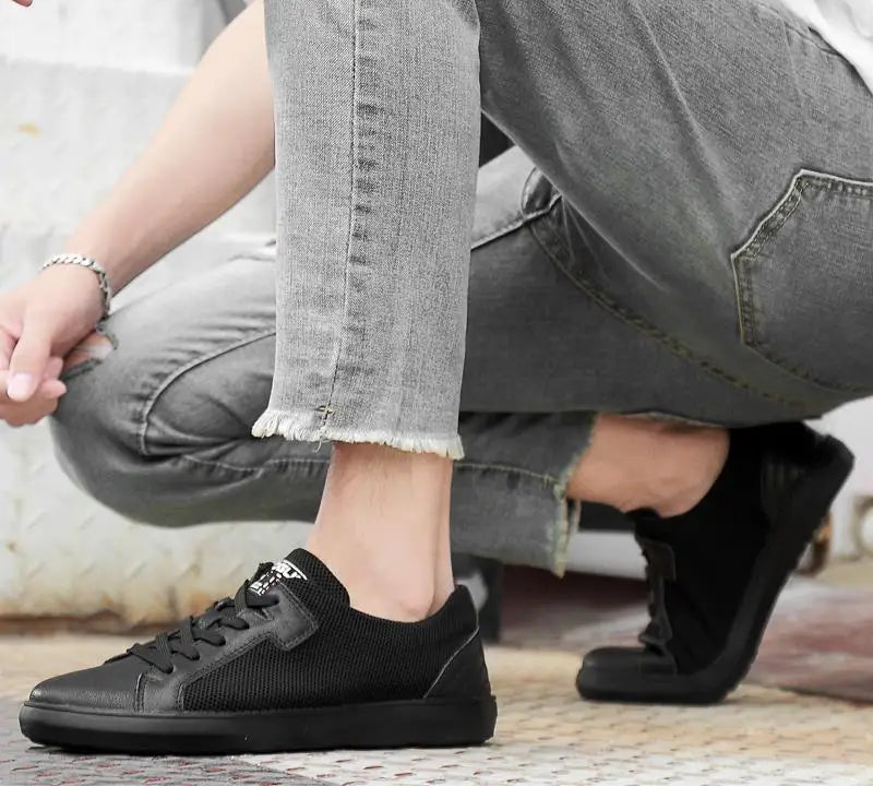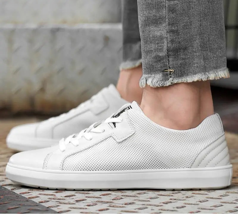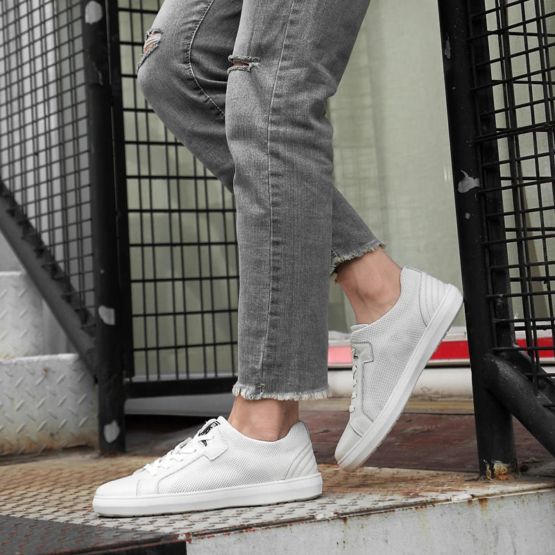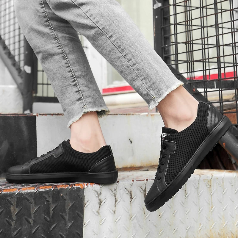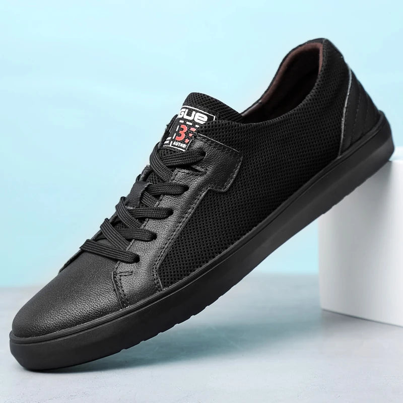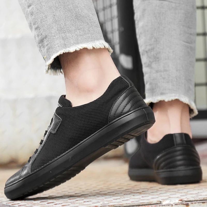 Men's Handmade Genuine Leather Mesh Breathable Lace-up Antiskid Casual Sneakers
