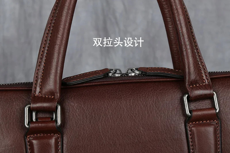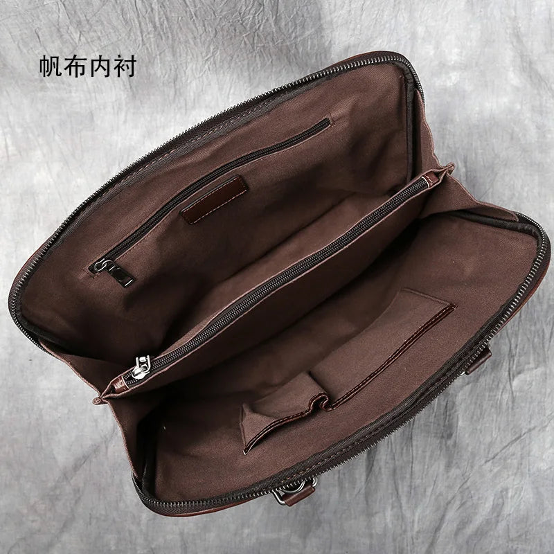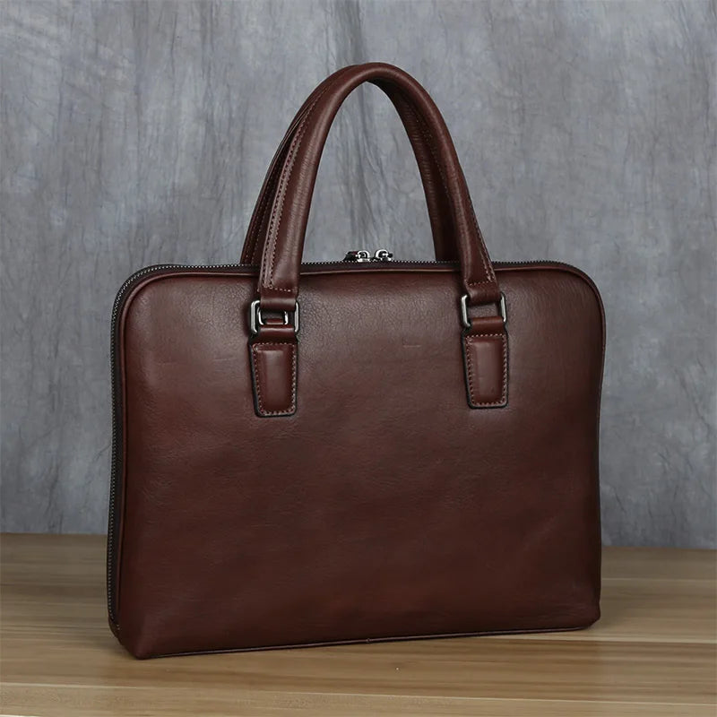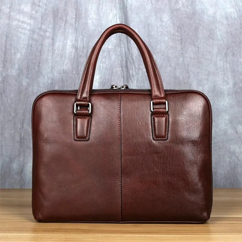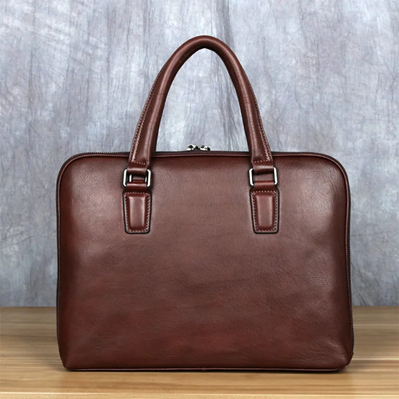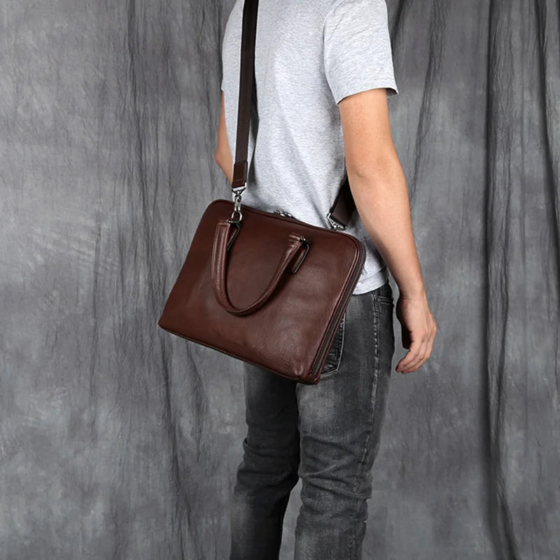 Business Casual Vintage Style Men's Leather Briefcase Messenger 14 Inch Laptop Bag
