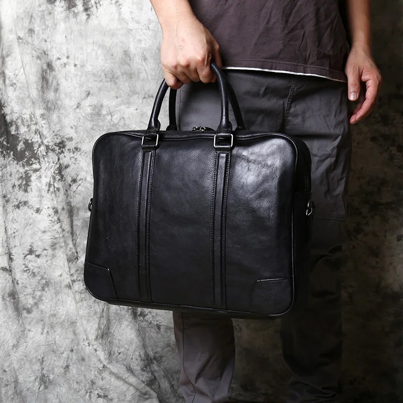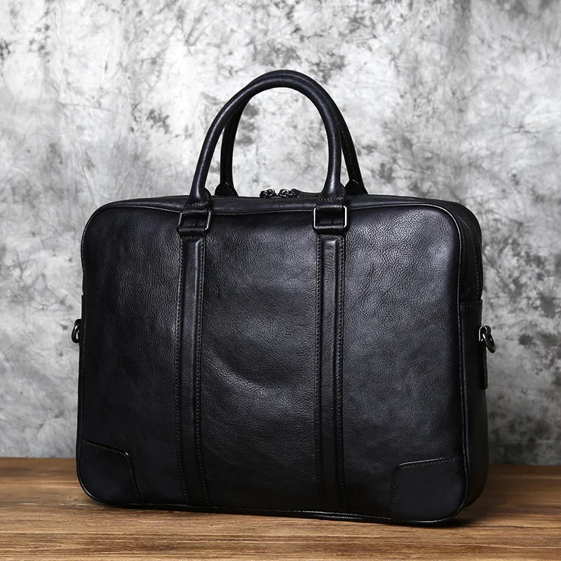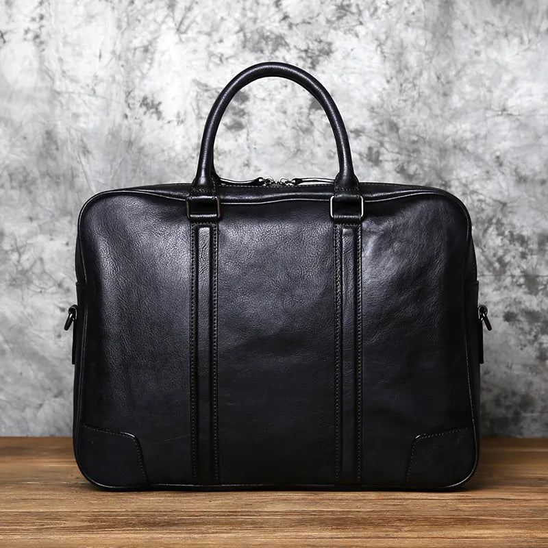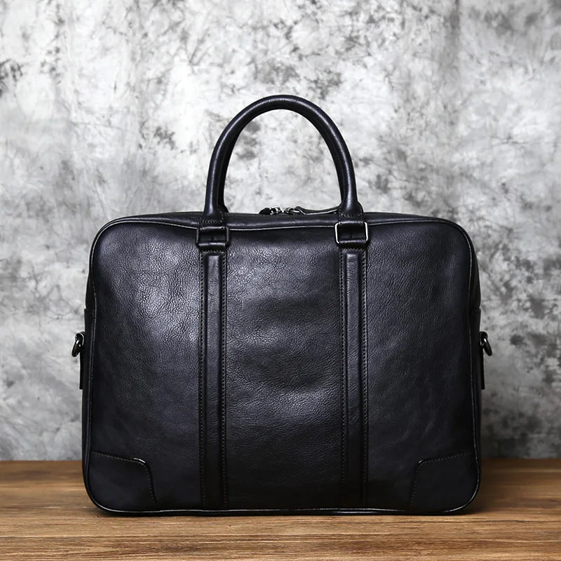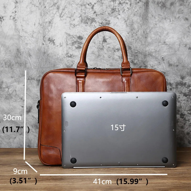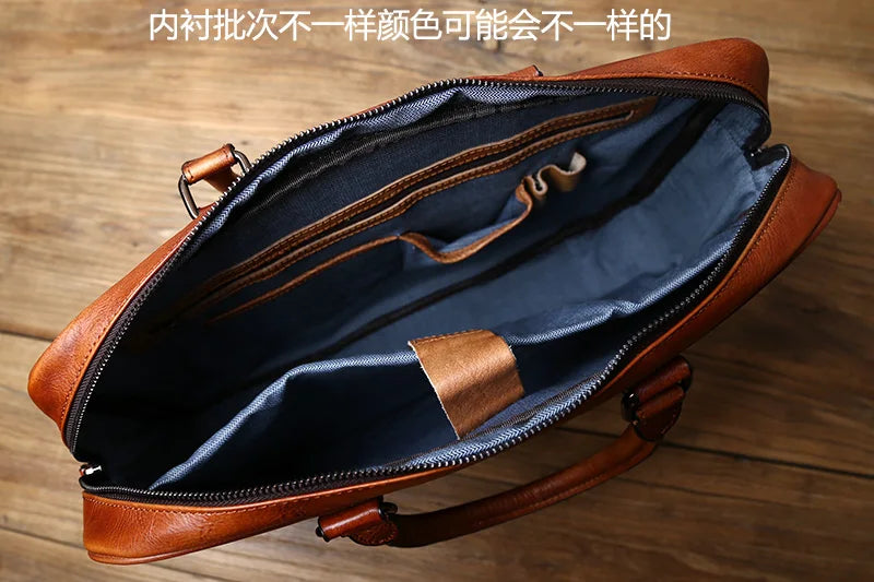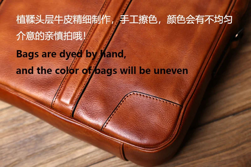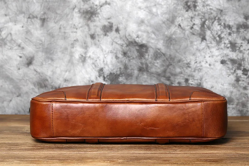 Handmade Retro Business Vegetable Tanned Leather Men's Computer Briefcase Handbag