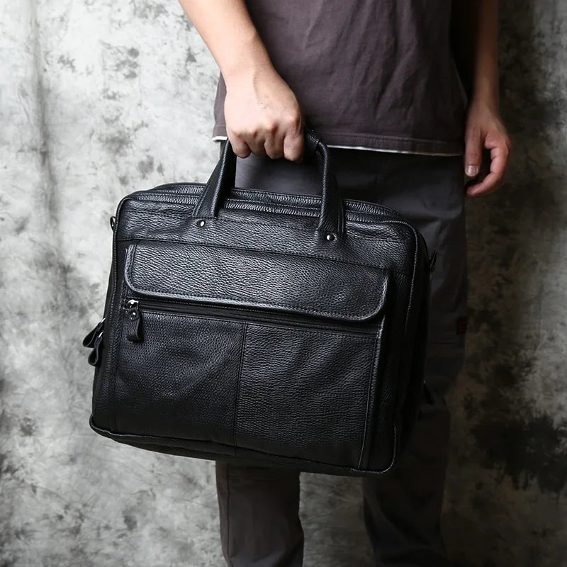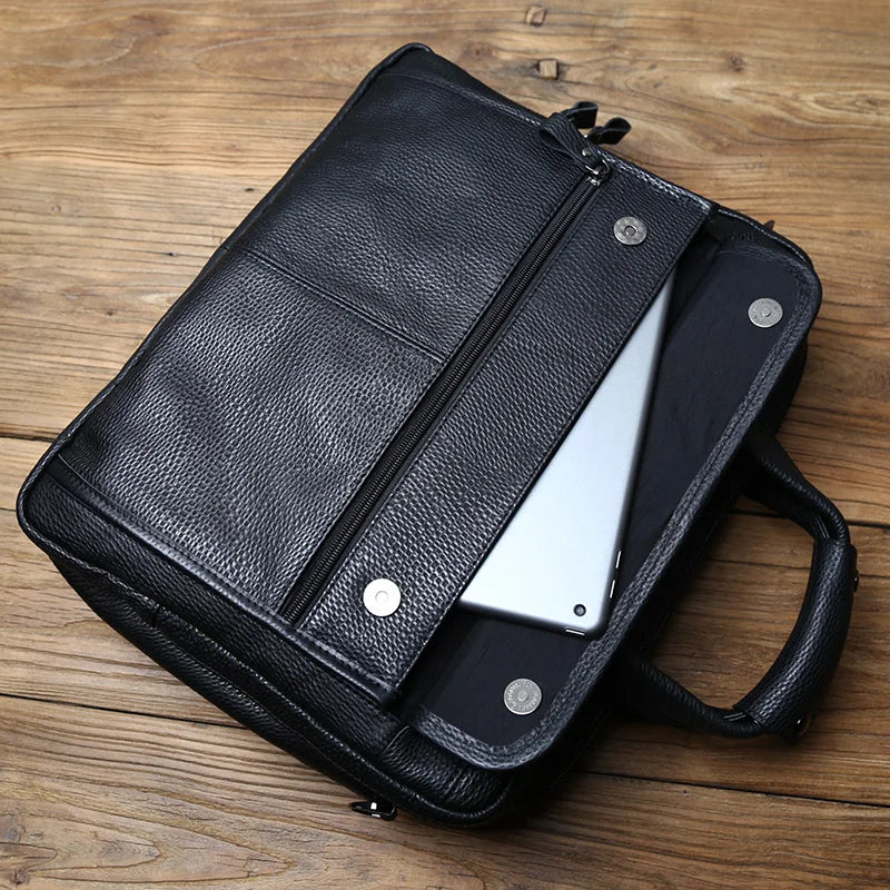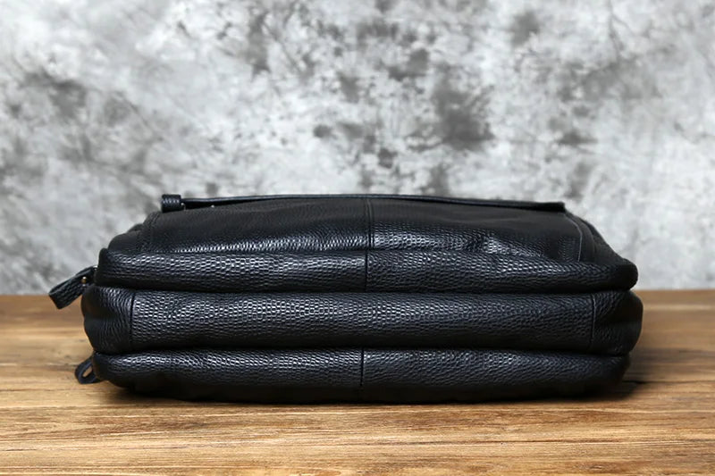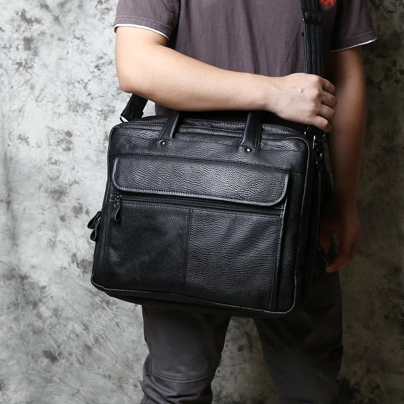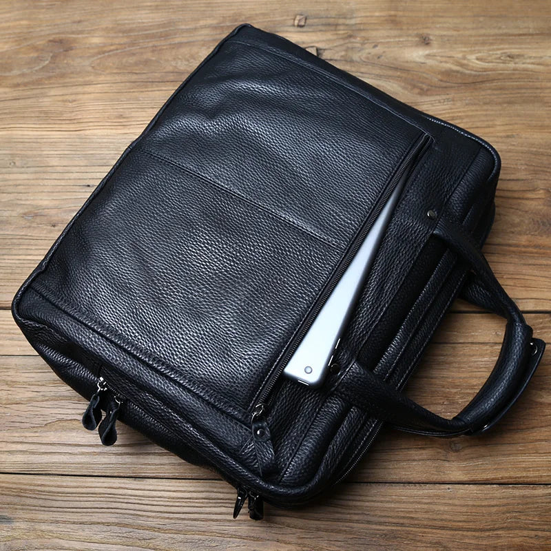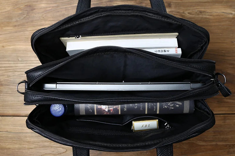 Men's Business Casual Top Layer Cowhide Briefcase Messenger Bag for 15 Inch Laptop