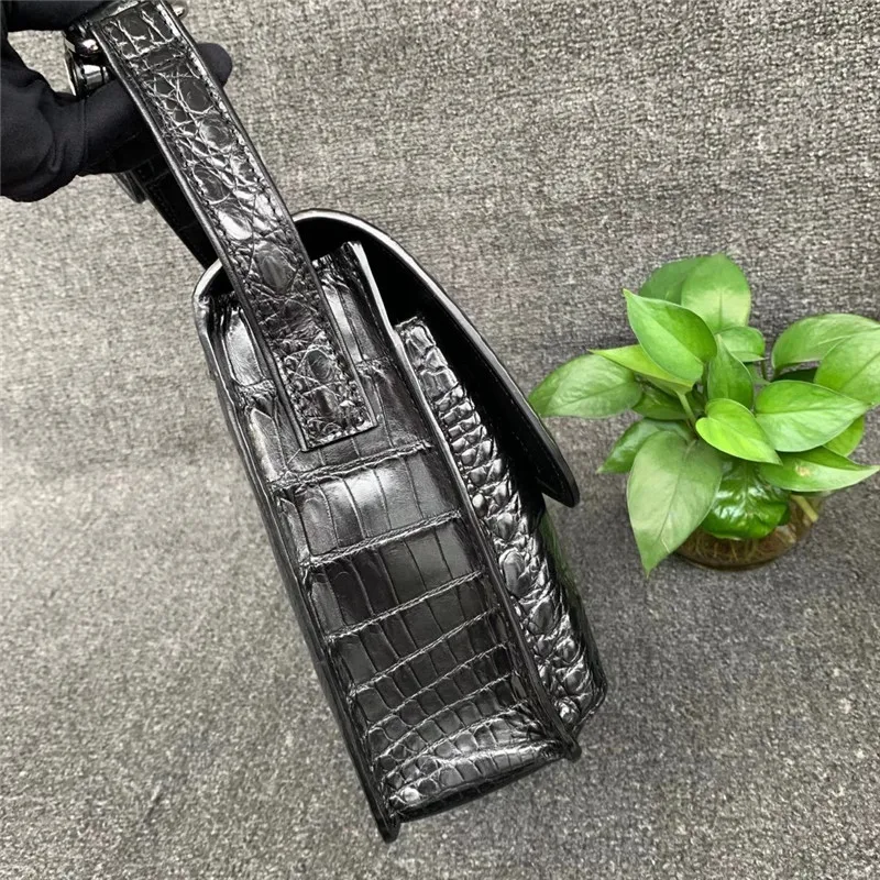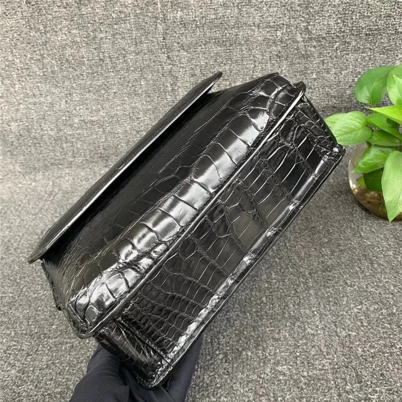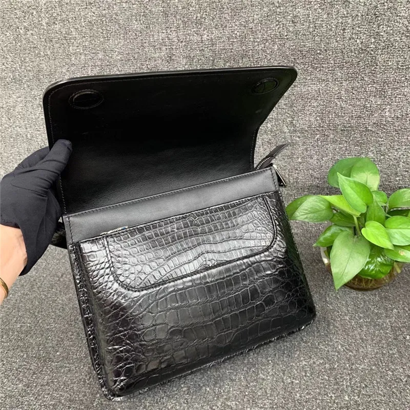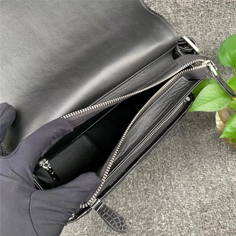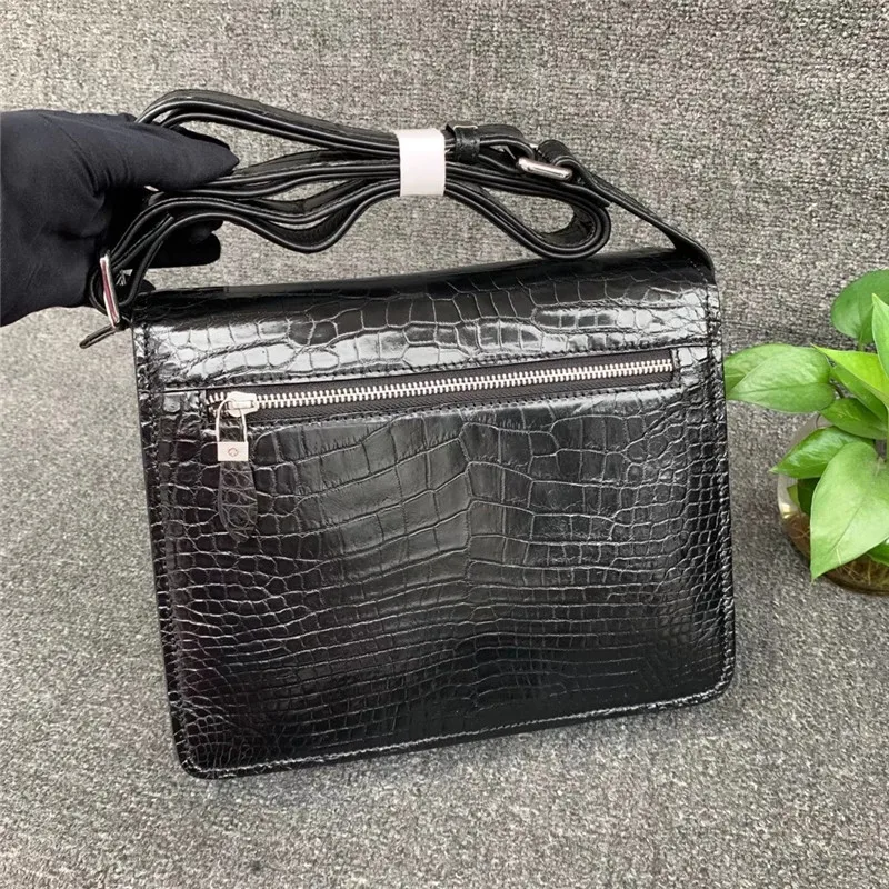 Genuine Crocodile Belly Skin Male Small Casual Flap Purse Men Crossbody Shoulder Bag Exotic True Alligator Leather Messenger Bag