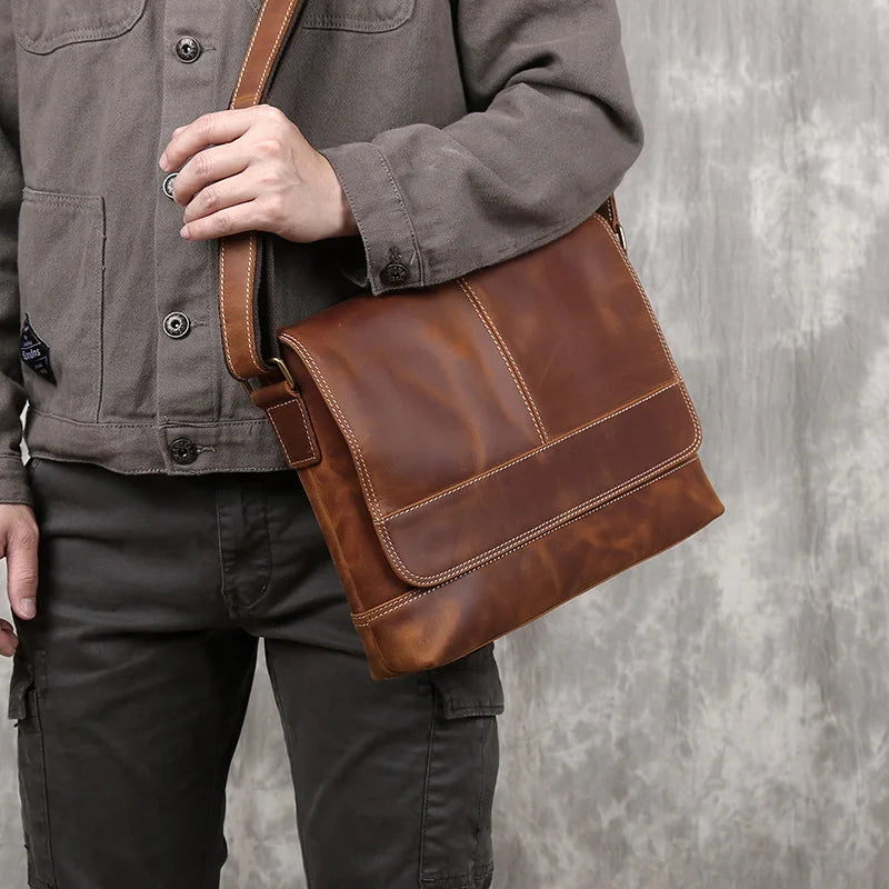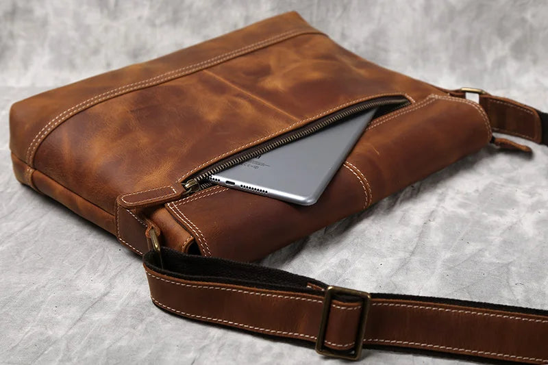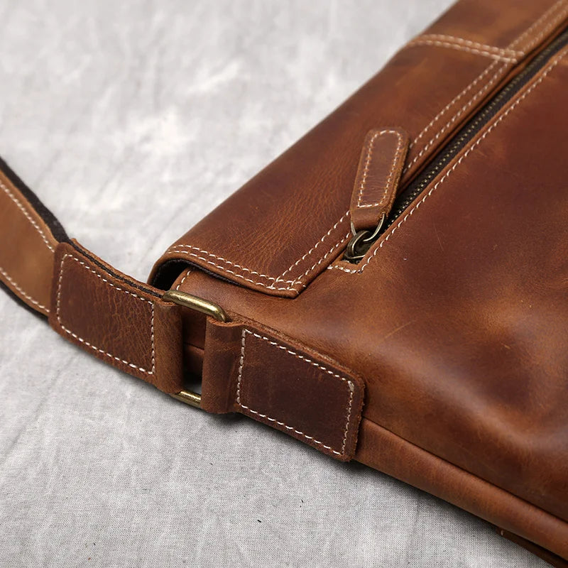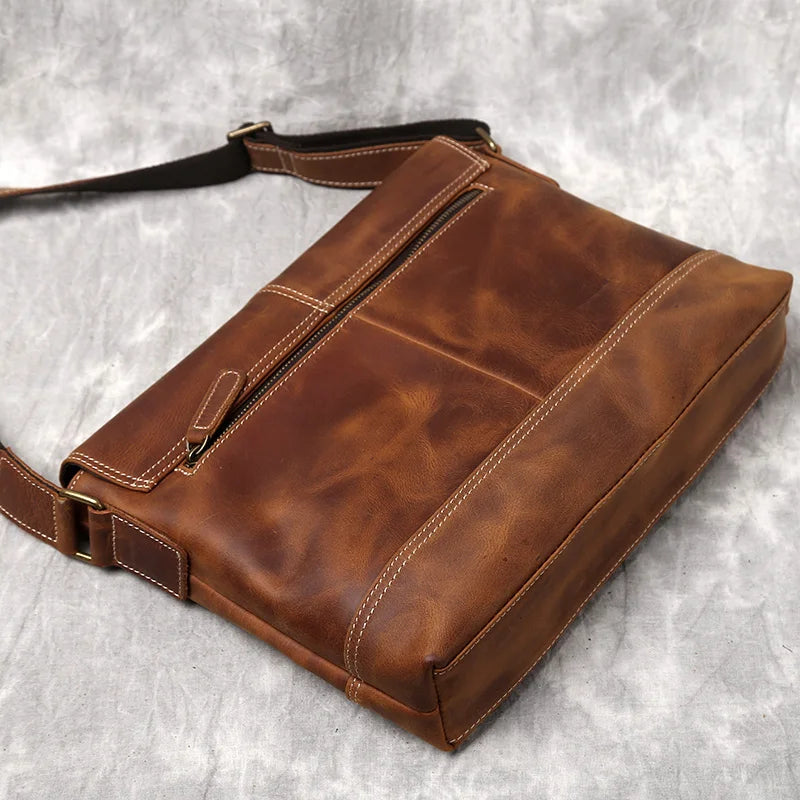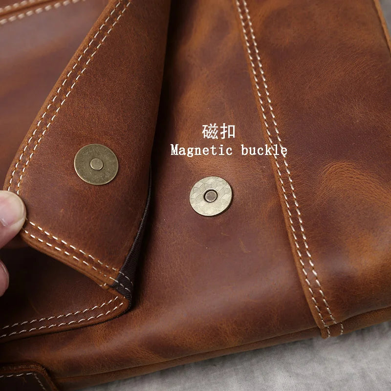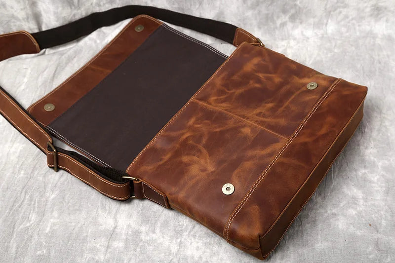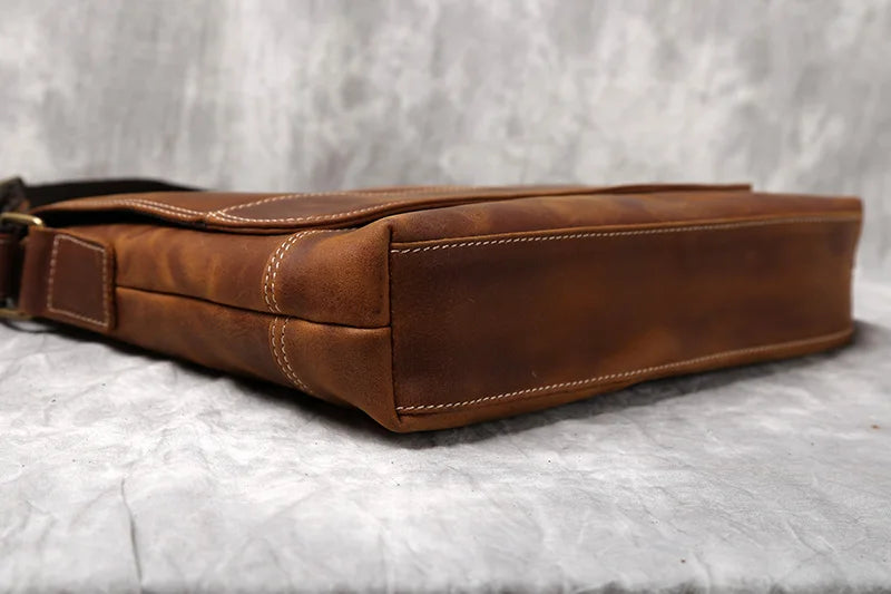 Men's Handmade Retro Top Layer Cowhide Leather A4 File Messenger Shoulder Bag