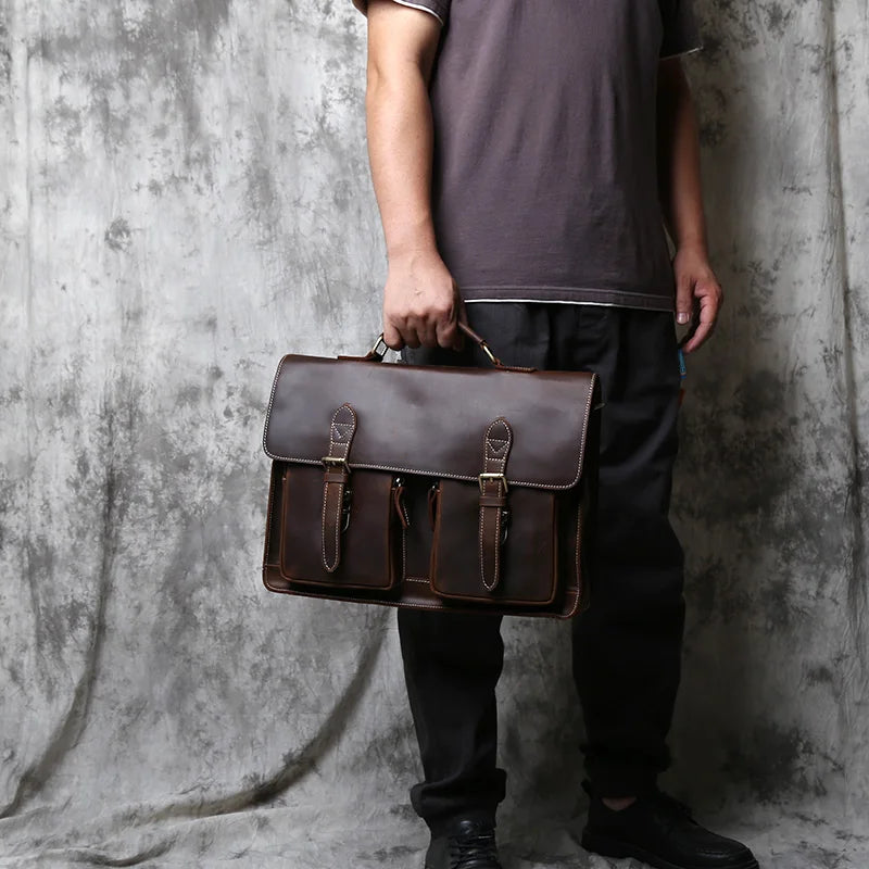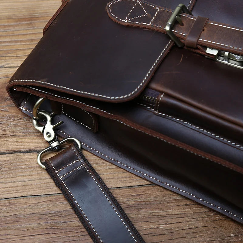 If you are looking for a retro-style men's laptop bag, then this is for you. Made of genuine leather that ensures durability and a stylish look, this bag is a great accessory for formal needs. It is well designed with compartments and pockets to keep all your essentials organized. Grab your's now!