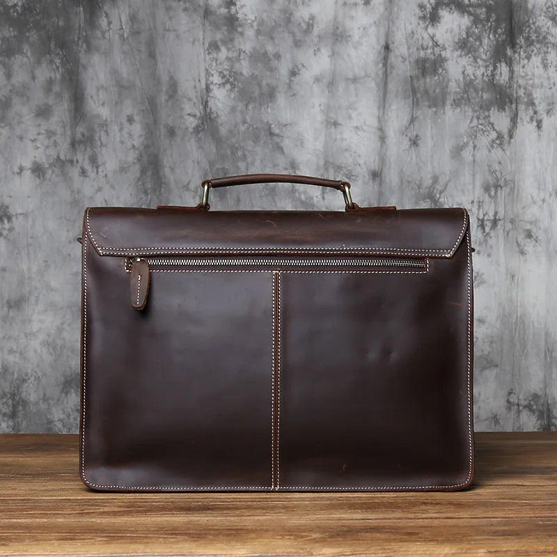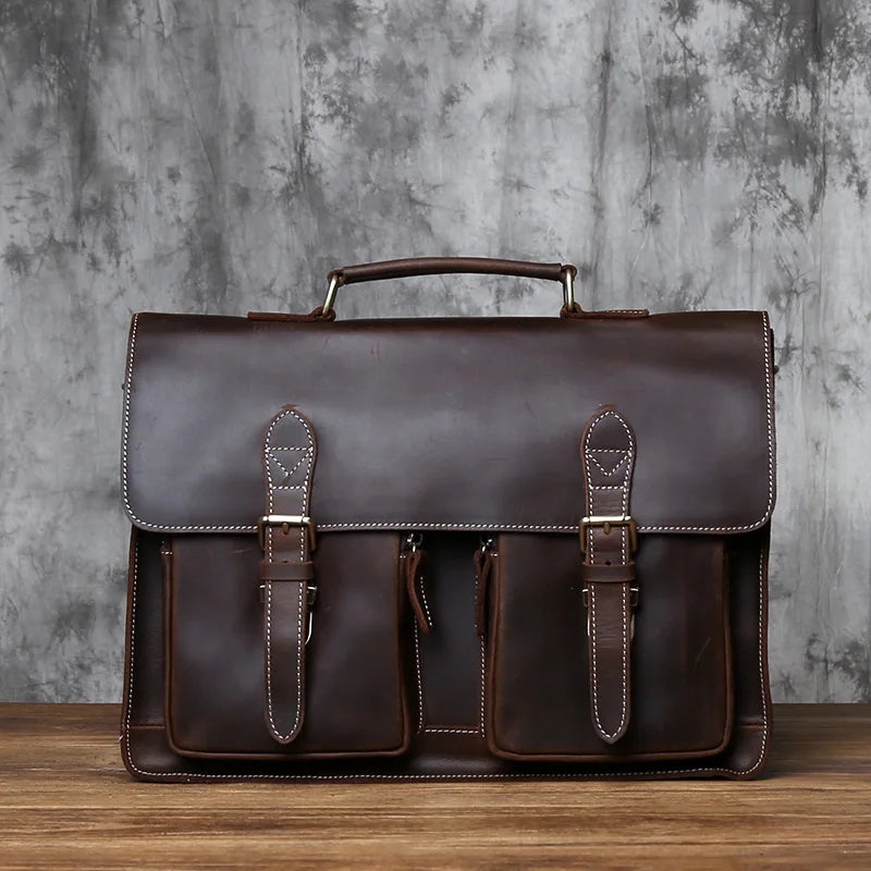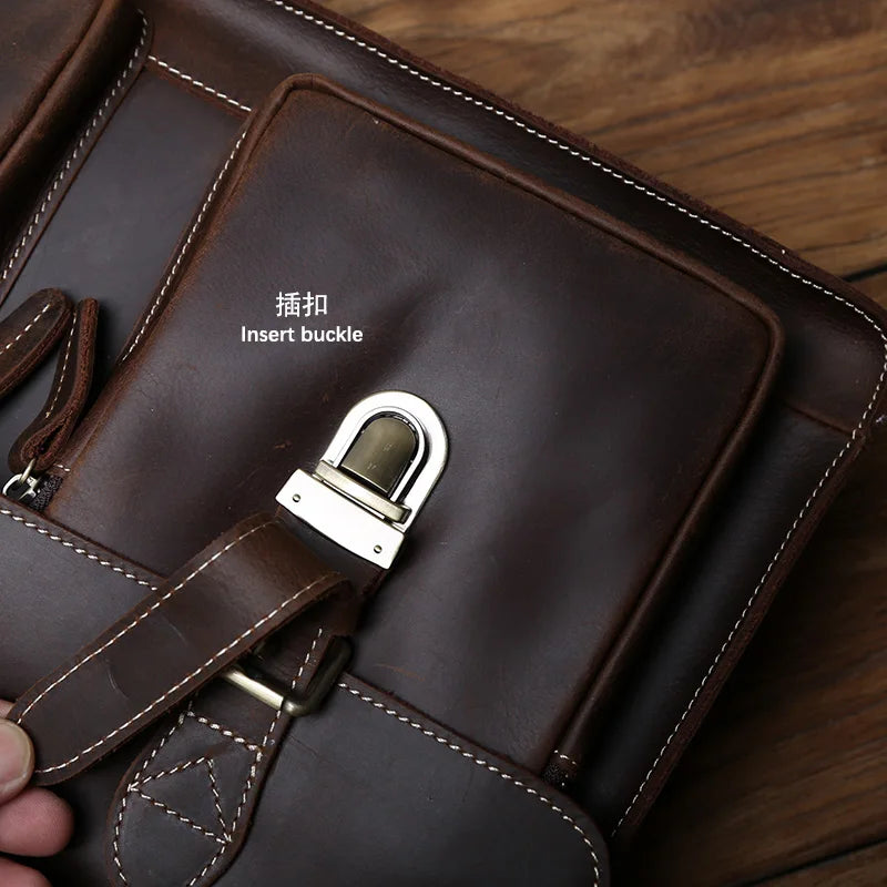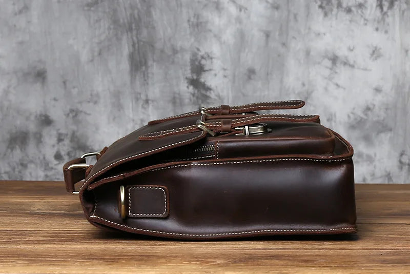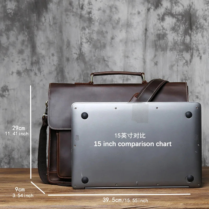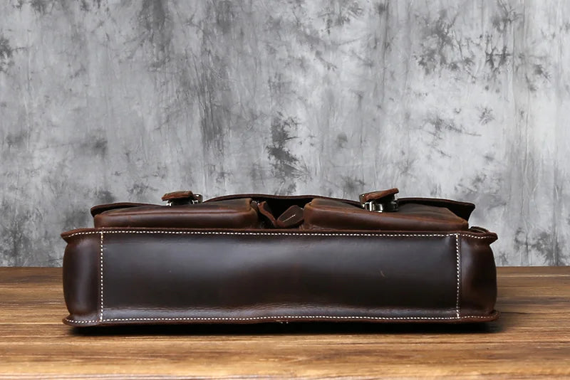 Men's Retro Casual Top Layer Leather Horizontal Messenger Computer Bag