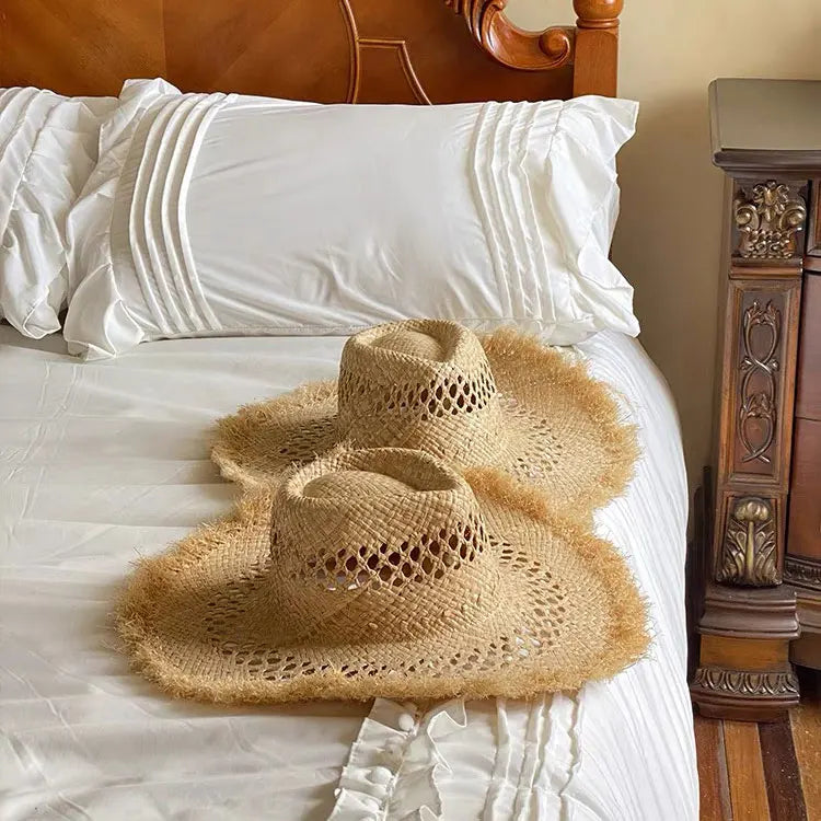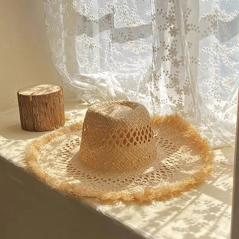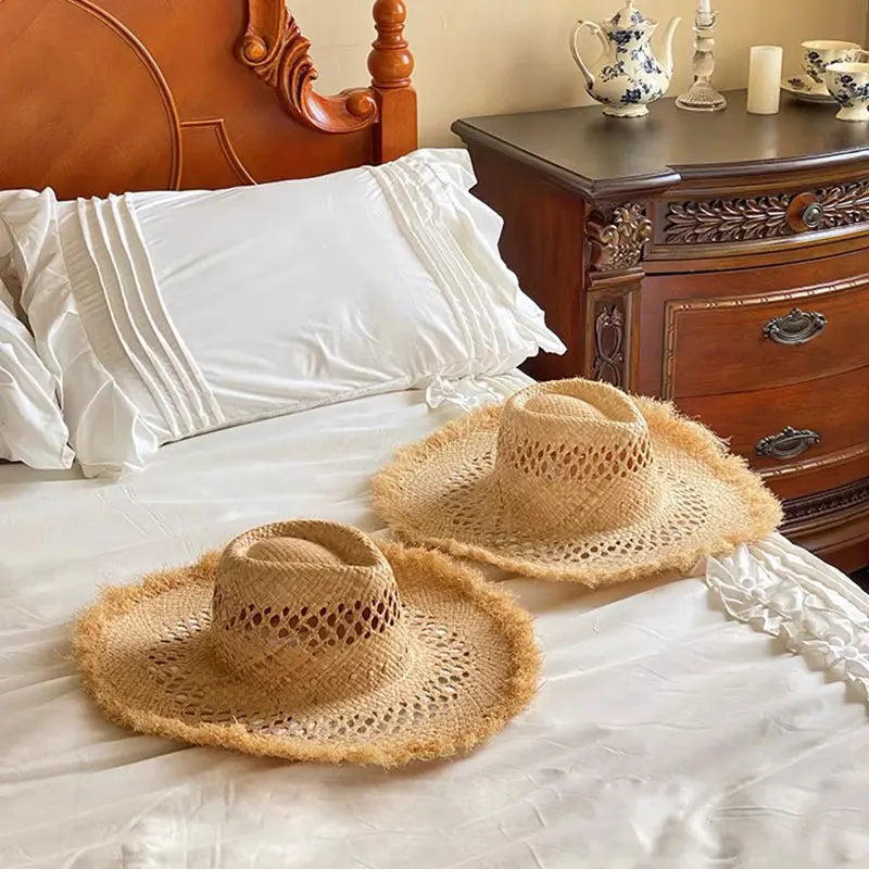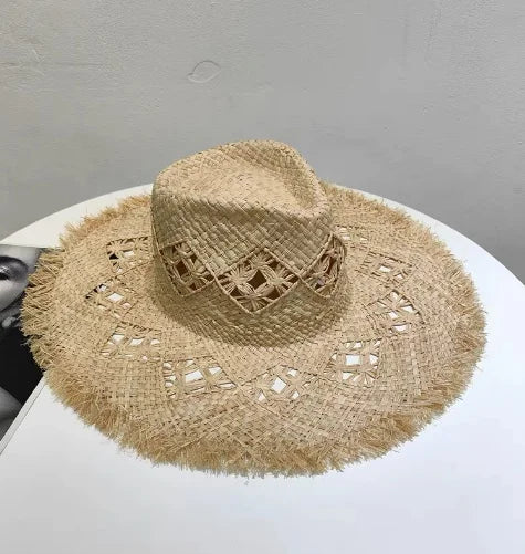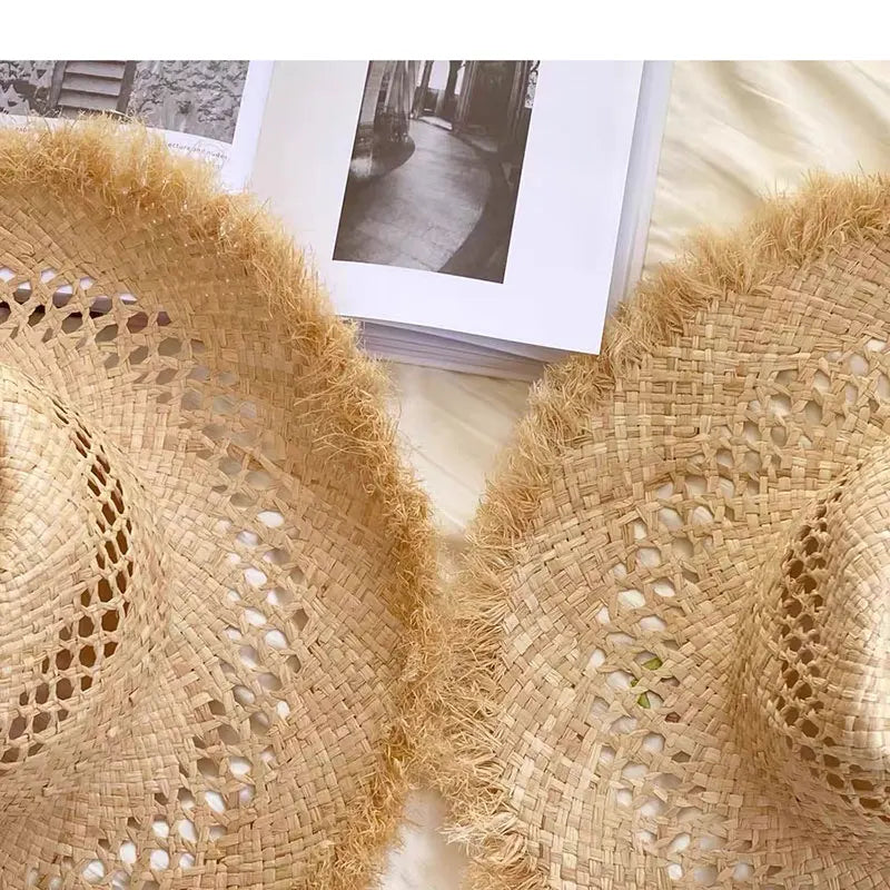 Fashion Handmade Natural Raffia Straw Casual Beach Sun Hat for Men and Women