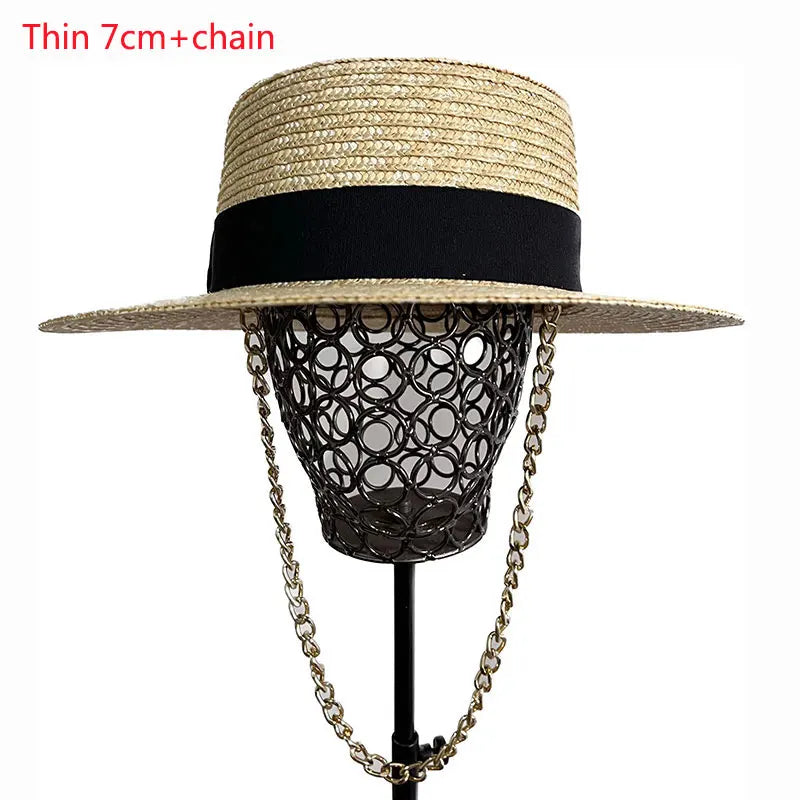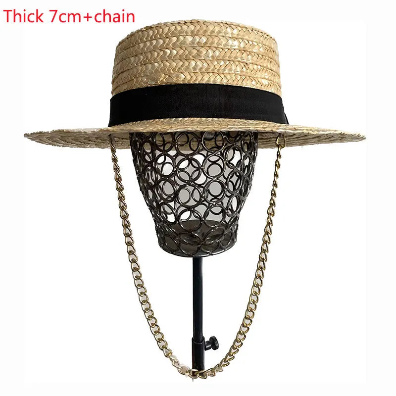This Panama sun hat is designed to suit the fashion needs of both women and men, keeping in mind the latest trends. Featuring a straw construction, it offers both durability and style. It helps you stay away from harsh sun rays. Available with different color ribbon decoration, different metal chains and weave patterns to make a statement. Order now!