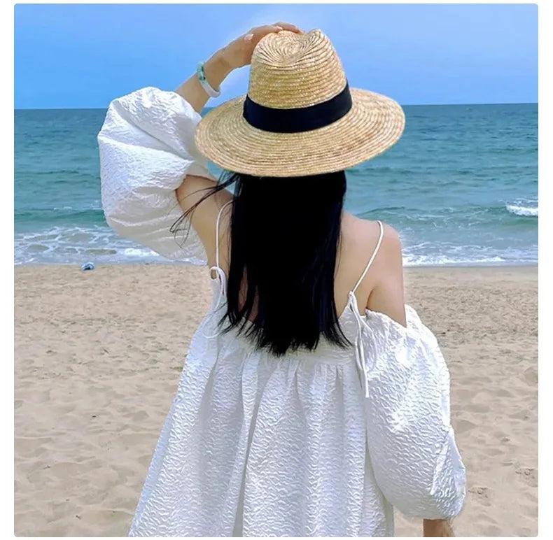 Men and Women Summer Fashion Wide Brim Natural Straw Boater Panama Sun Hat