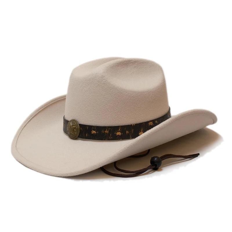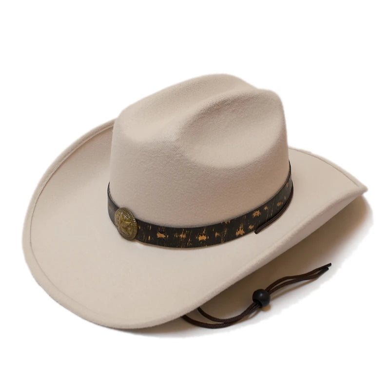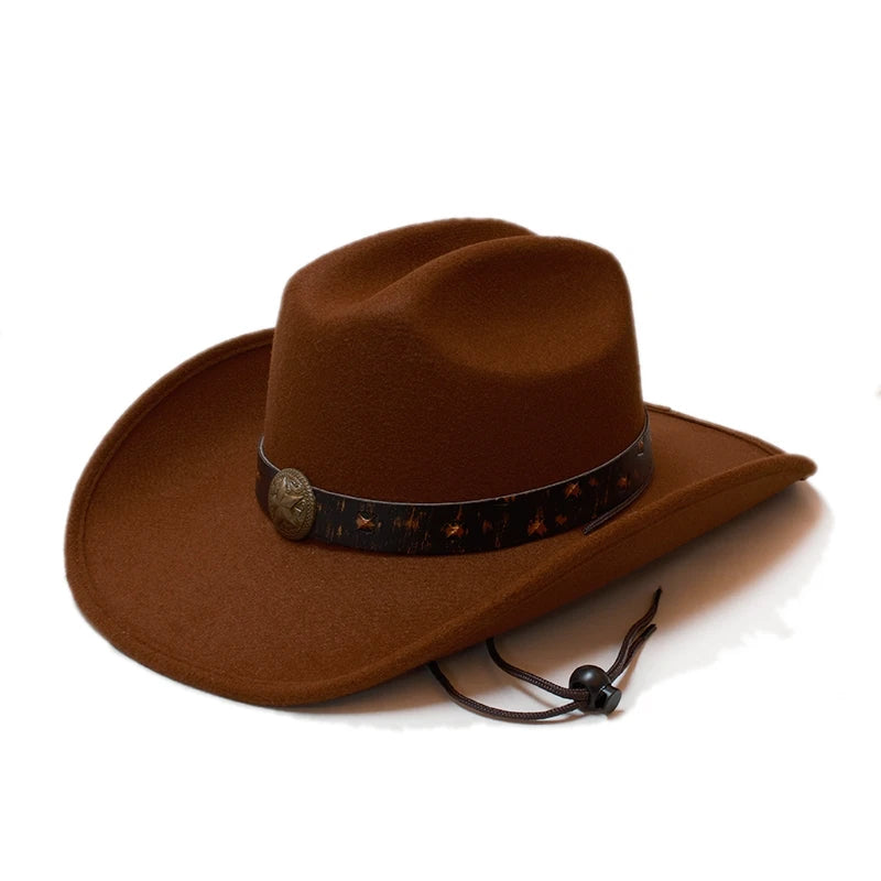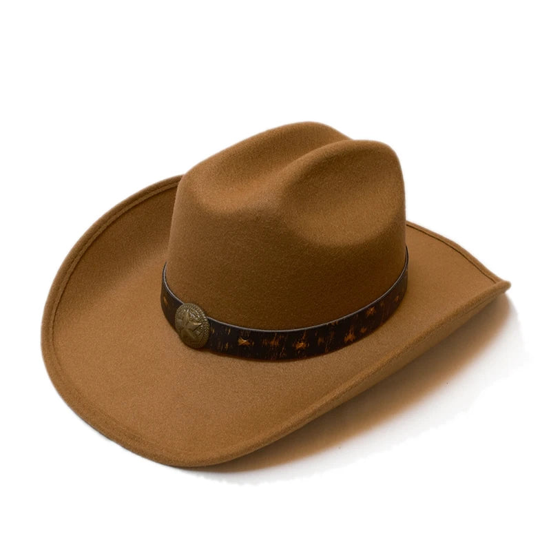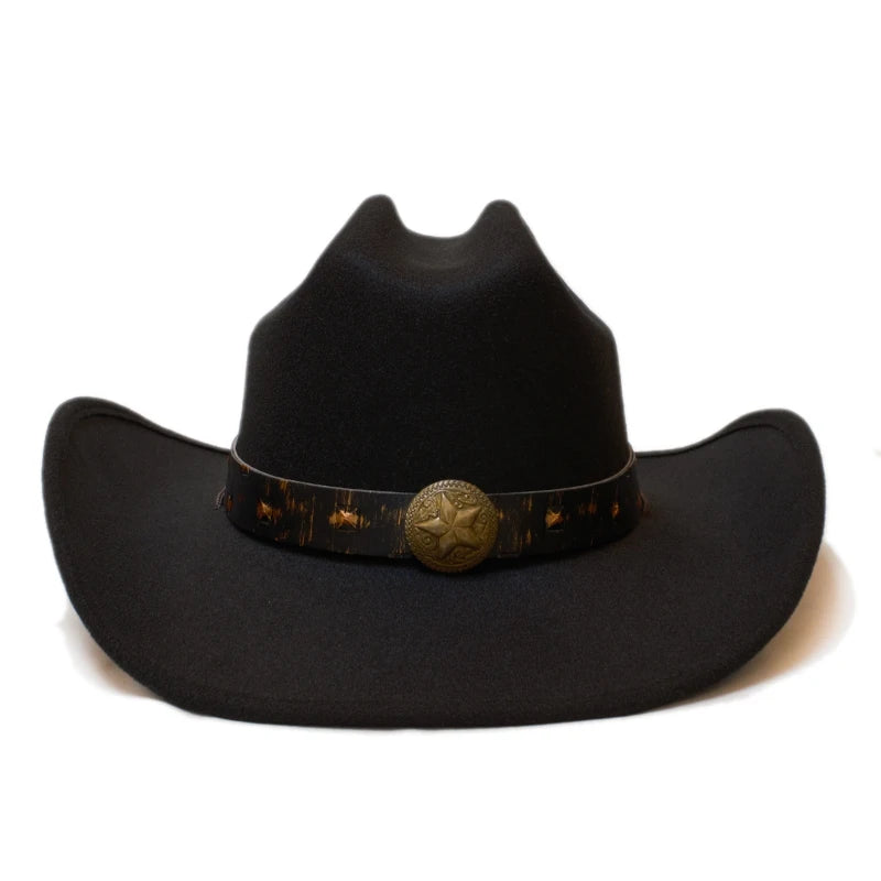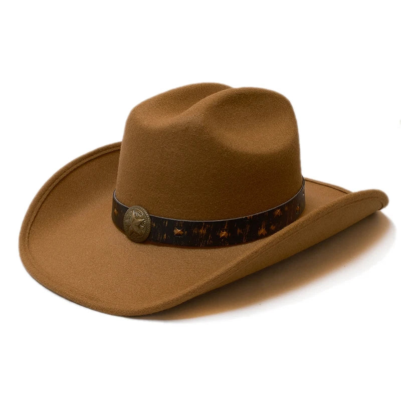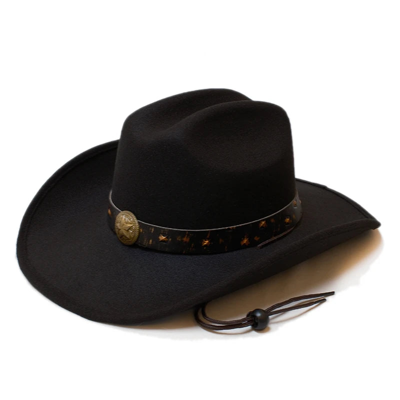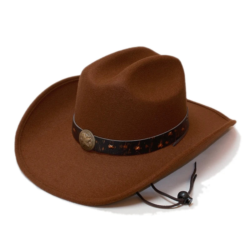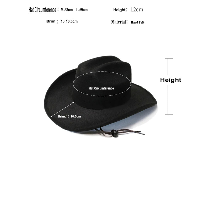 Women and Men Retro Star Leather Belt Wide Brim Hard Felt 58-59cm Cowboy Cowgirl Hat