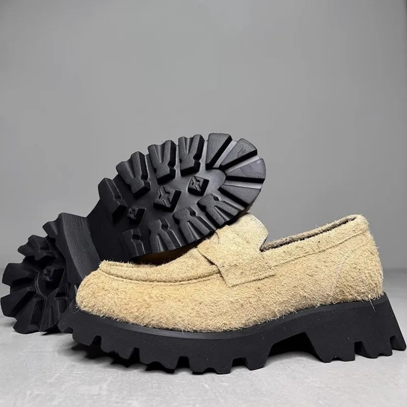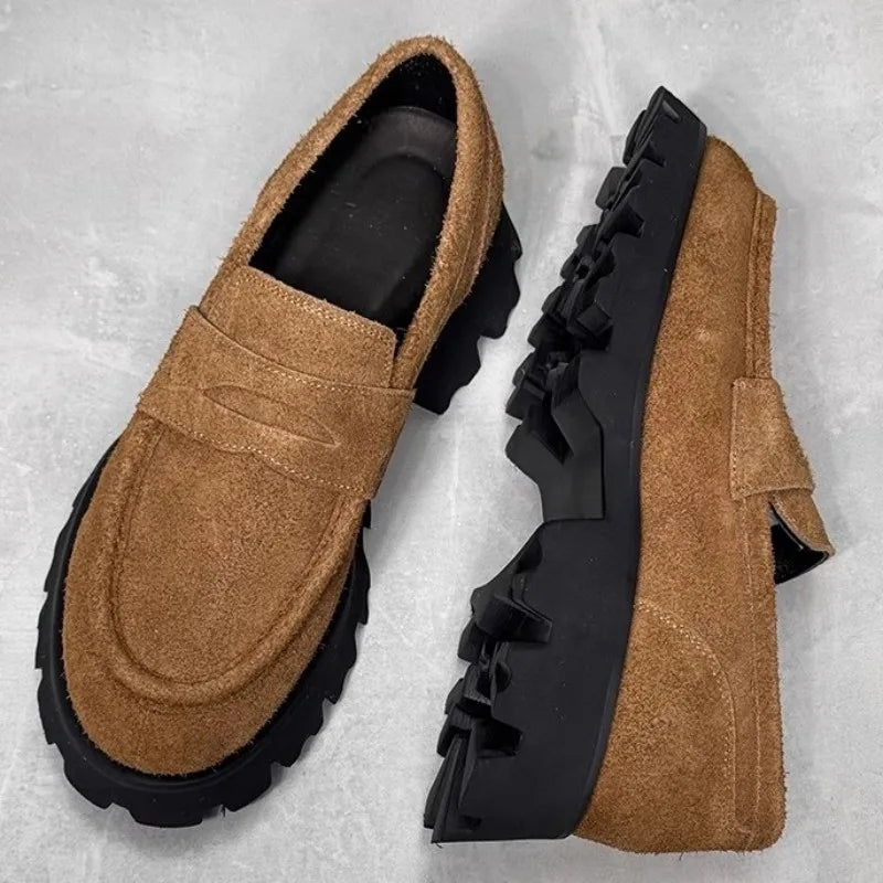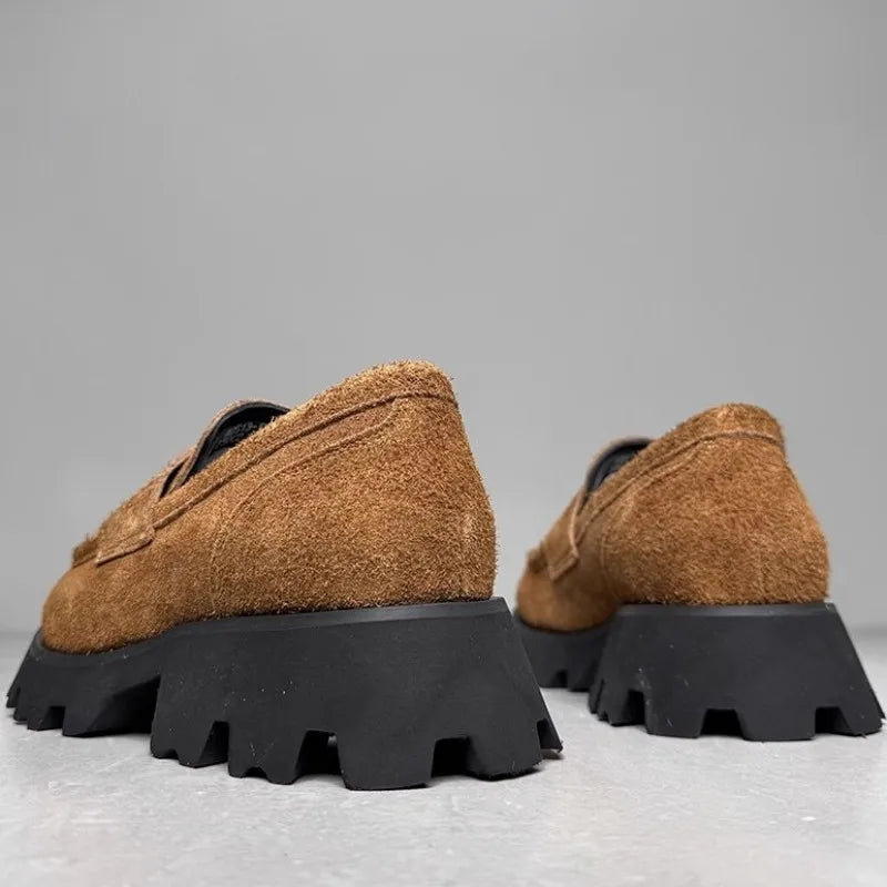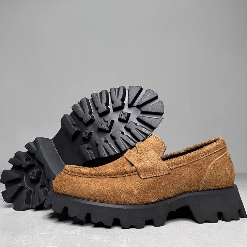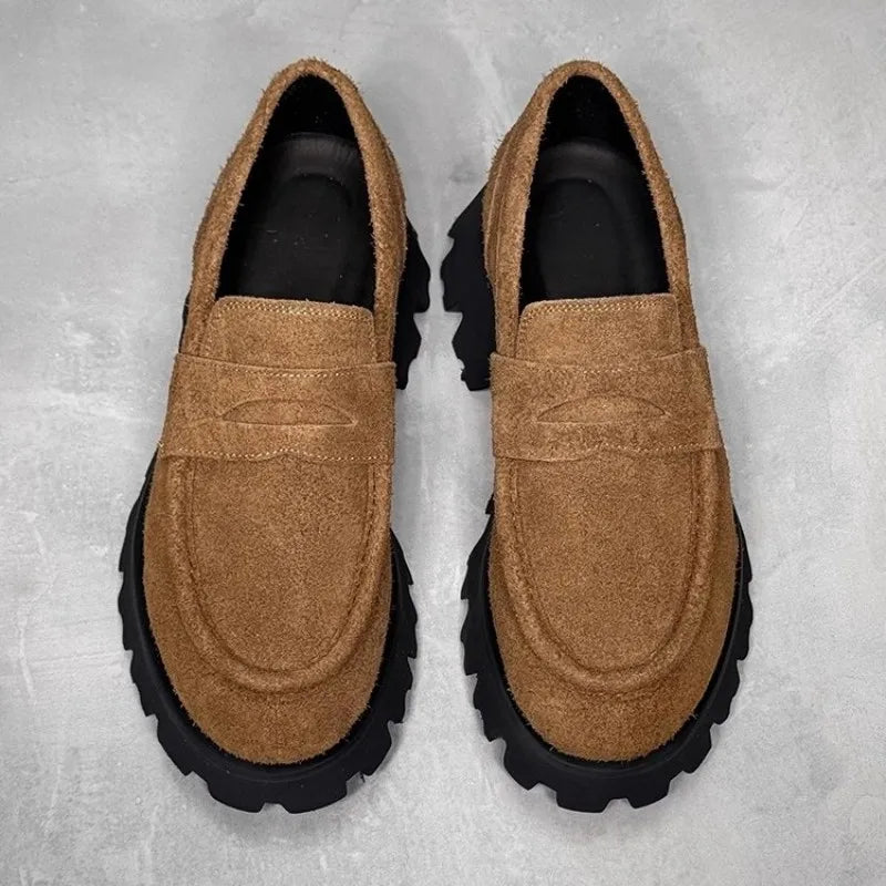 Handmade Cow Suede Slip On Hard-Wearing Platform Round Toe Casual Loafers for Men